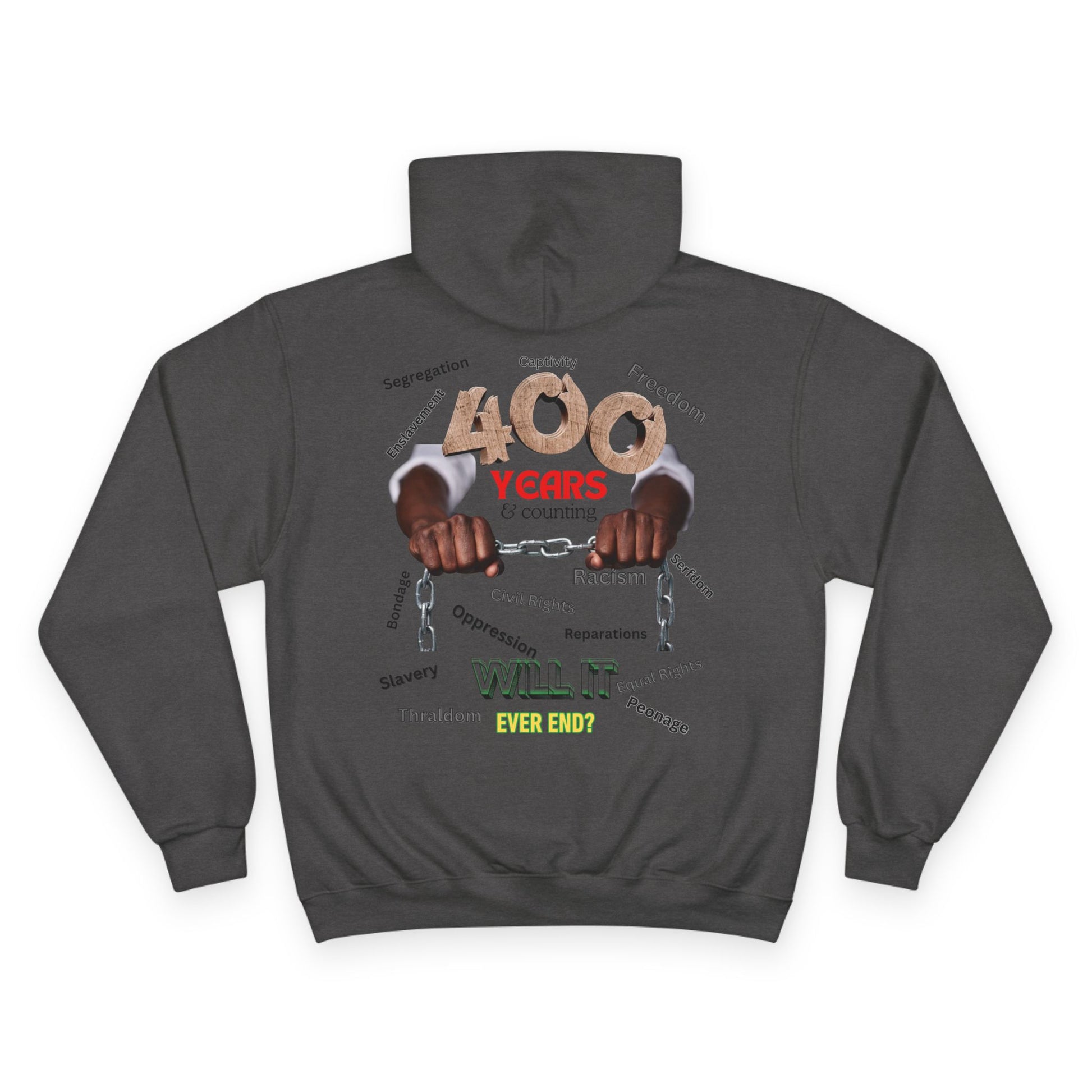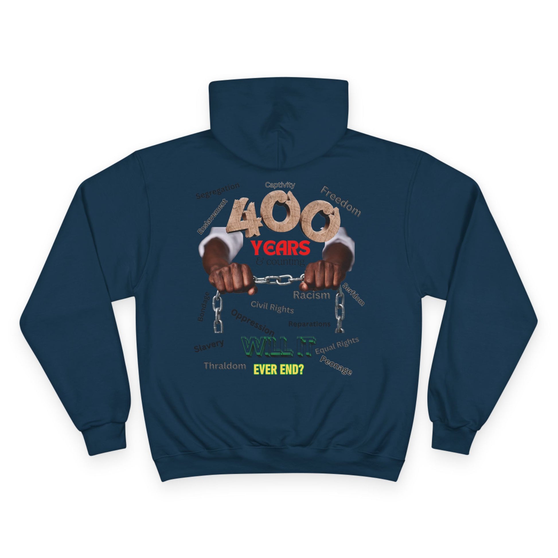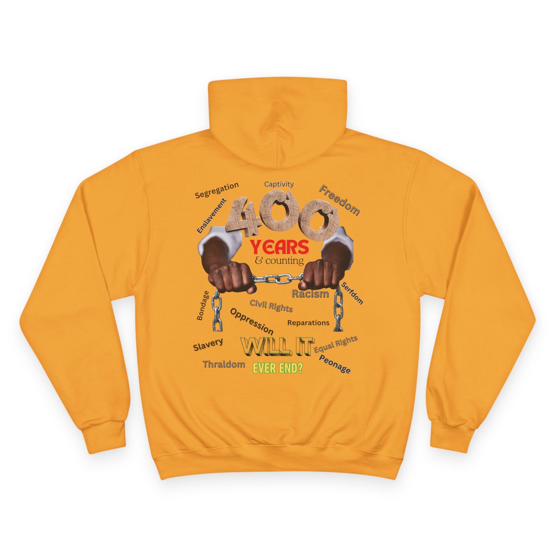 400 Years: Will It Ever End? Unisex Champion Hoodie, Black History Month, CRT, History Can't Be Erased,