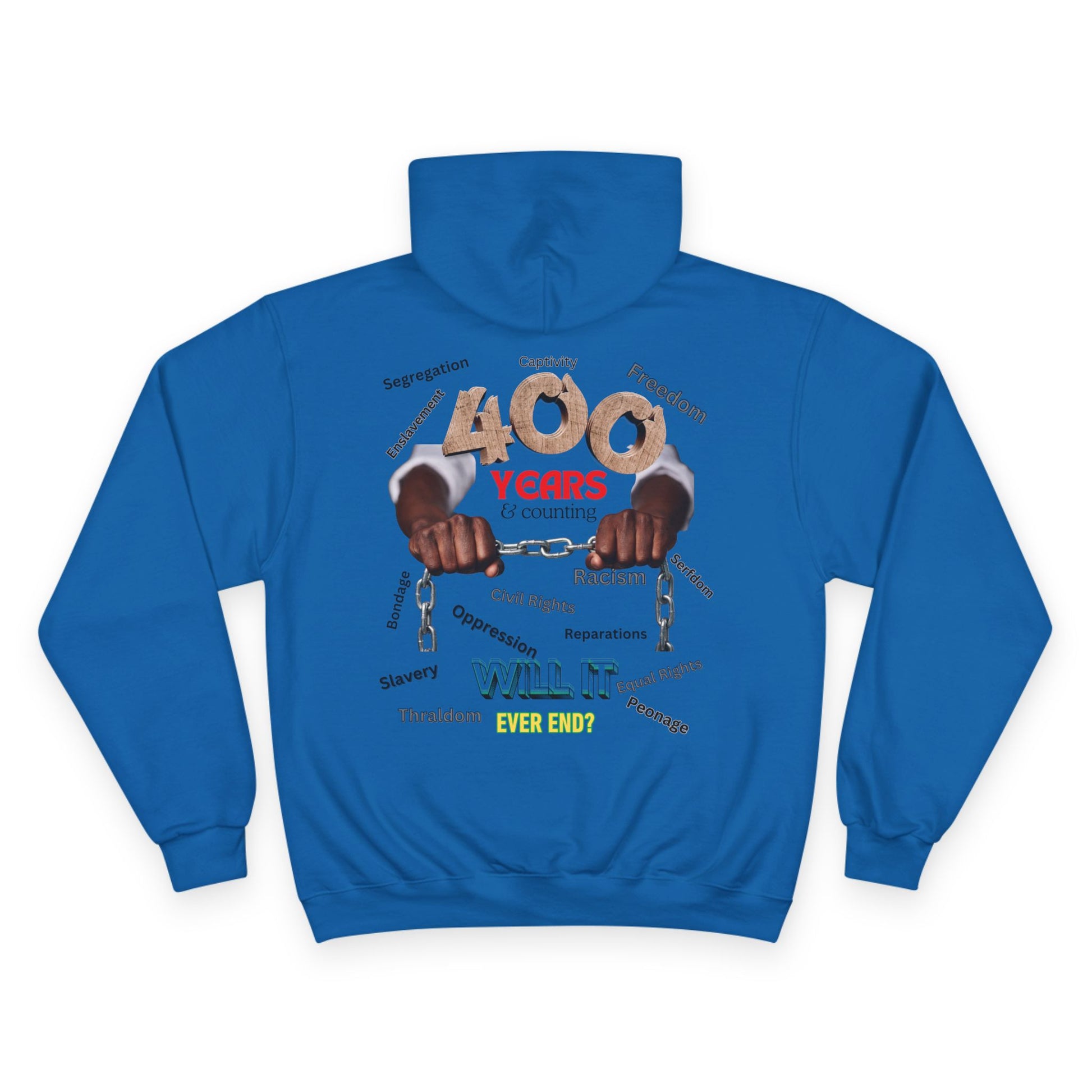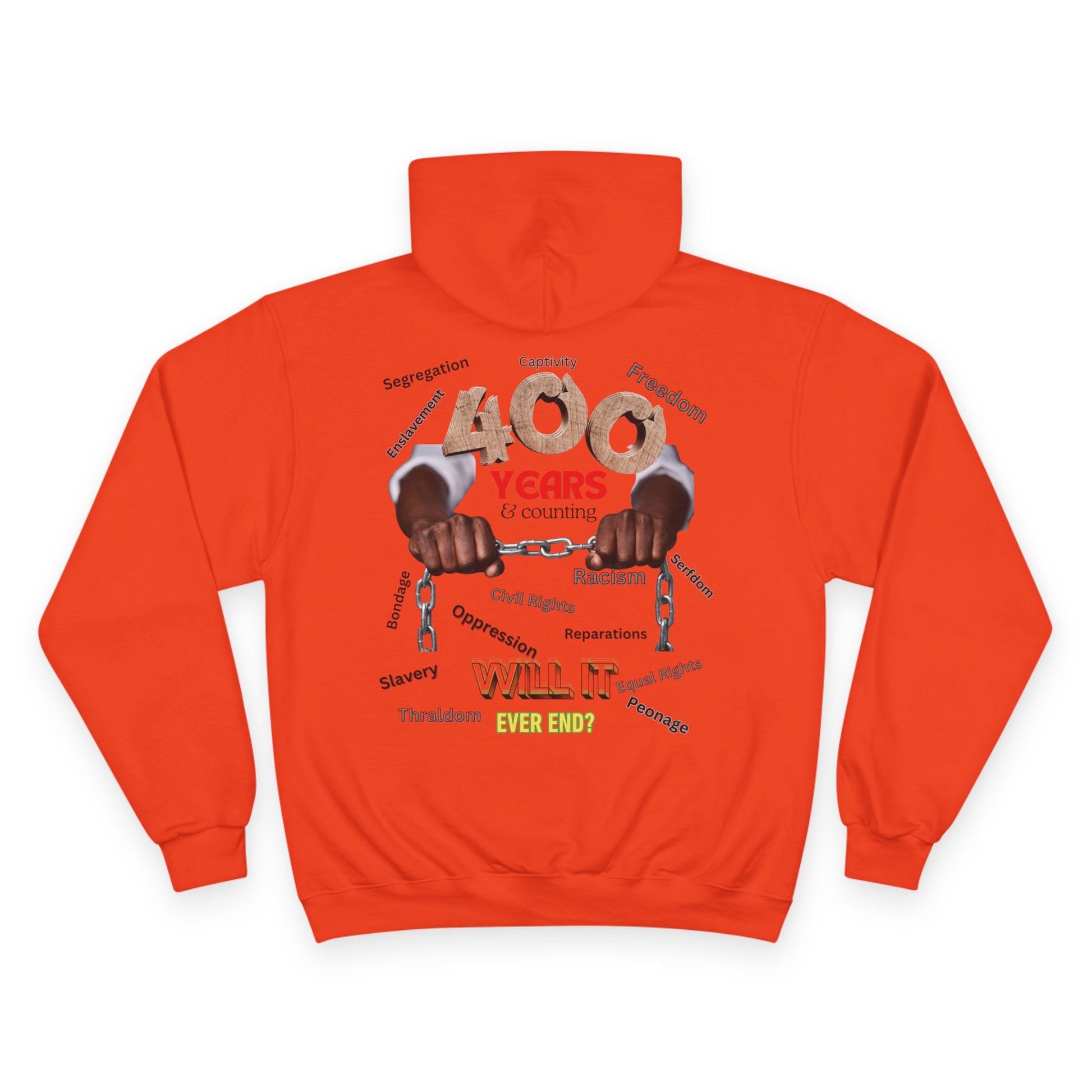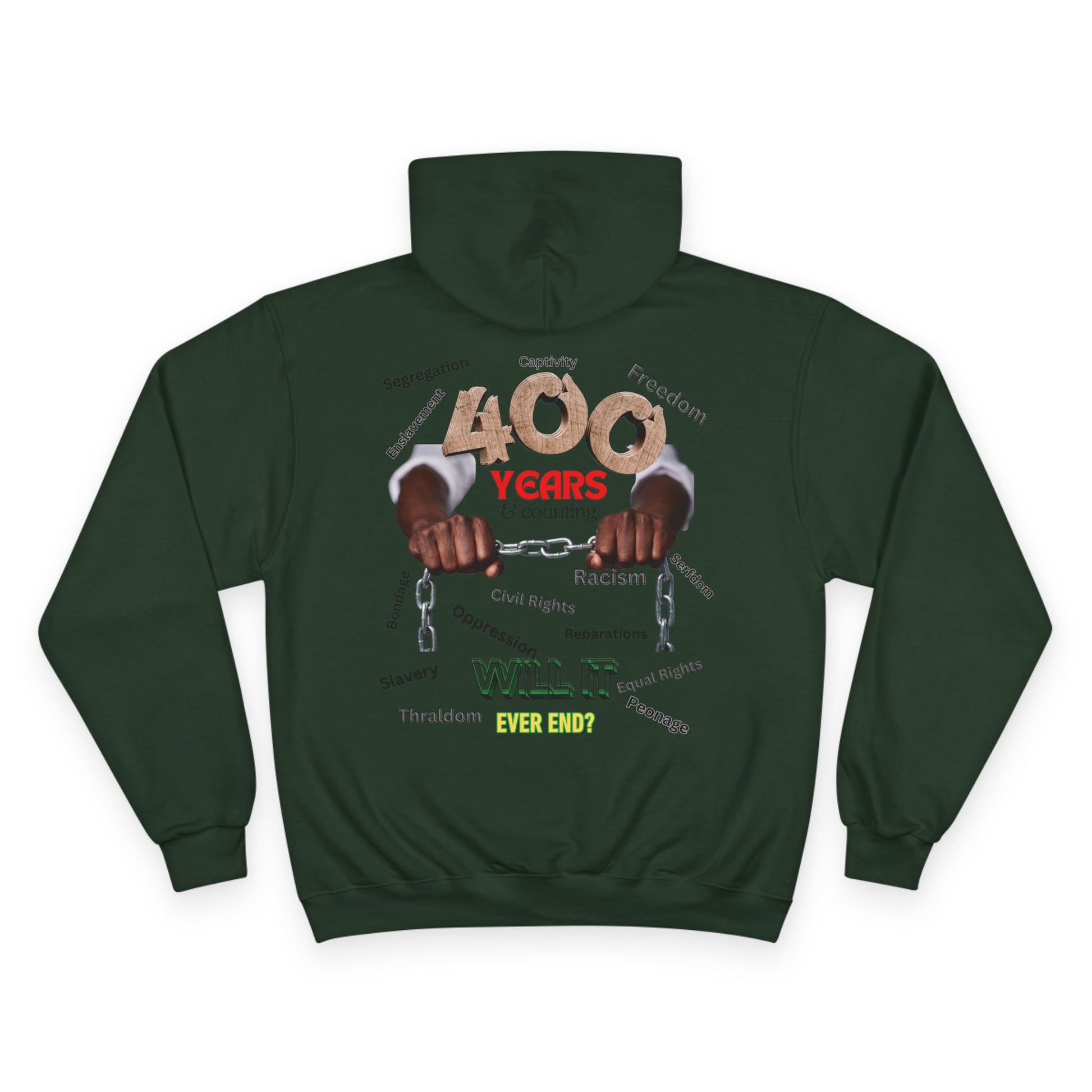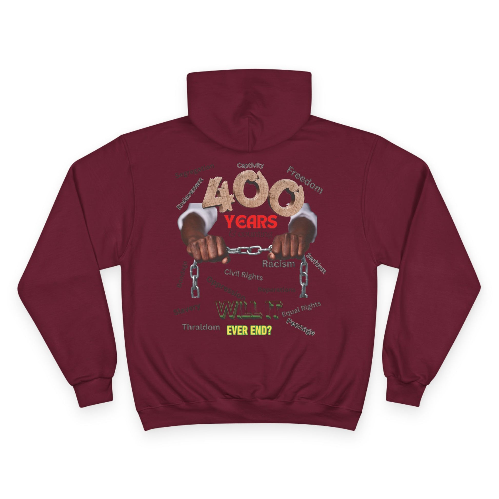 400 Years: Will It Ever End? Unisex Champion Hoodie, Black History Month, CRT, History Can't Be Erased,