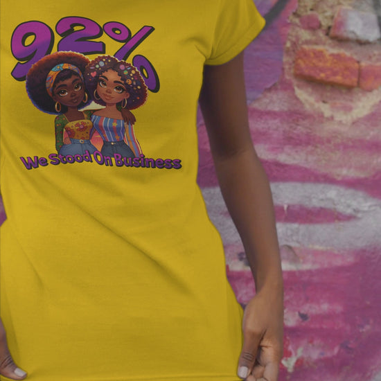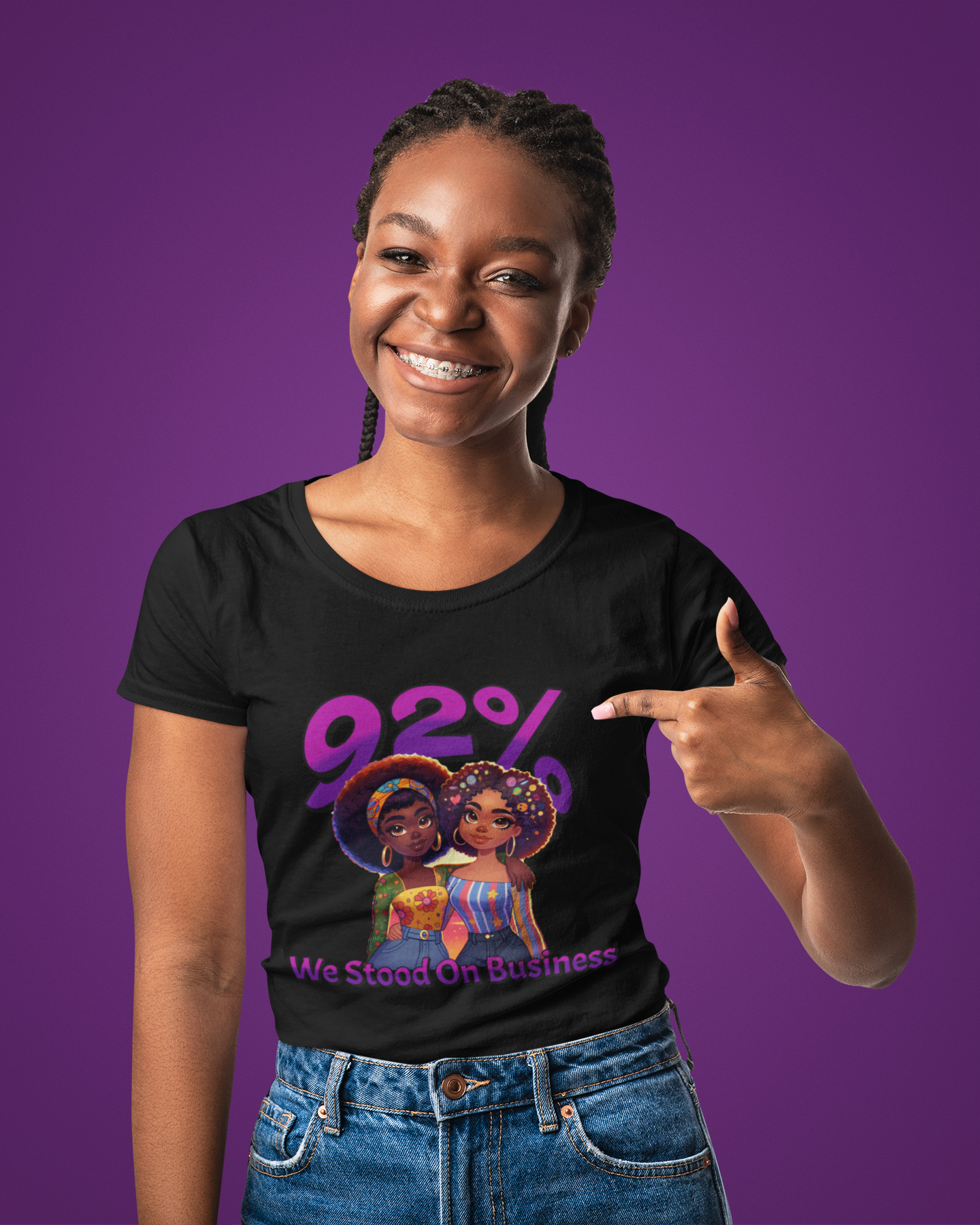 With an image of black women uniting, acknowledging the plight and the struggle the black women face standing up for everything and everybody to fight injustice, 92% black women shirt.