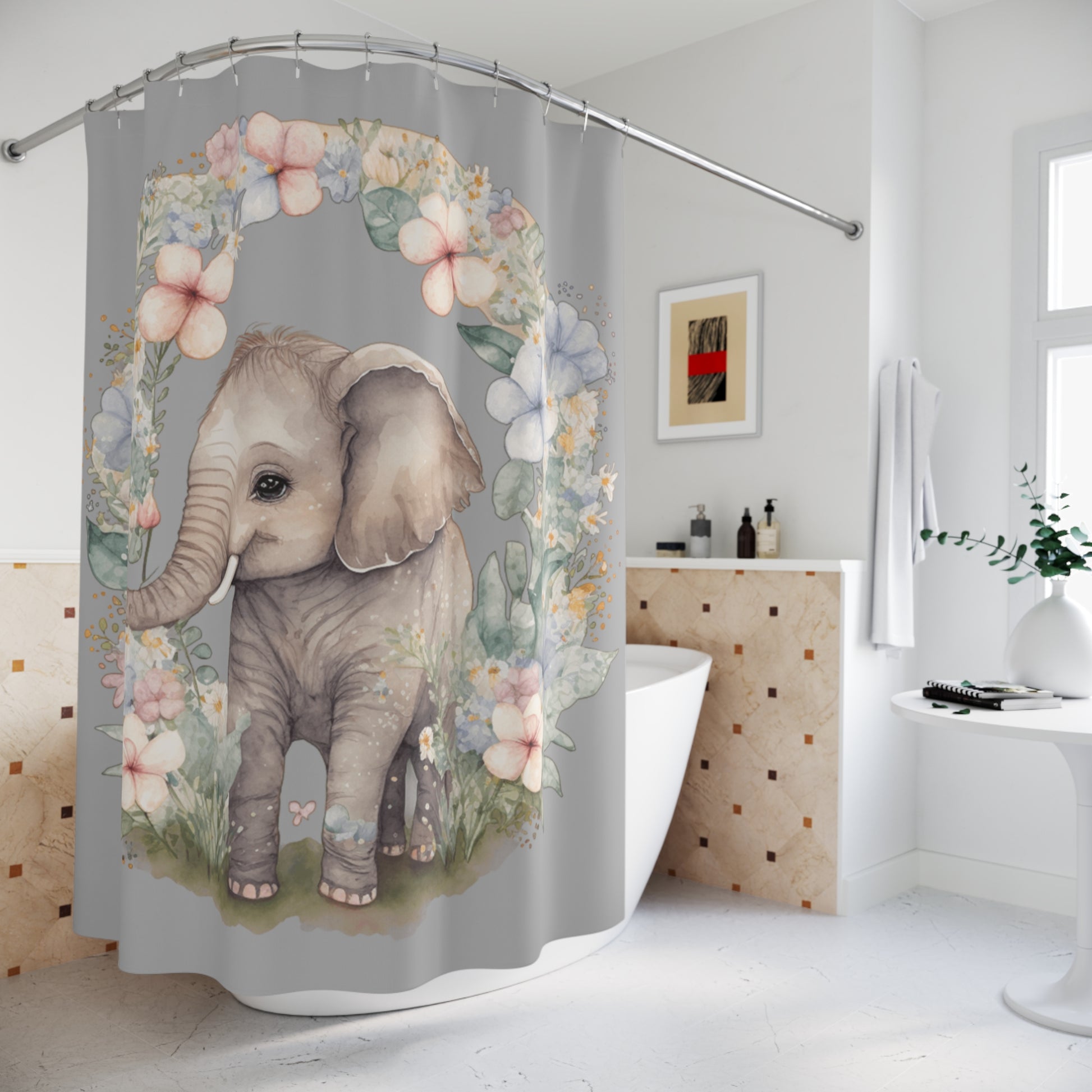 Transform your bathroom into a tranquil oasis with this charming shower curtain, featuring a delightful elephant design surrounded by floral accents. The whimsical vibe creates a calming atmosphere, perfect for unwinding after a long day. Ideal for animal lovers or anyone looking to add a touch of nature to their space, this shower curtain is a fabulous addition to your home decor. It's perfect for housewarming gifts, baby showers, or simply refreshing your own bathroom for any occasion. Celebrate your unique style and bring joy to your daily routine with this beautiful piece, suitable for all ages!