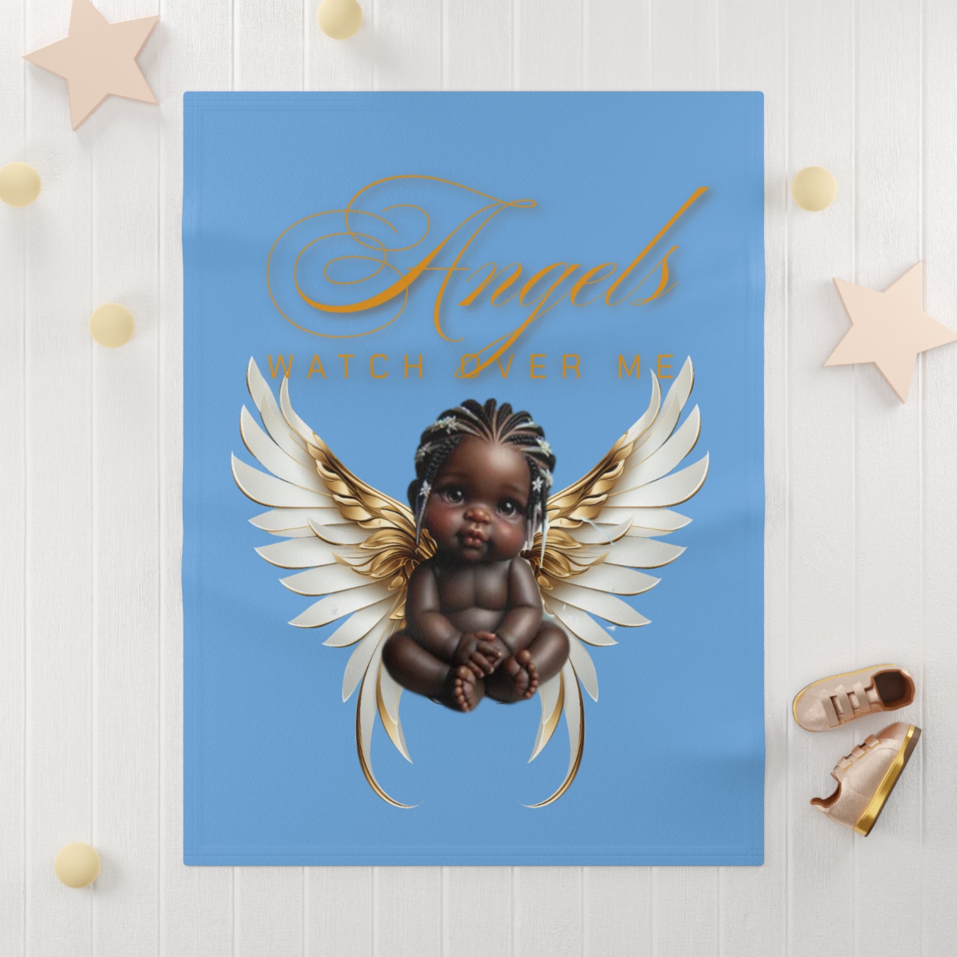 Wrap your little one in love and comfort with this Soft Fleece Light Blue Baby Blanket. Made from soft, durable polyester, it features a charming design with a black angel baby with wings that radiates warmth and joy. Perfect for nursery decor or snuggling up during story time, this blanket creates a cozy atmosphere for your baby's adventures. It’s an ideal gift for new parents, baby showers, or as a thoughtful gesture during holidays like Christmas and birthdays. This blanket seamlessly fits into any home, providing both style and functionality.