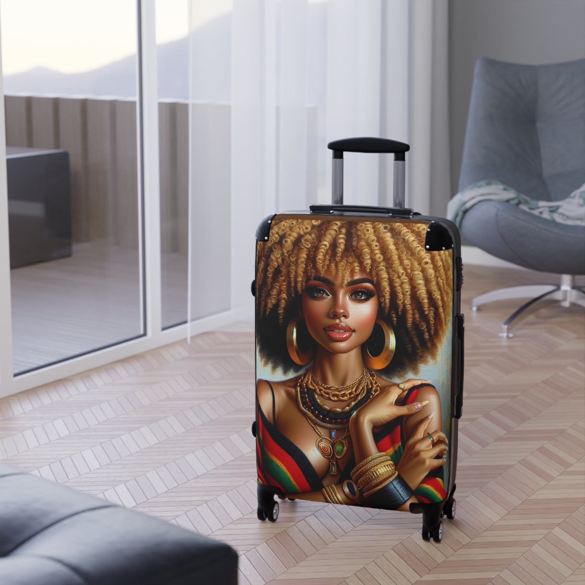 Artistic Travel Suitcase - Afro Woman Design for Adventurers, Beautiful Afrocentric Suitcase for Women, Uniquely Covered Suitcase