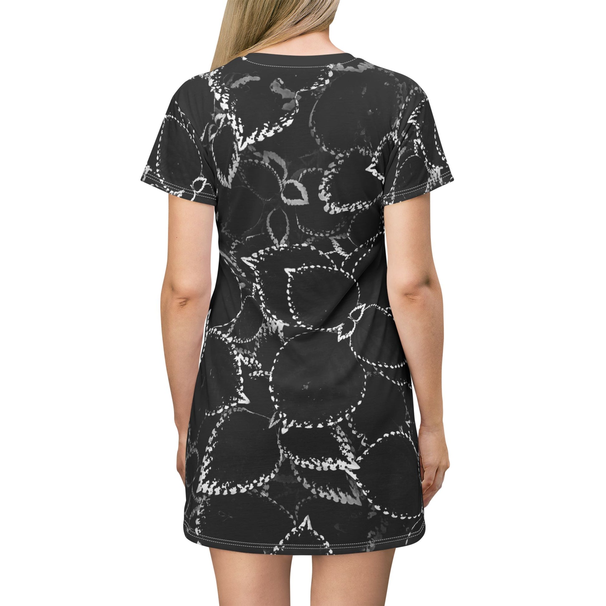 Black Leaf Print T-Shirt Dress, Cute T-Shirt Dress for Women, Black and White T-Shirt Dress, Semi-Casual Dress for Any Occasion