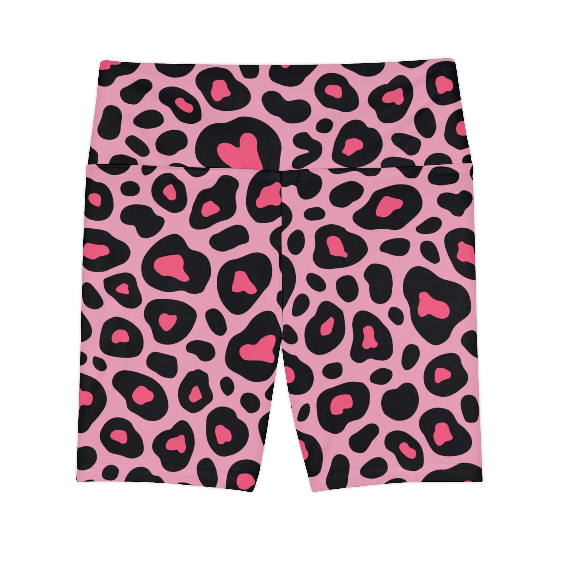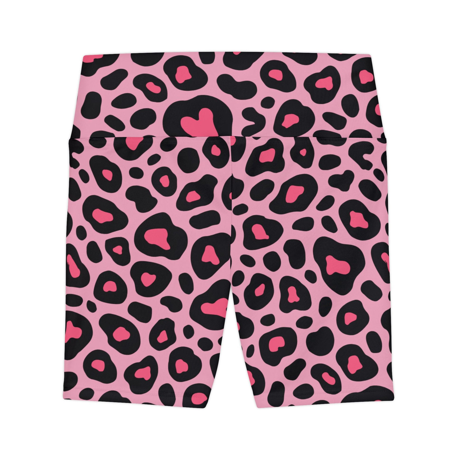 Bold Leopard Print Women's Workout Shorts - Stylish Athletic Wear, Pink and Black Leopard Print Yoga Shorts, Matching Sports Bra Sold Separately