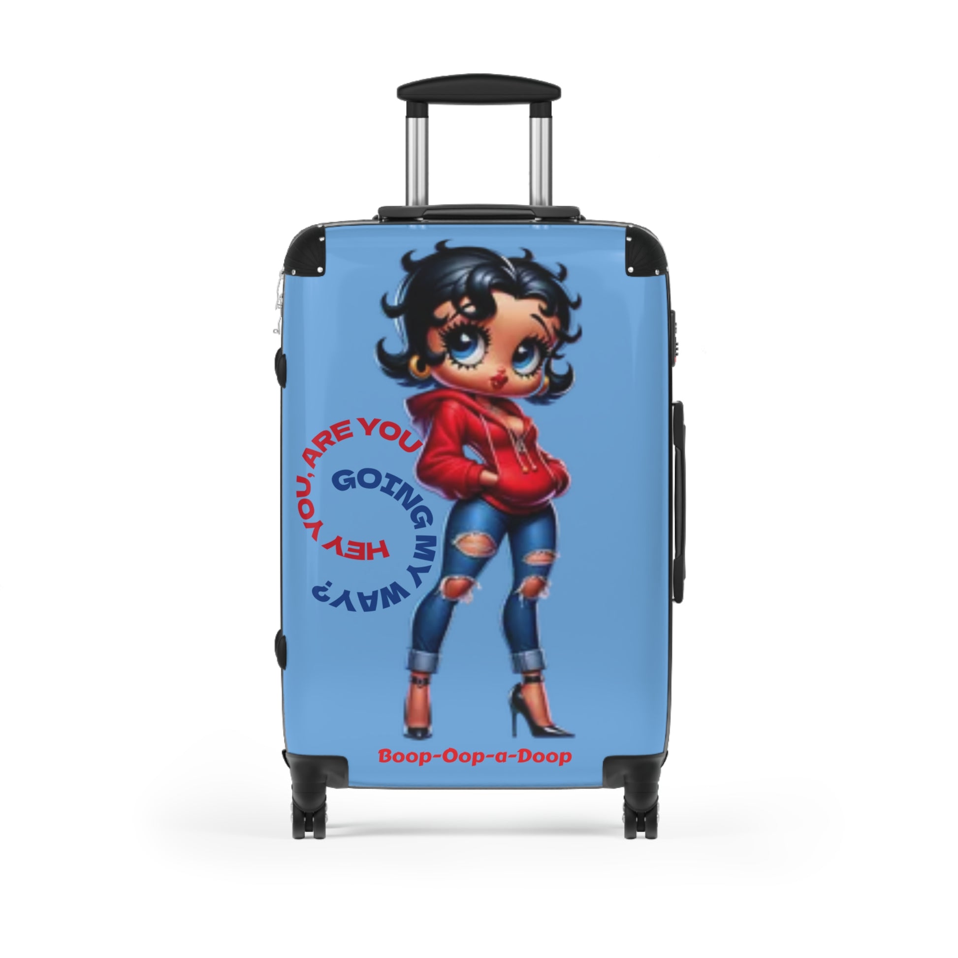 Travel in style with this eye-catching suitcase, designed to turn heads wherever you go. Its Betty Boop vibrant colors and customizable front allow you to express your unique personality, making every journey exciting. Perfect for frequent travelers, students, or anyone who loves to stand out, this suitcase combines practicality with flair. Whether heading to a weekend getaway, a summer vacation, or just a day trip, you'll enjoy the peace of mind that comes with its built-in lock and durable materials. This suitcase is also a fantastic gift for holidays like Christmas, birthdays, or graduations, bringing joy to aspiring adventurers and seasoned wanderers alike.