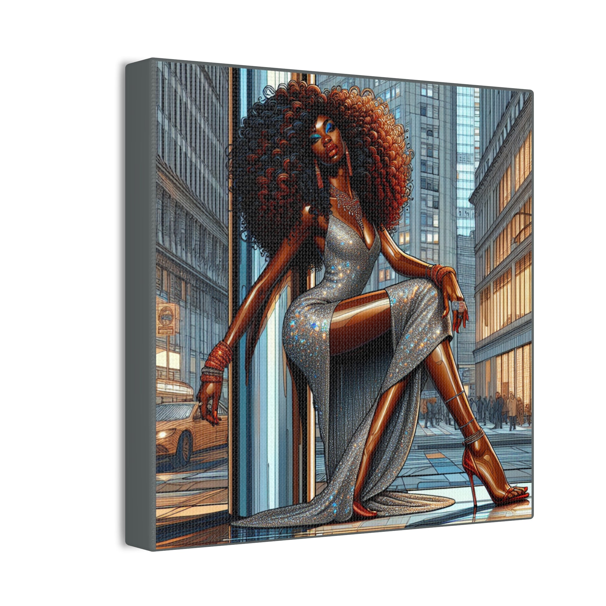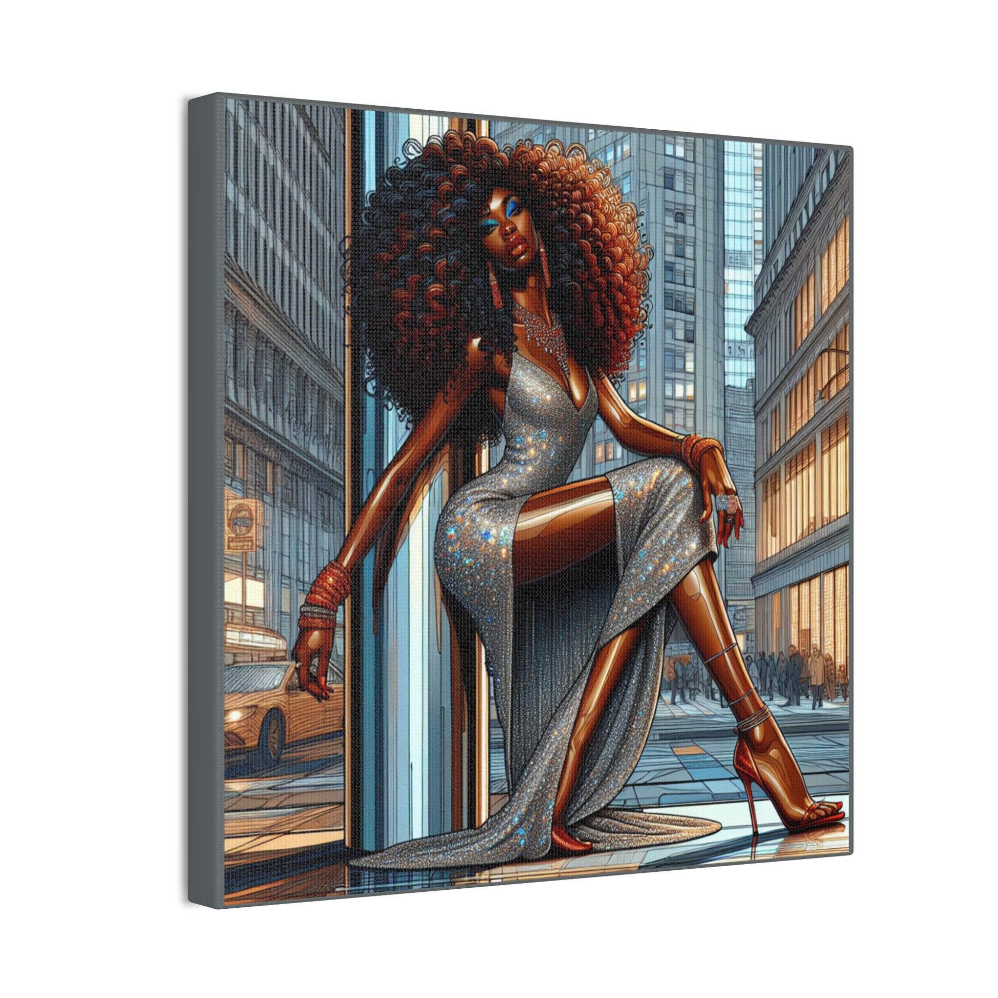 Chic Urban Canvas Art - Glamorous Fashionista Wall Decor, Black Art Collection, Beautiful Black Woman Posing Silver and Gray Canvas Art