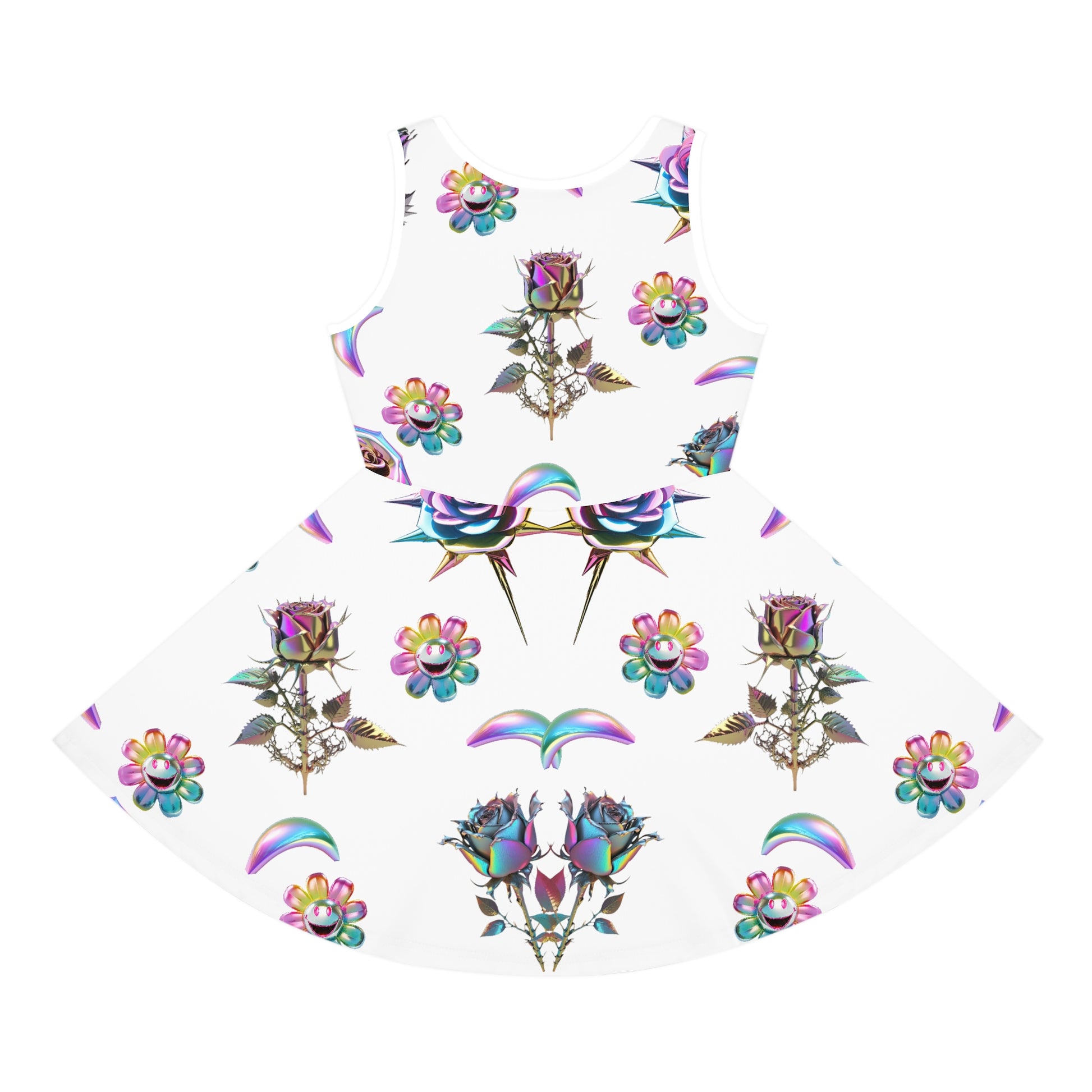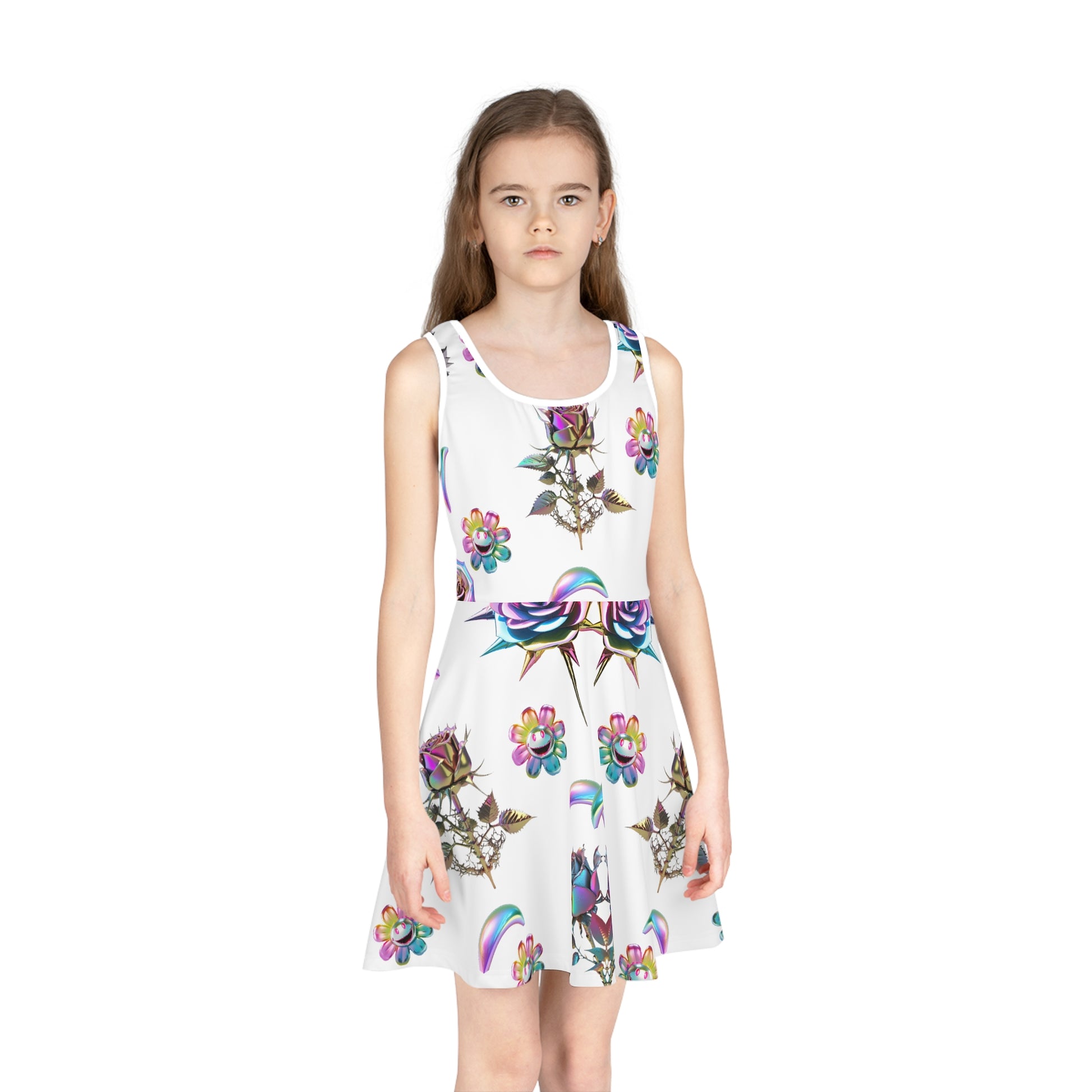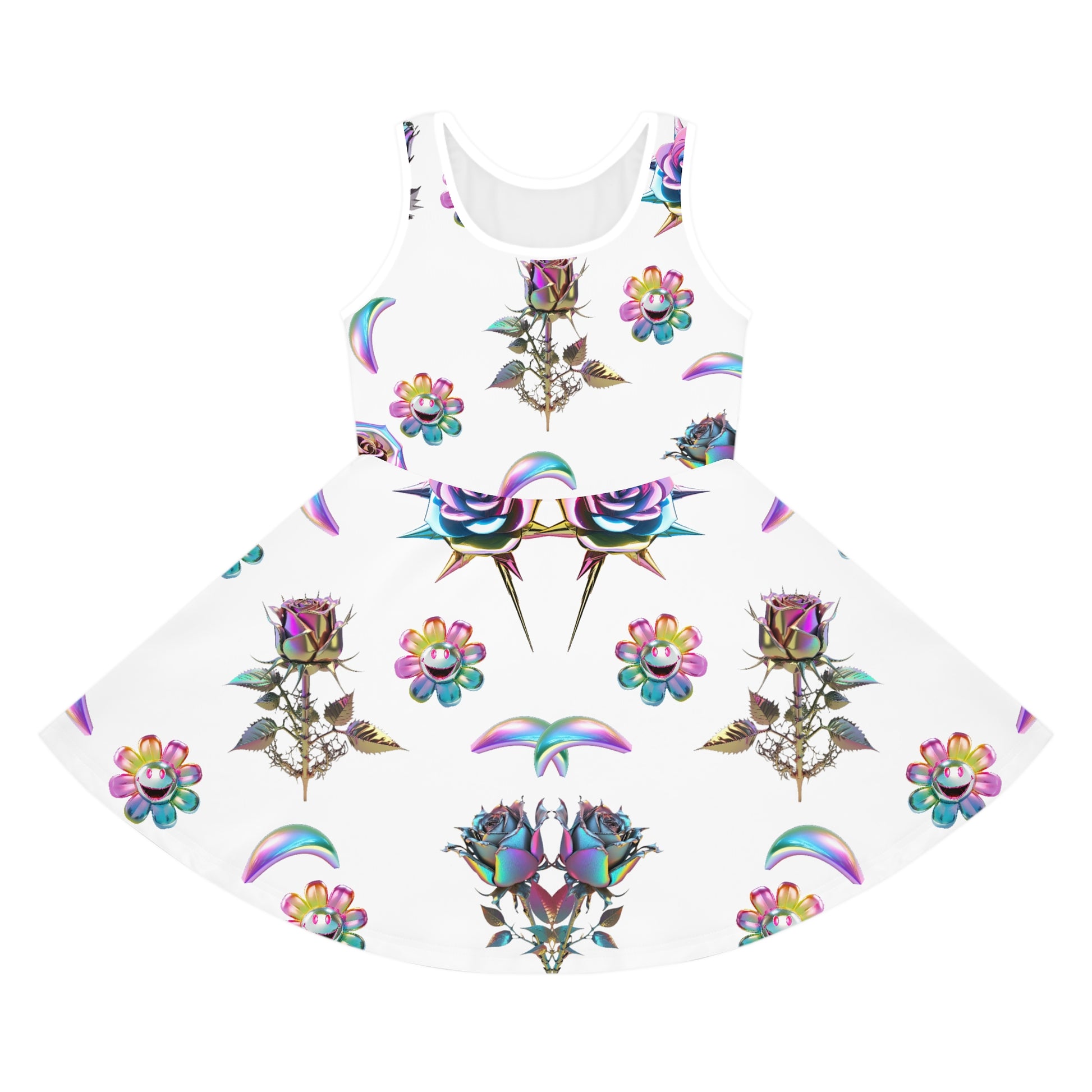 Introducing our vibrant colorful floral Girls' Sundress, perfect for sunny days and playful adventures! This enchanting dress, adorned with a striking floral and jewel-toned design, radiates fun and youthful energy. Its A-line cut combined with a classic round neckline creates a stylish yet comfortable fit, making it suitable for girls who love to dance, twirl, and bask in the sun. Ideal for summer picnics, birthday parties, and family gatherings, it's a must-have for any little fashionista's wardrobe. Whether for a day out or a special occasion, this sundress is sure to make her feel confident and cherished. Great for birthdays, summer vacations, and joyful celebrations!