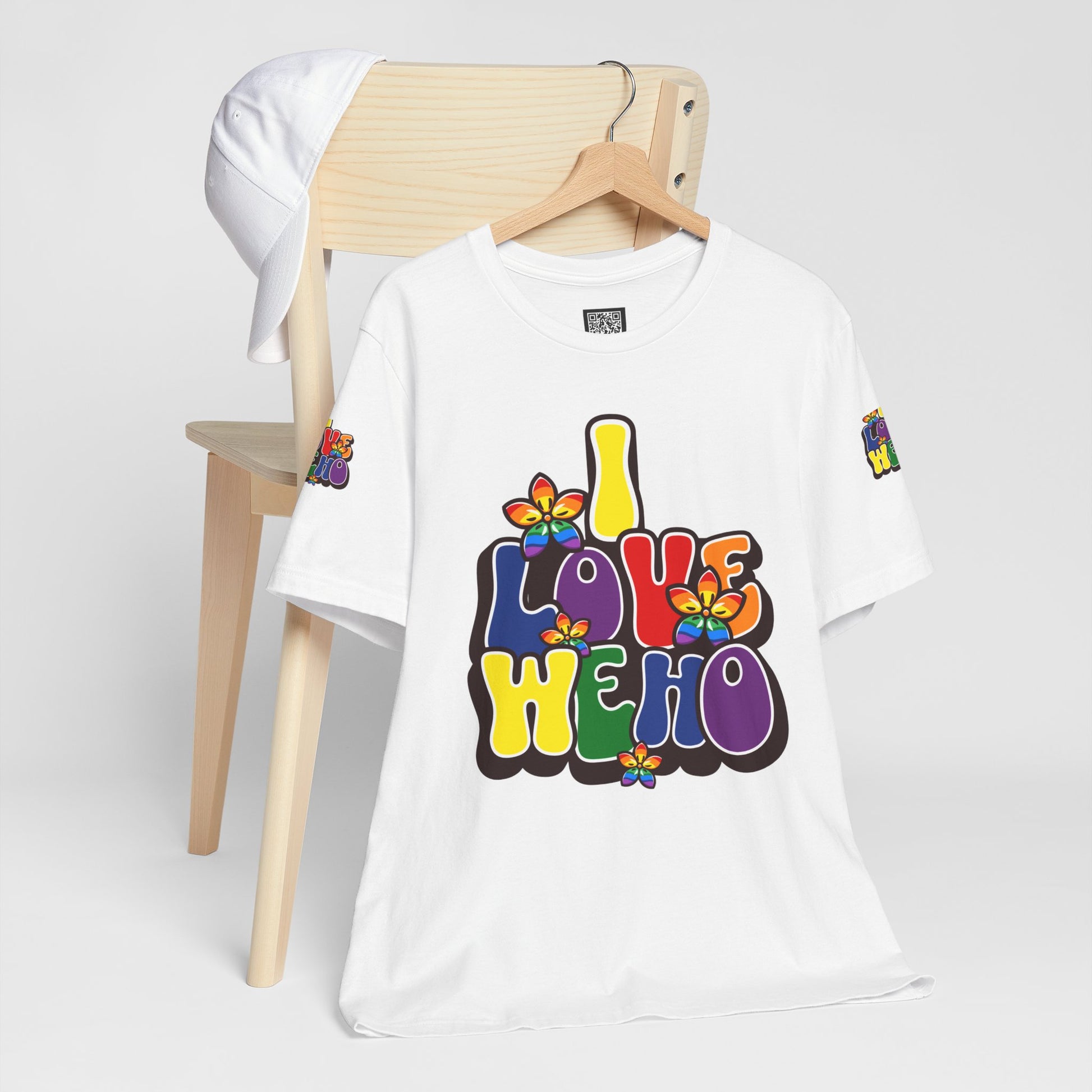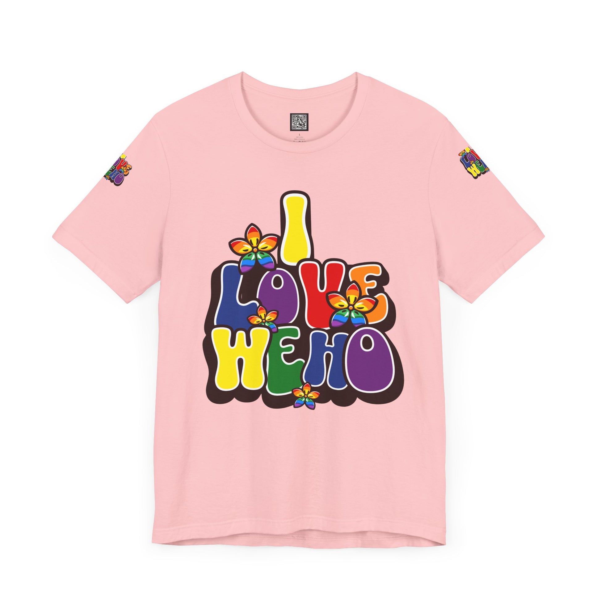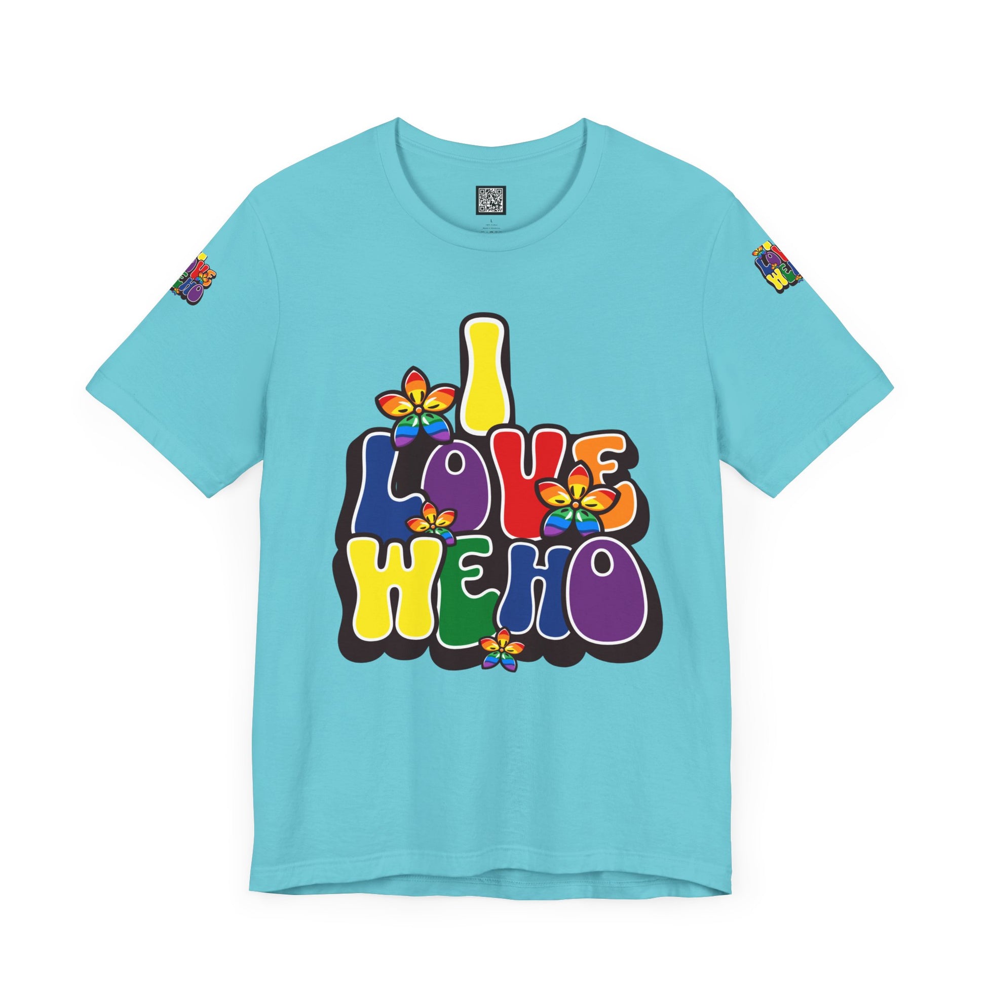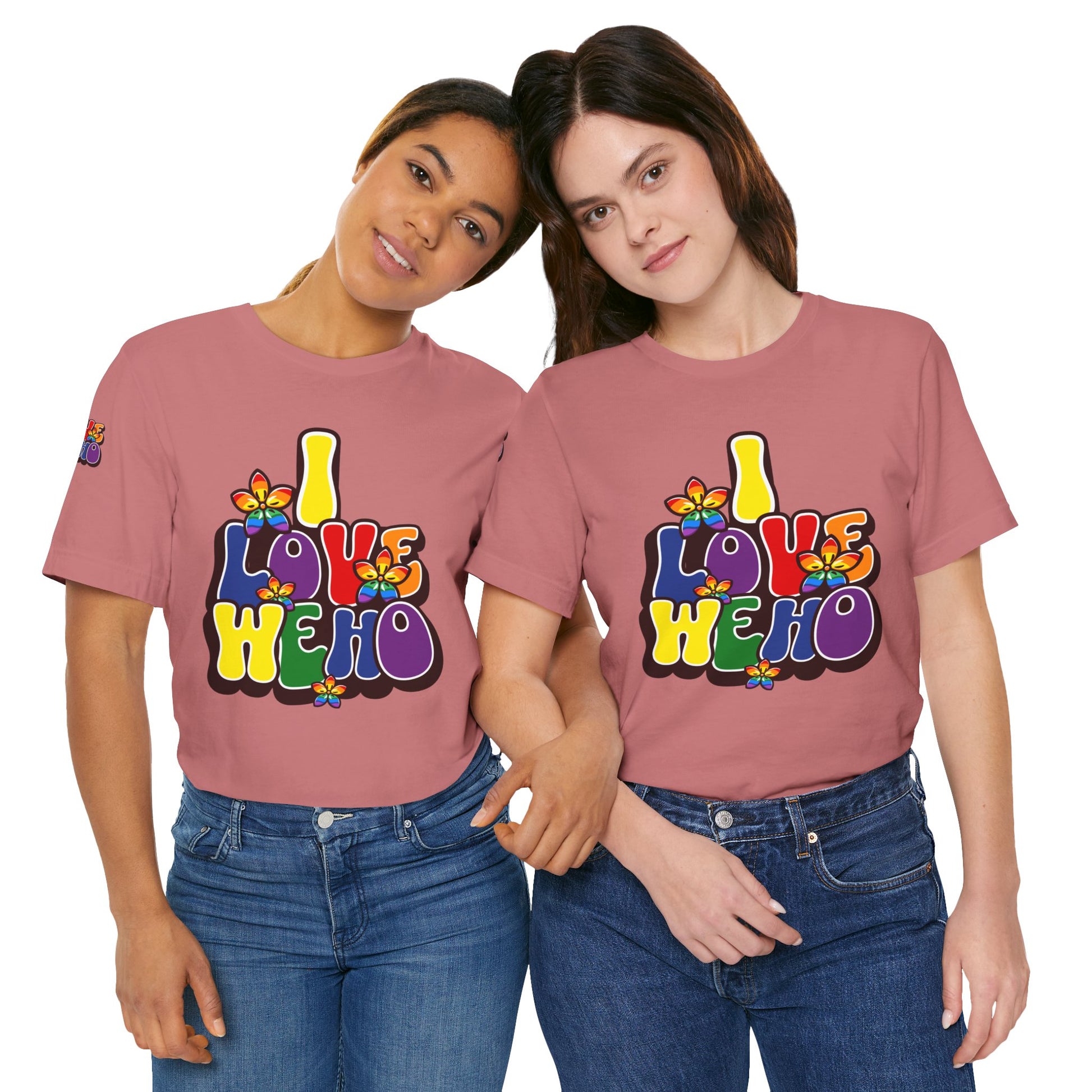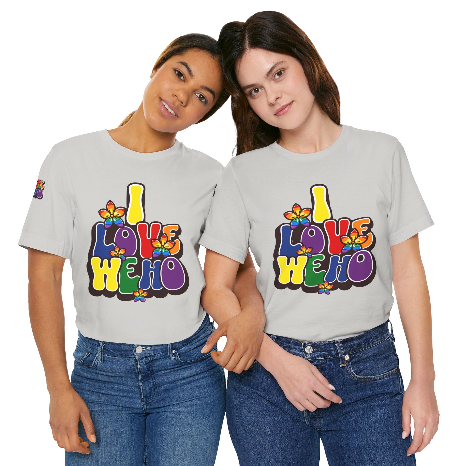Colorful LGBTQ+ Love Short Sleeve Tee, Pride T-Shirt, I Love WeHo, Pride Festival Merchandise, Gift for Friends, Unisex Graphic Tee