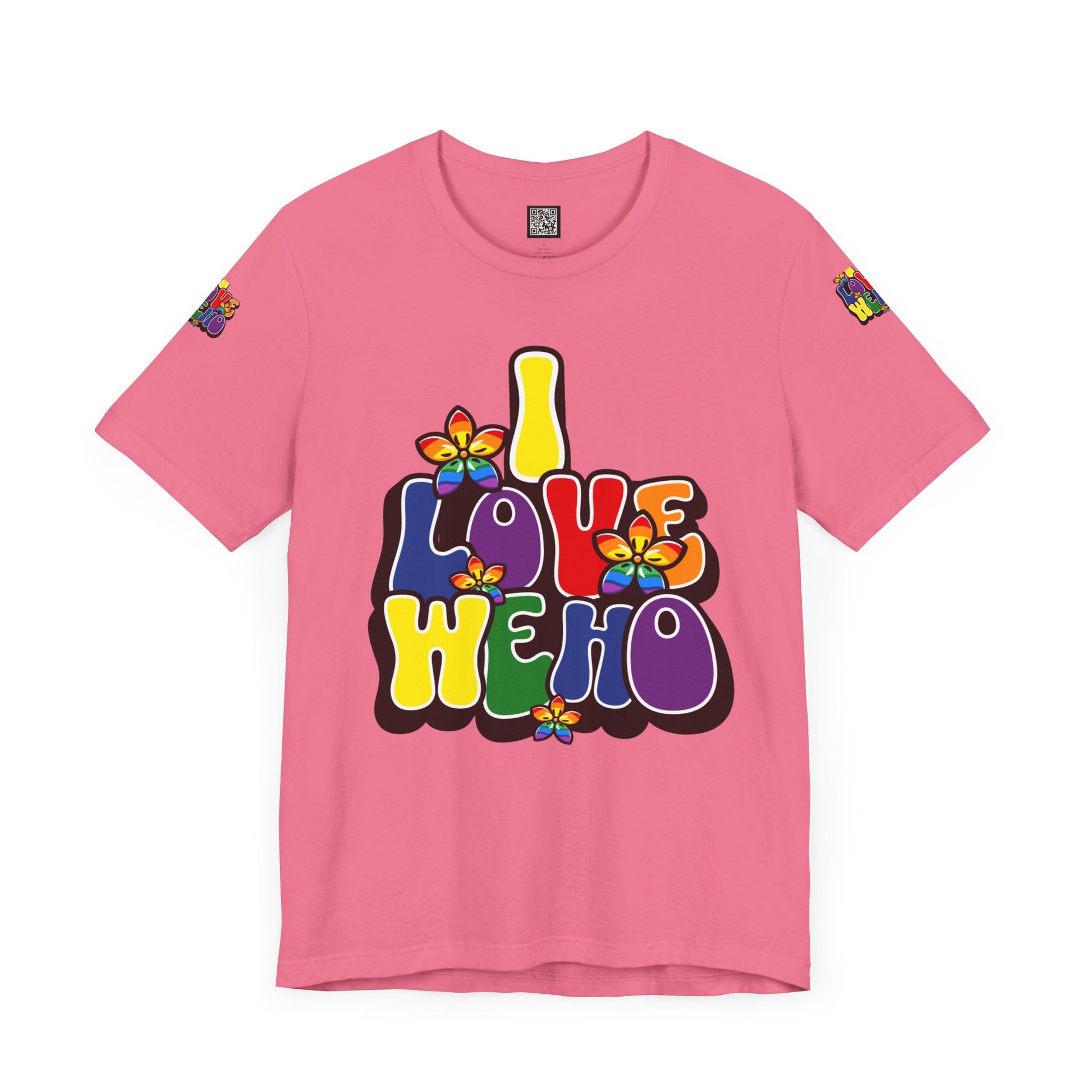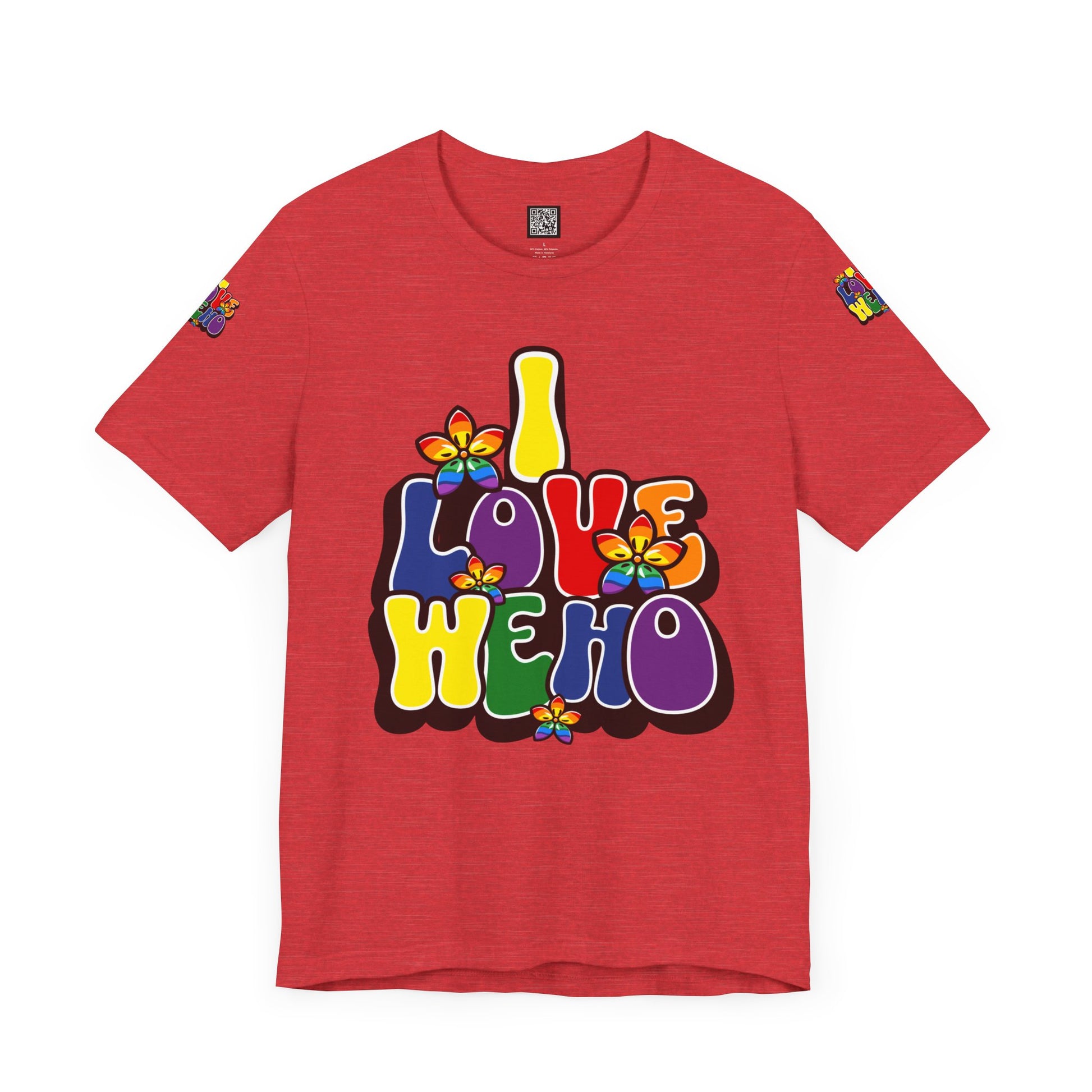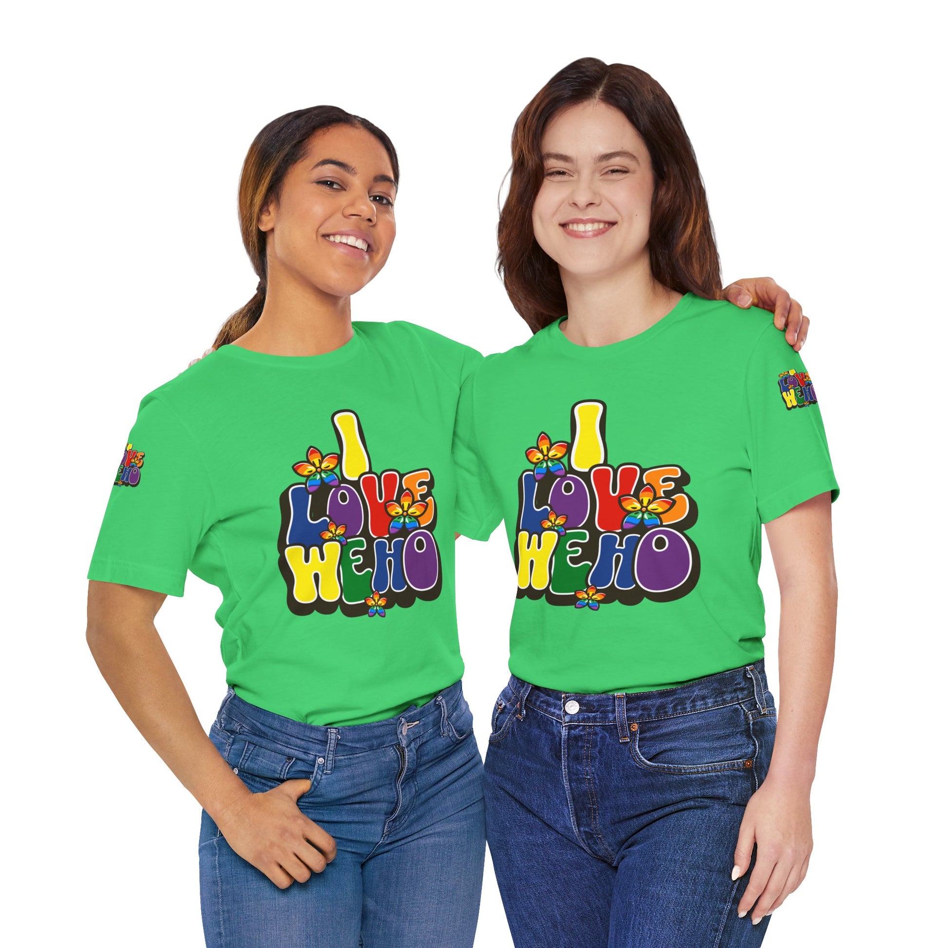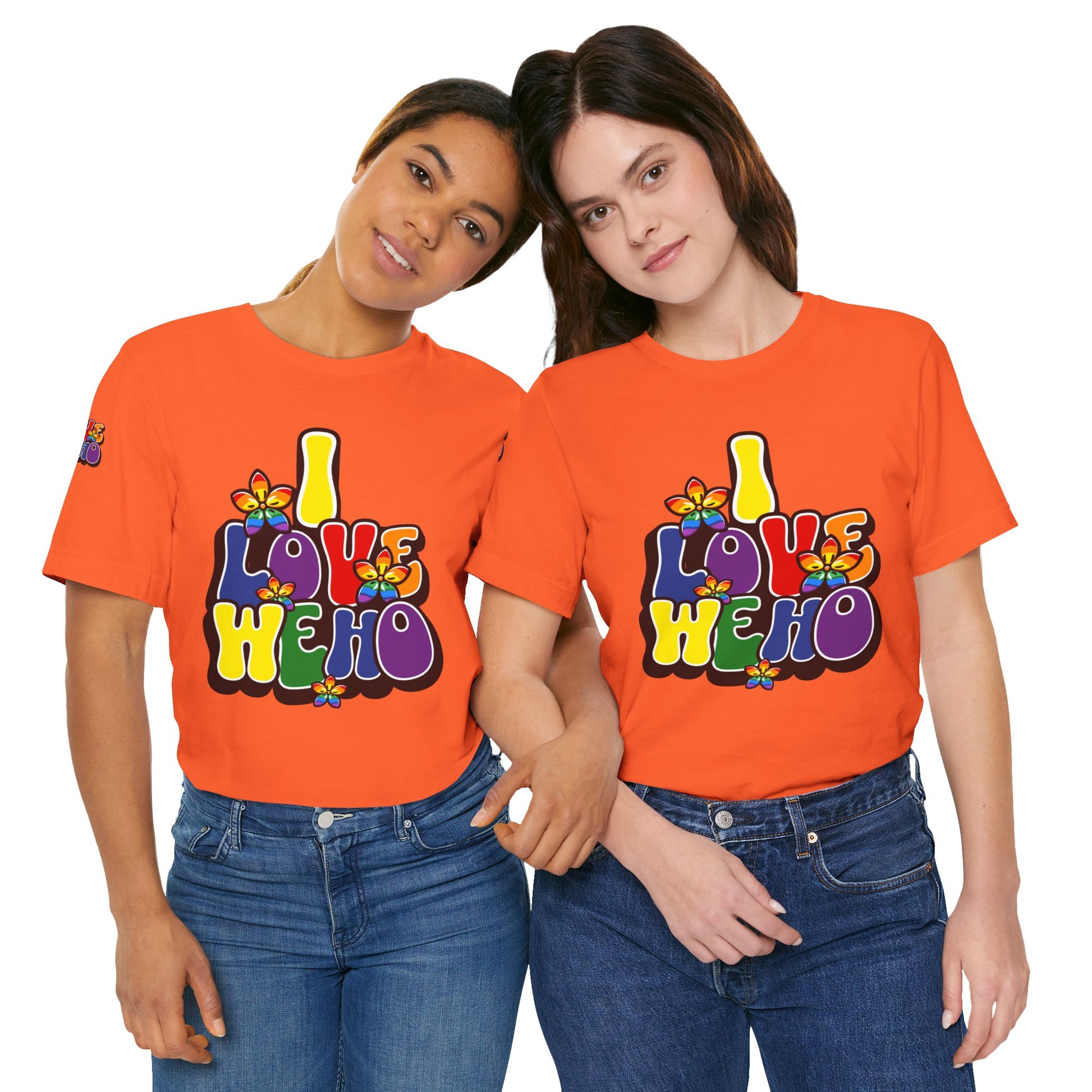 Colorful LGBTQ+ Love Short Sleeve Tee, Pride T-Shirt, I Love WeHo, Pride Festival Merchandise, Gift for Friends, Unisex Graphic Tee
