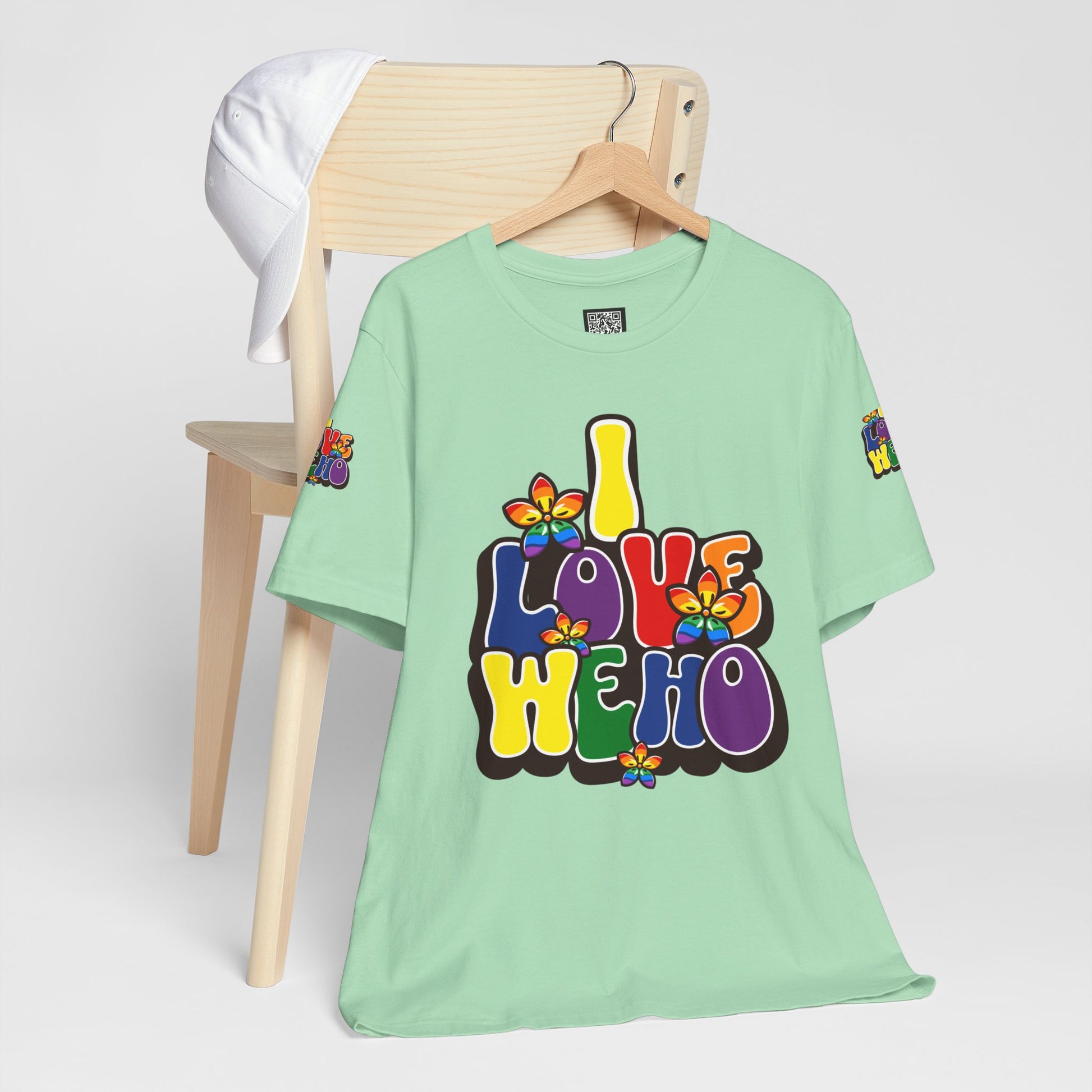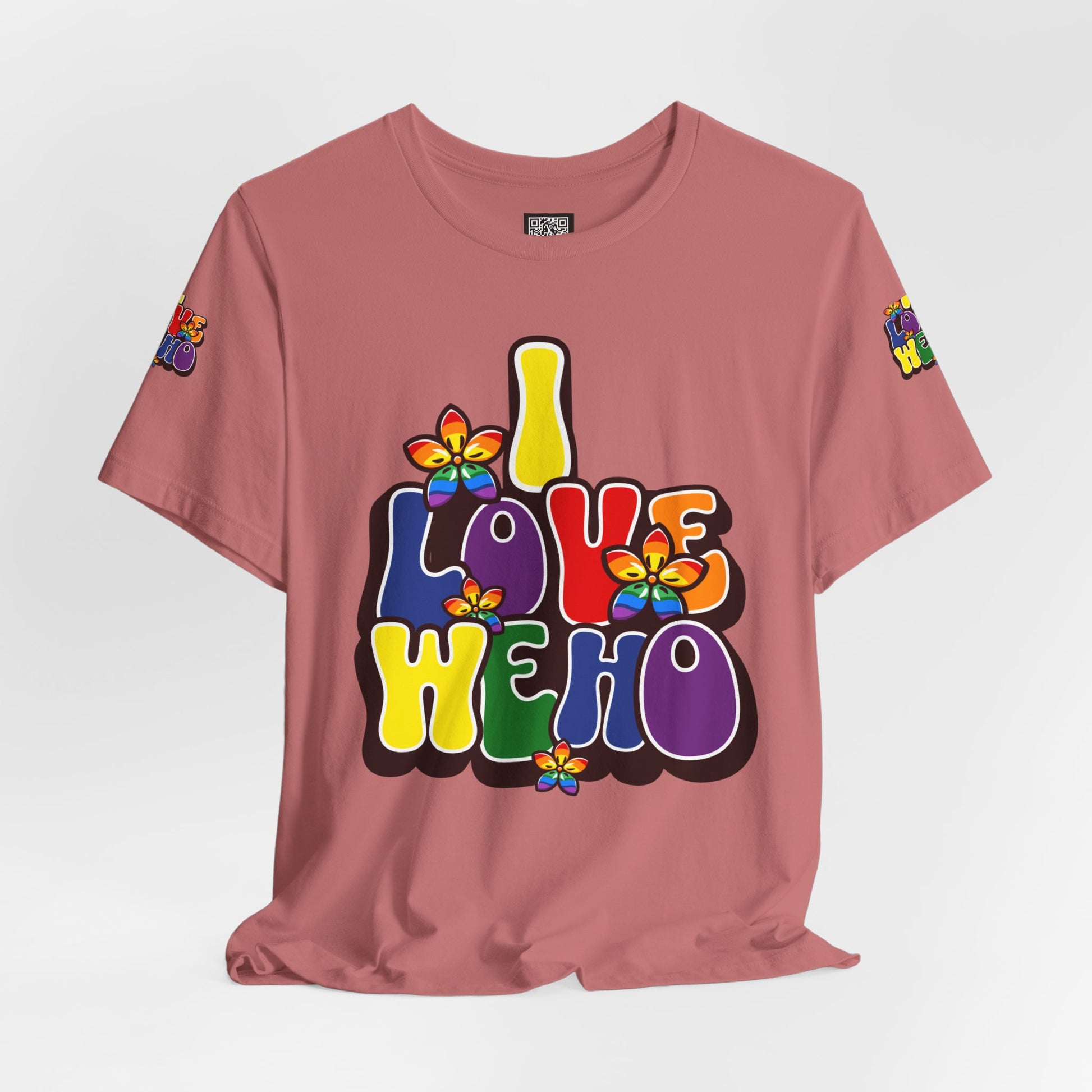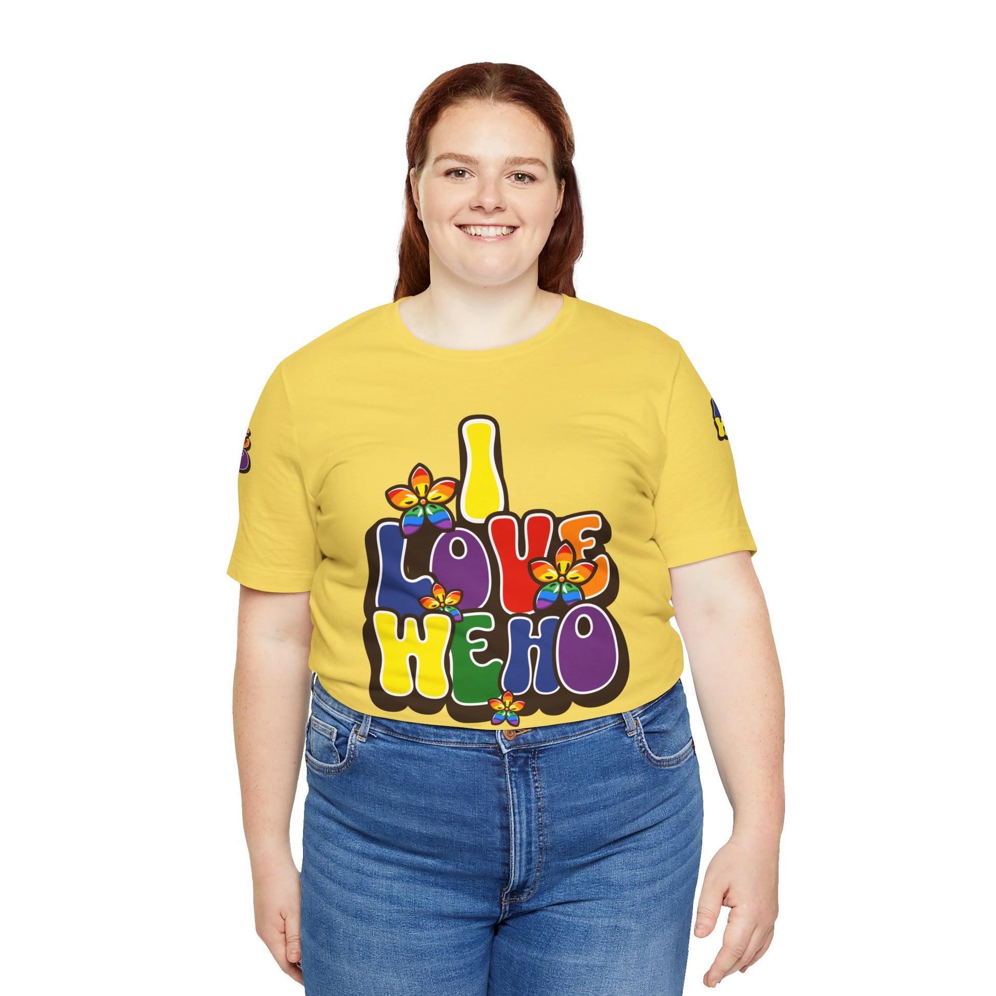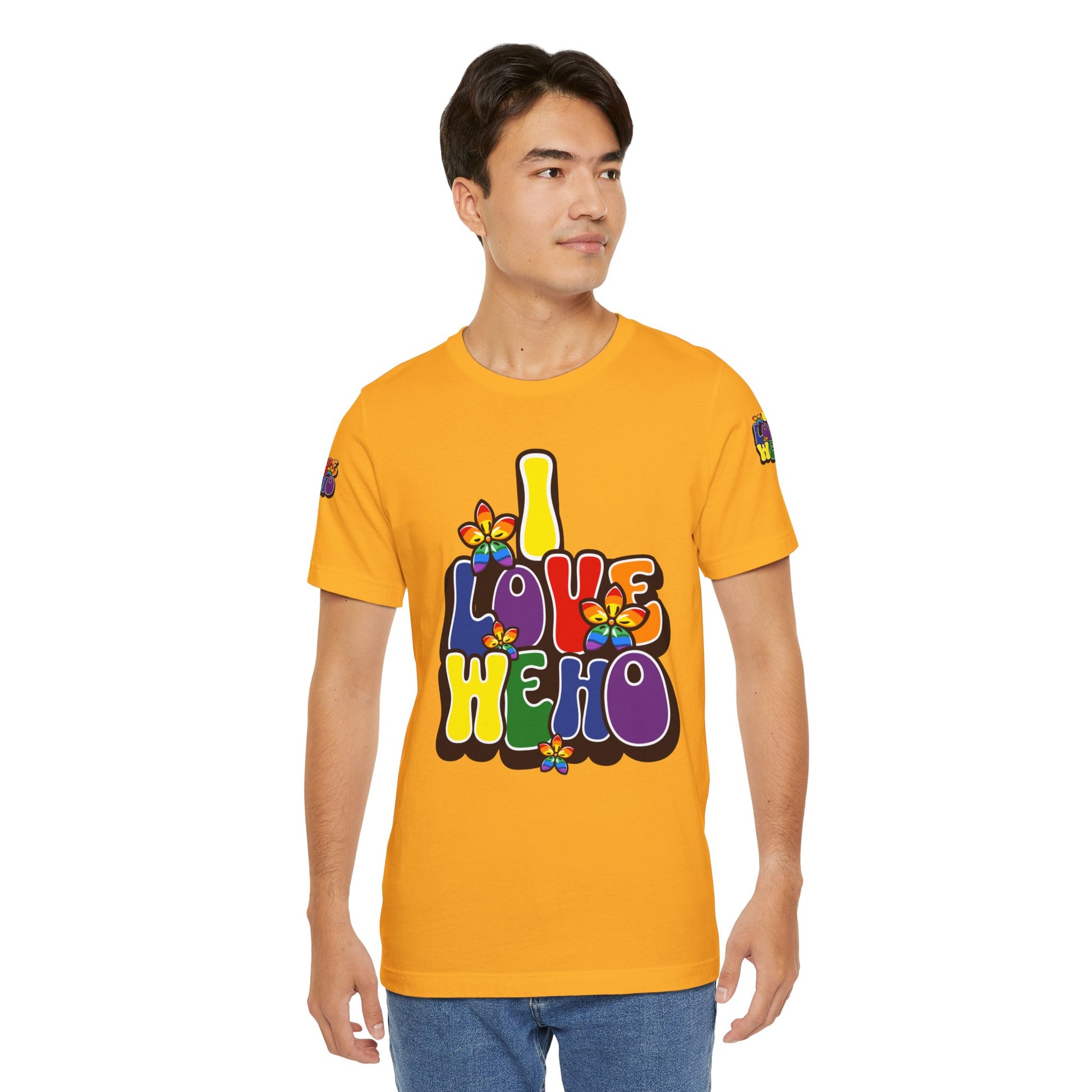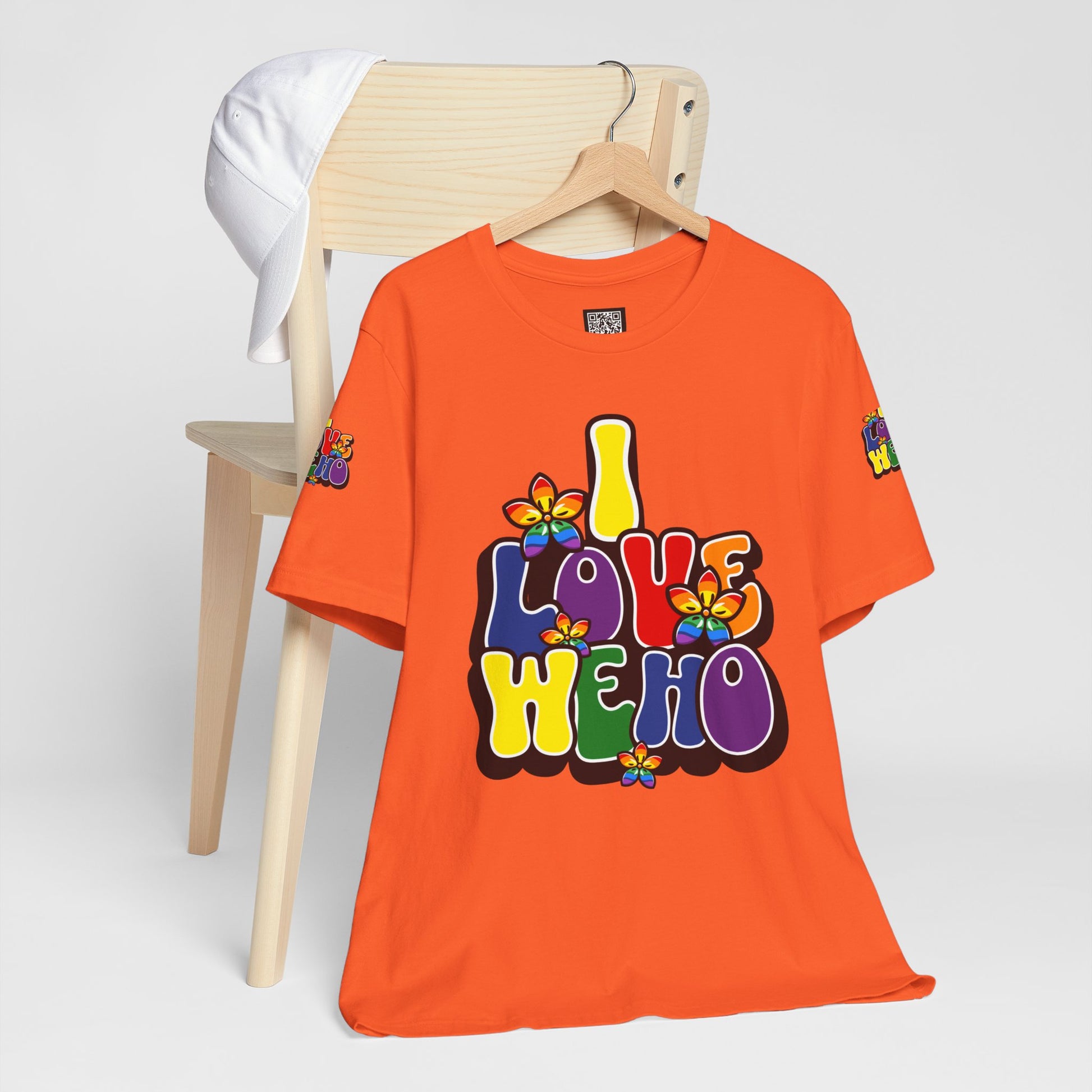 Colorful LGBTQ+ Love Short Sleeve Tee, Pride T-Shirt, I Love WeHo, Pride Festival Merchandise, Gift for Friends, Unisex Graphic Tee