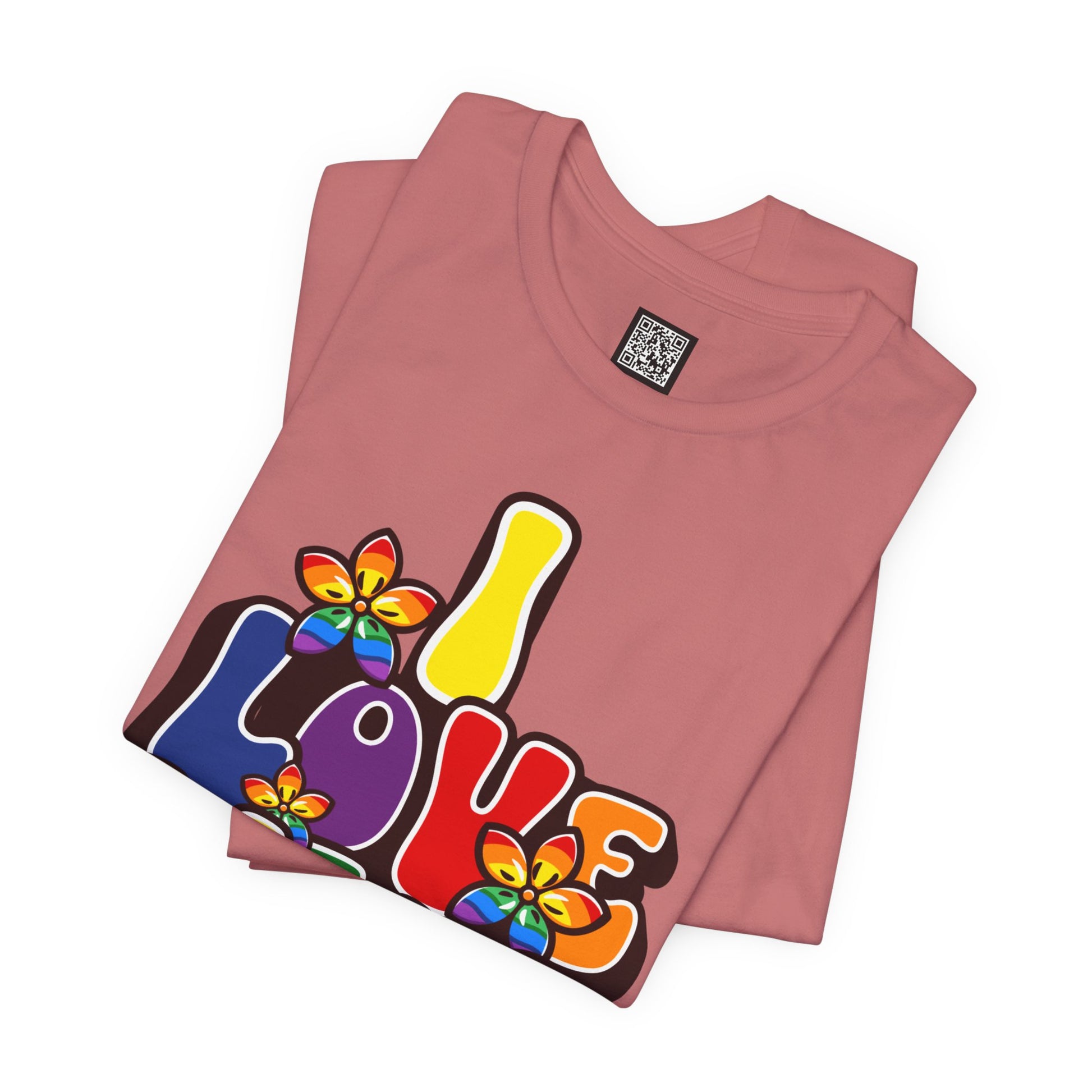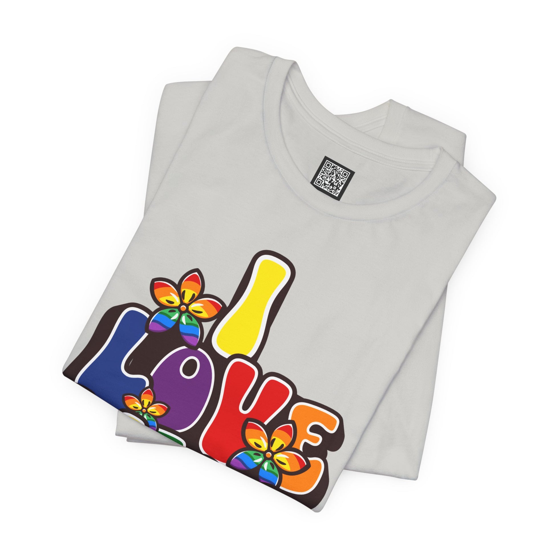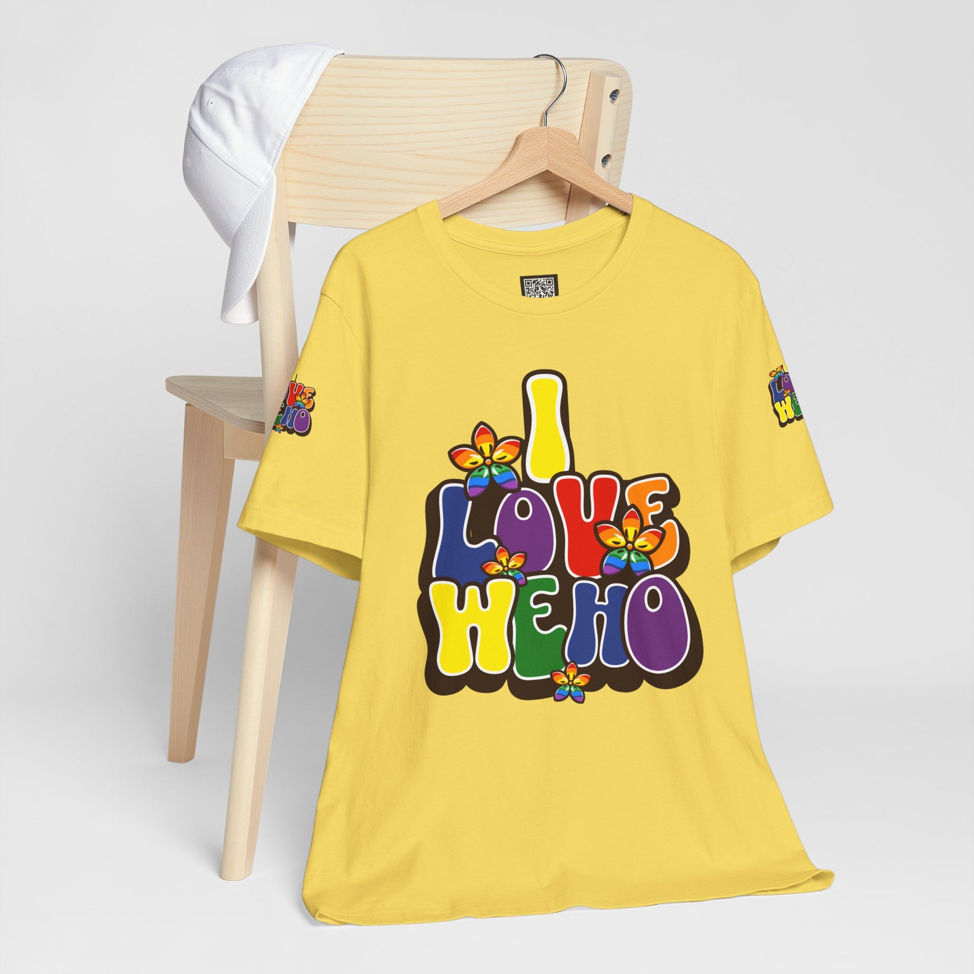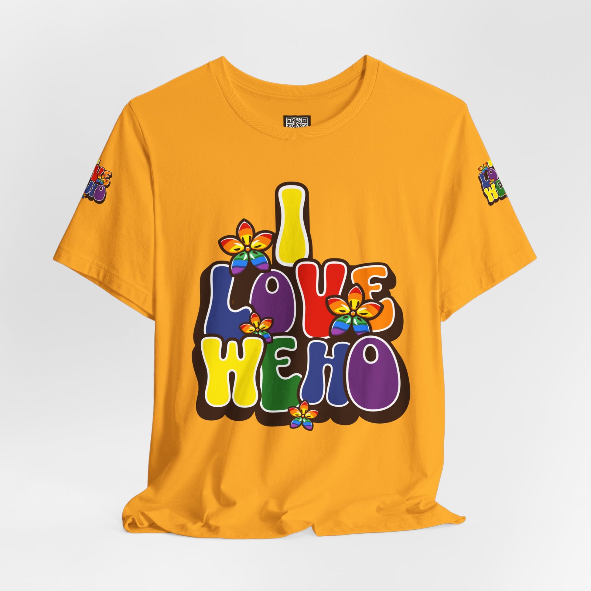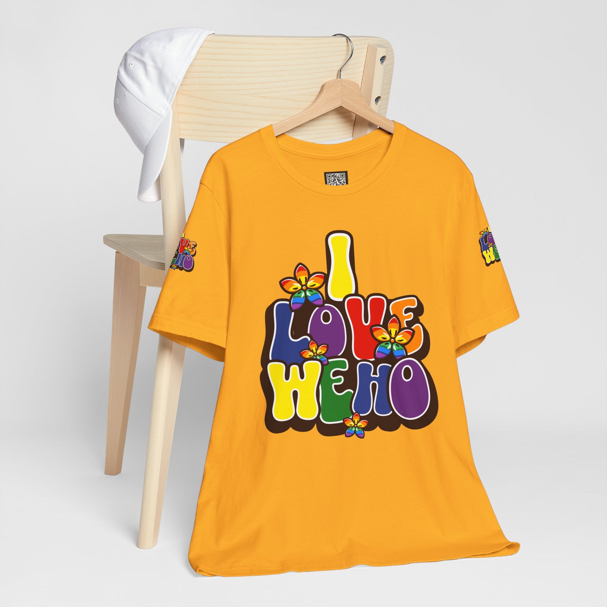 Colorful LGBTQ+ Love Short Sleeve Tee, Pride T-Shirt, I Love WeHo, Pride Festival Merchandise, Gift for Friends, Unisex Graphic Tee