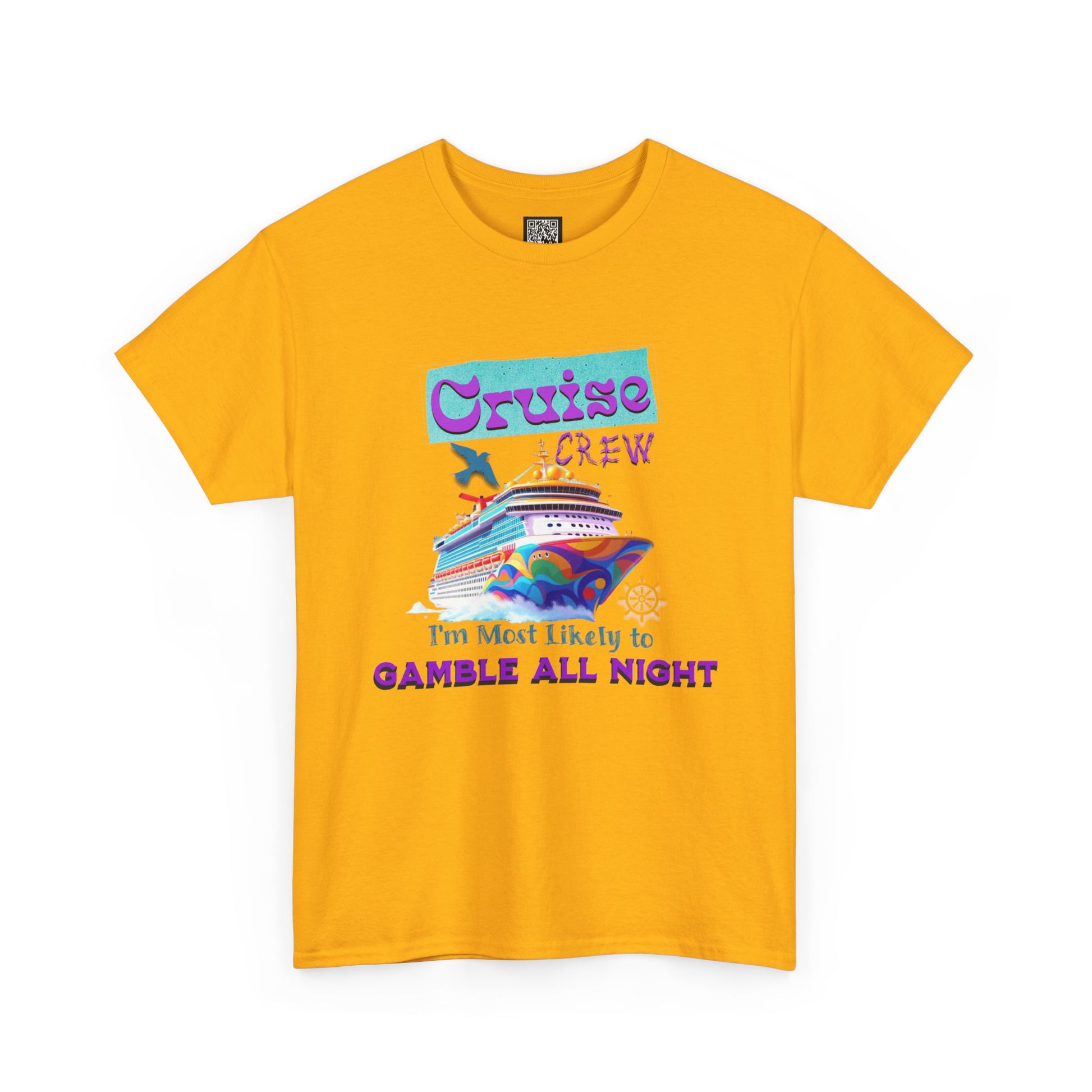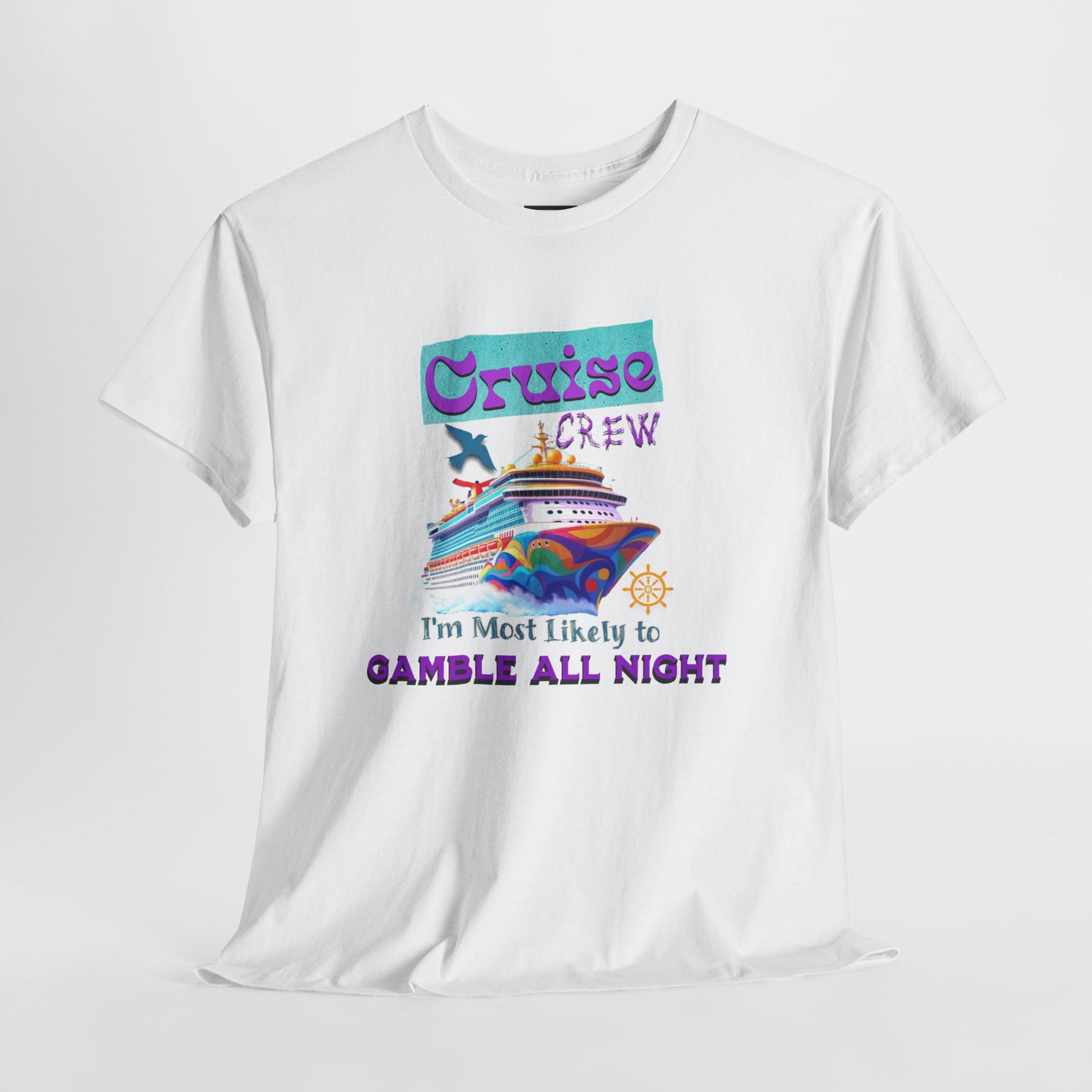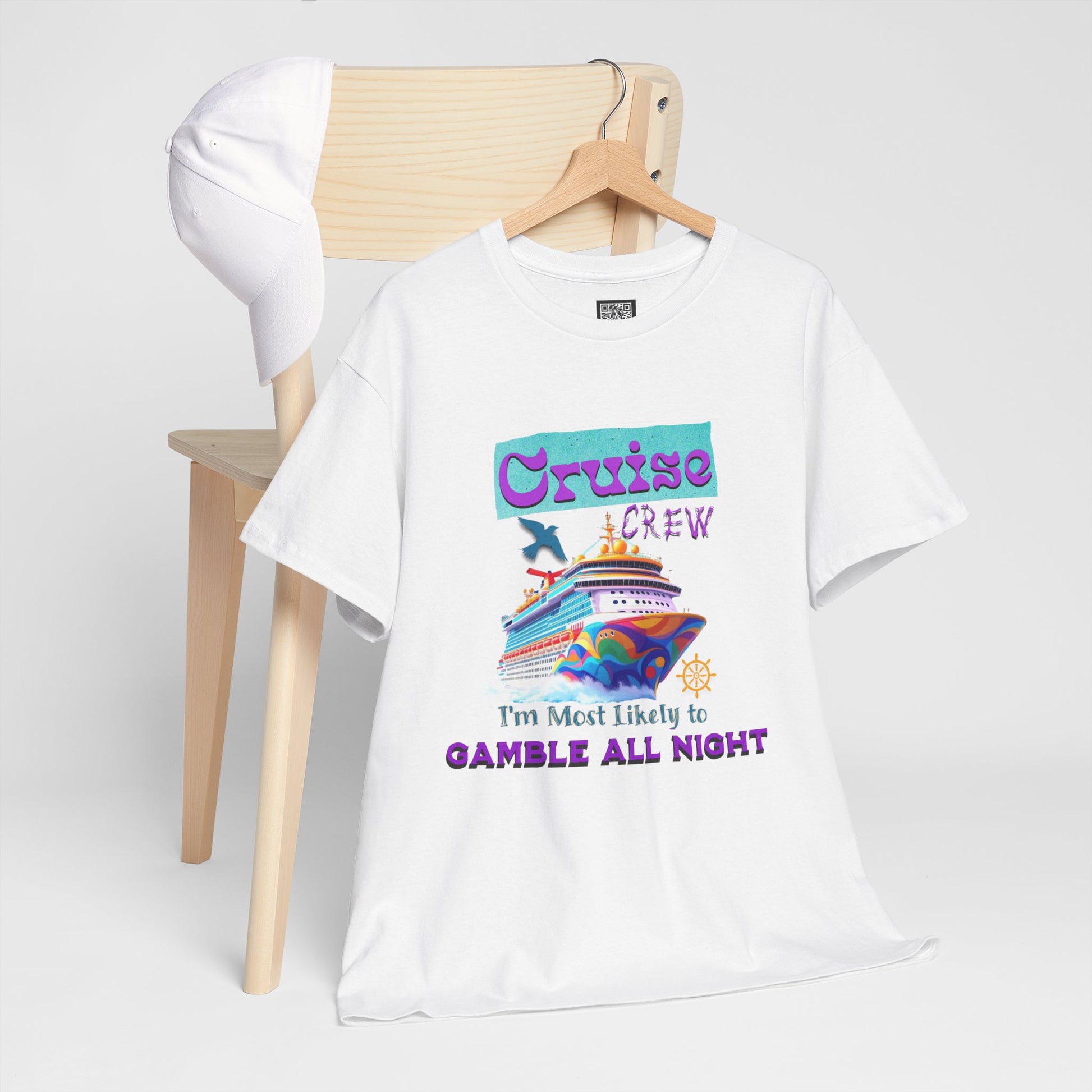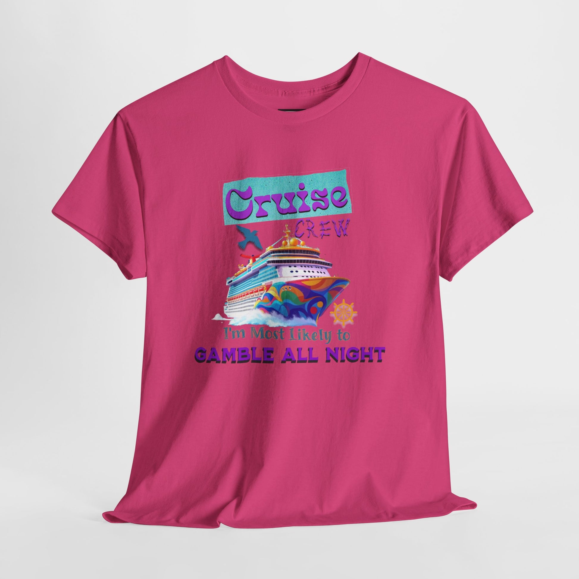 Cruise Crew Heavy Cotton Tee - Gamble All Night, Vacation Shirt, Cruise Wear, Fun Travel Outfit, Summer Party Top, Gambler's T-Shirt