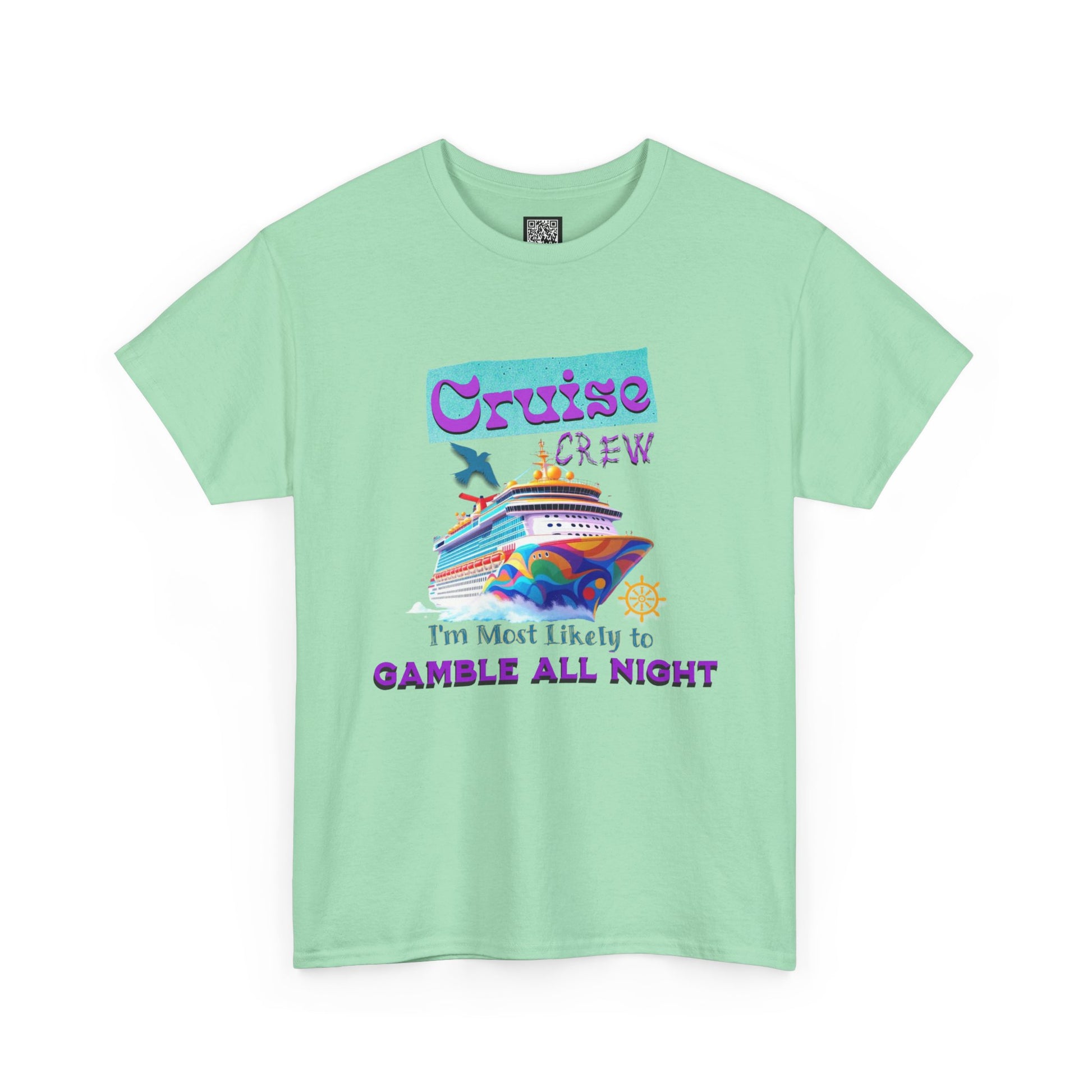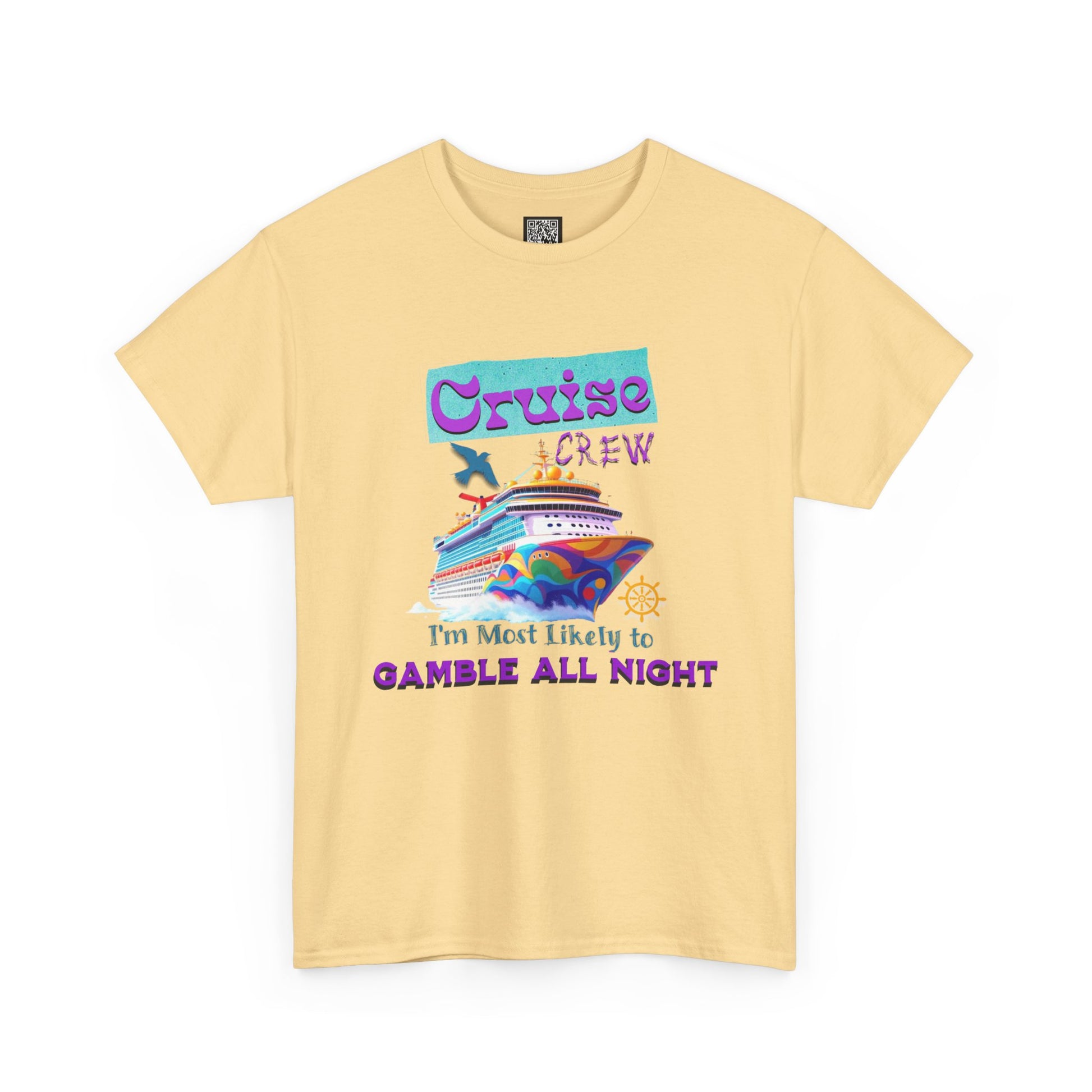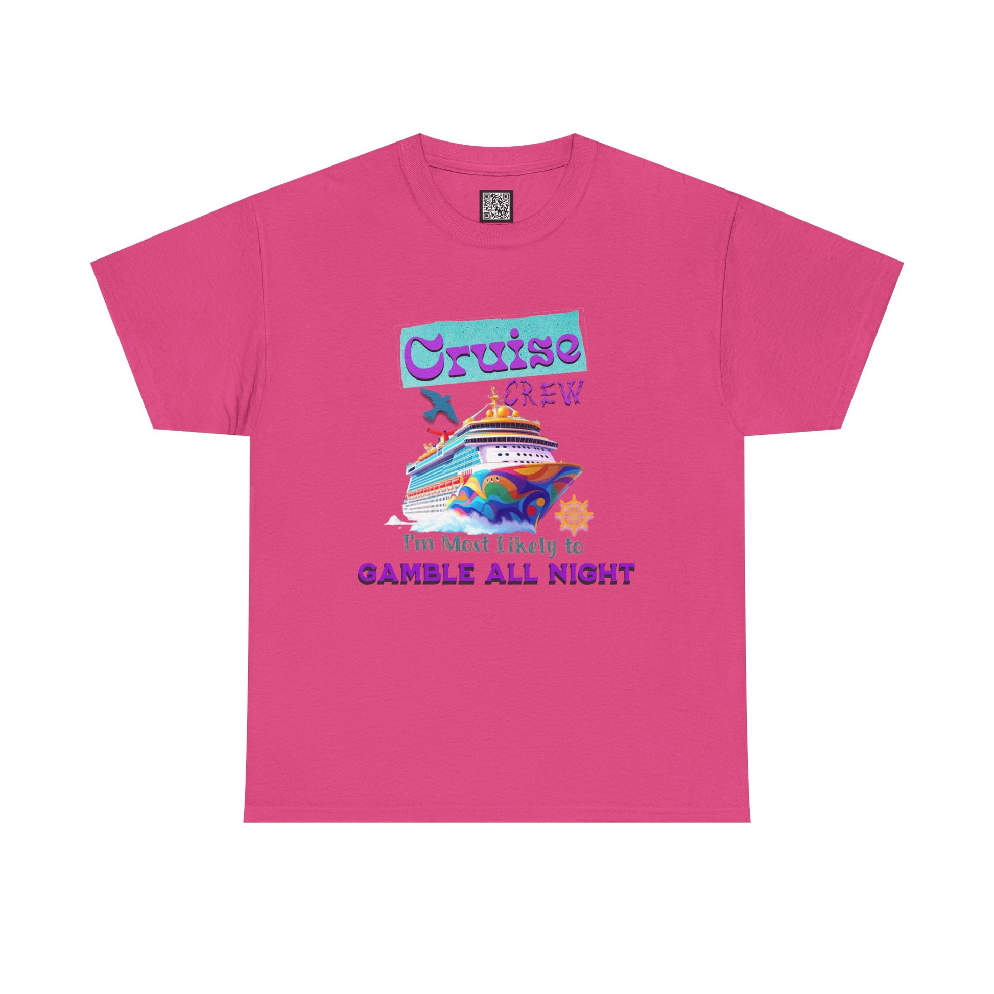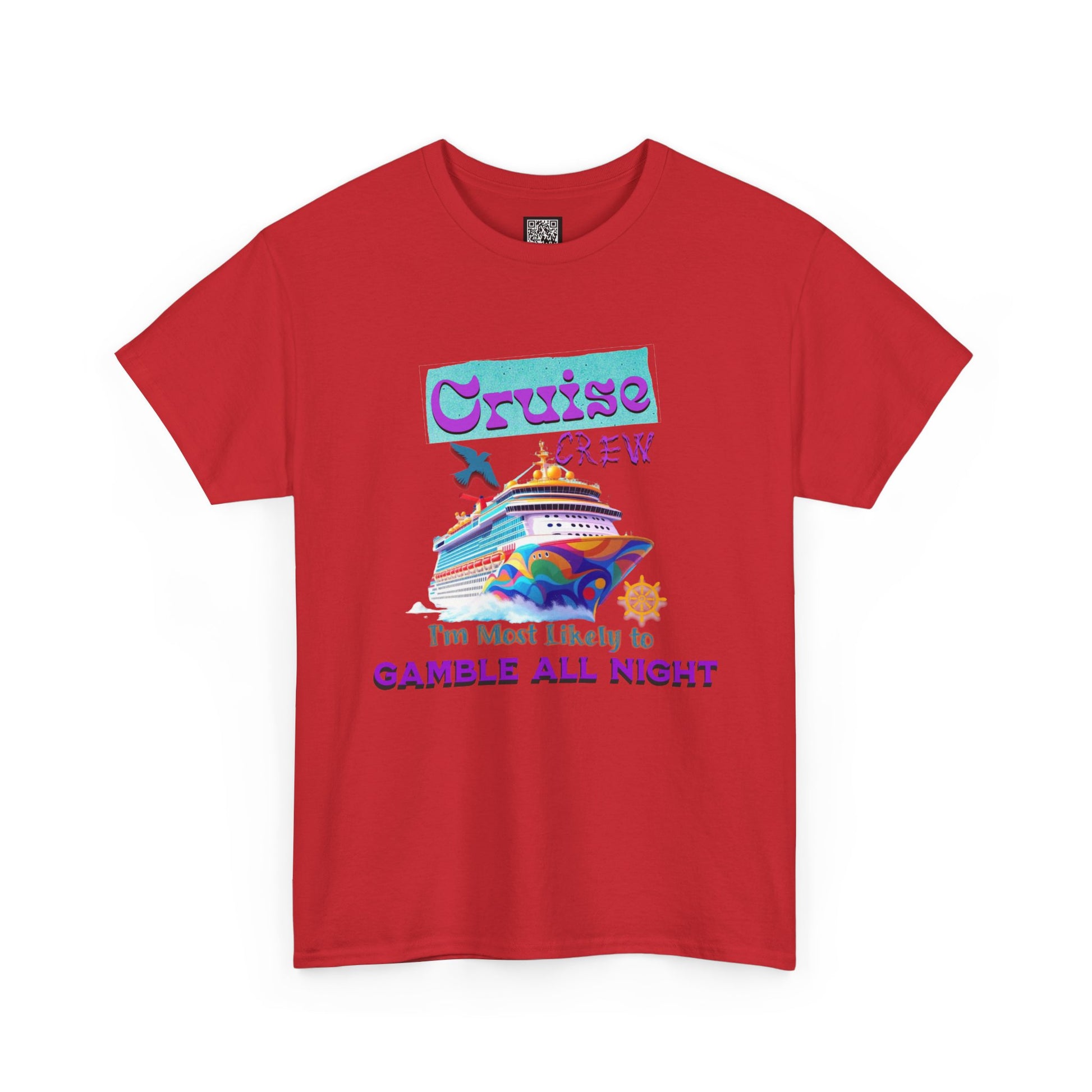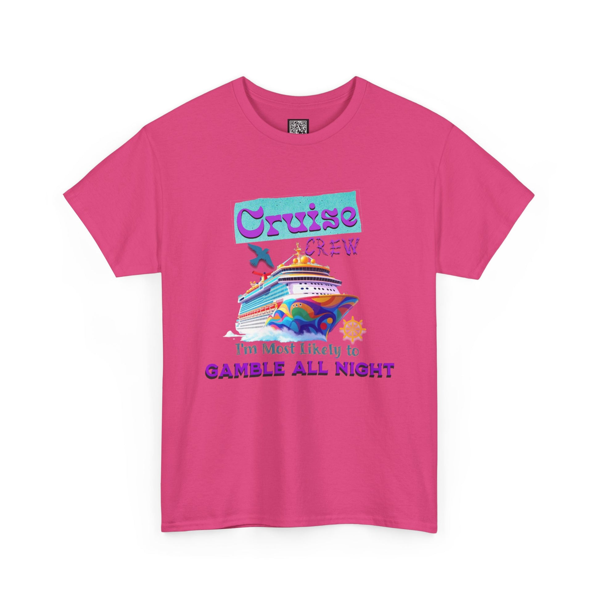 Cruise Crew Heavy Cotton Tee - Gamble All Night, Vacation Shirt, Cruise Wear, Fun Travel Outfit, Summer Party Top, Gambler's T-Shirt