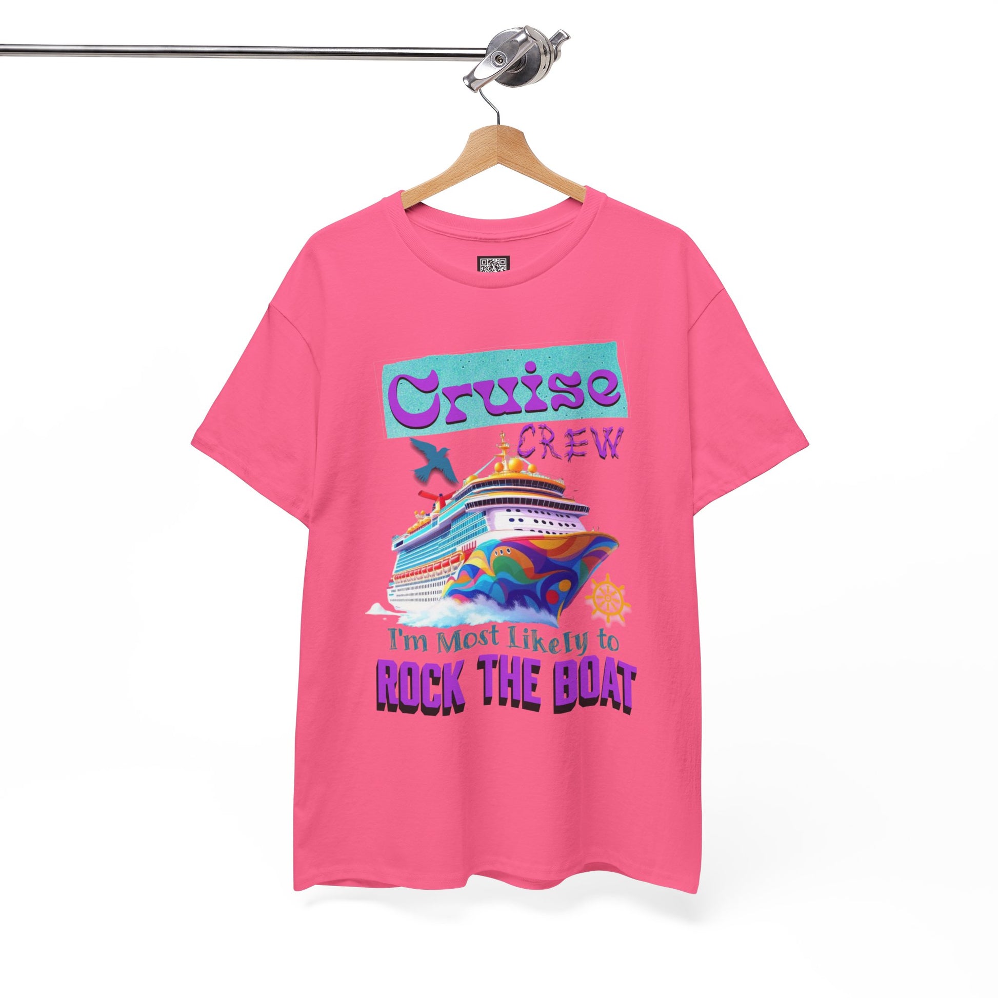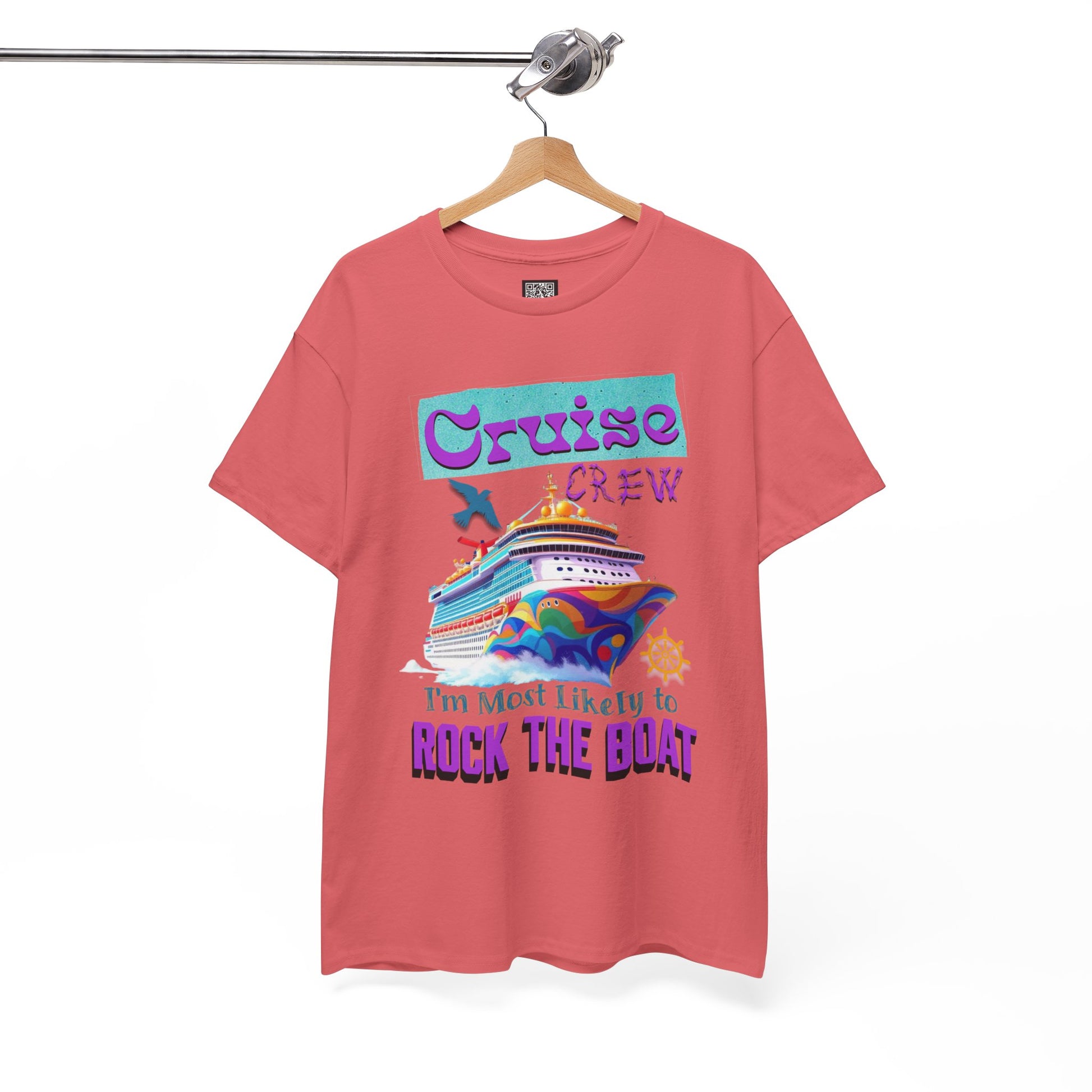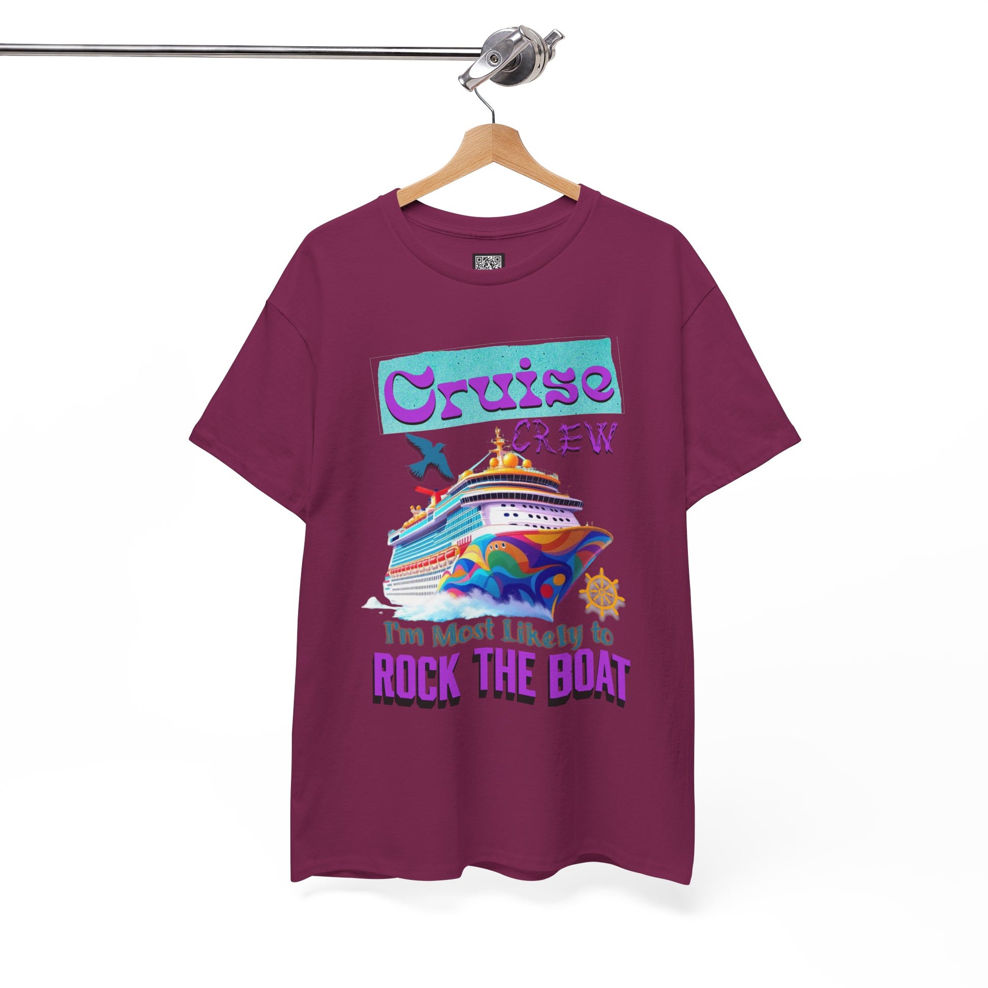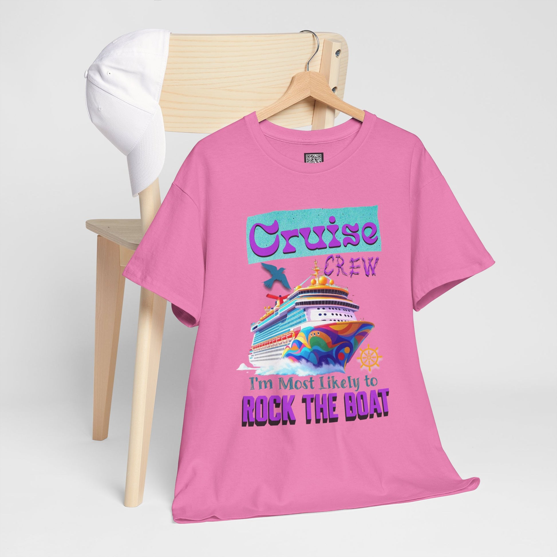 Introducing a stylish and comfortable cruise crew themed Unisex Heavy Cotton Tee, perfect for those who love to embrace their adventurous spirit! This tee features a vibrant design that declares, "I'm Most Likely to Rock the Boat," making it an ideal choice for cruise lovers and sea adventurers alike. Its relaxed fit and classic crew neckline provide both comfort and timeless style, allowing this shirt to fit seamlessly into any casual or semi-formal occasion. Whether you're enjoying a summer getaway, celebrating a birthday, or simply hanging out with friends, this shirt makes for a fun and bold statement piece. Perfect for men and women who enjoy sailing, travel, or simply want to showcase their love for the ocean, this tee is sure to become a cherished favorite. Celebrate life’s adventures and let your personality shine with this unique tee, especially perfect for summer vacations, family reunions, or as a gift for the cruise enthusiasts in your life!