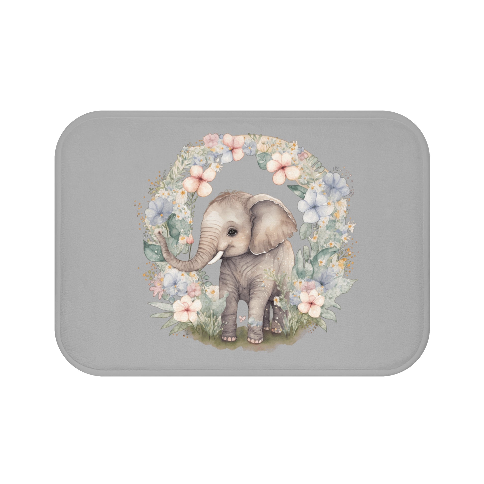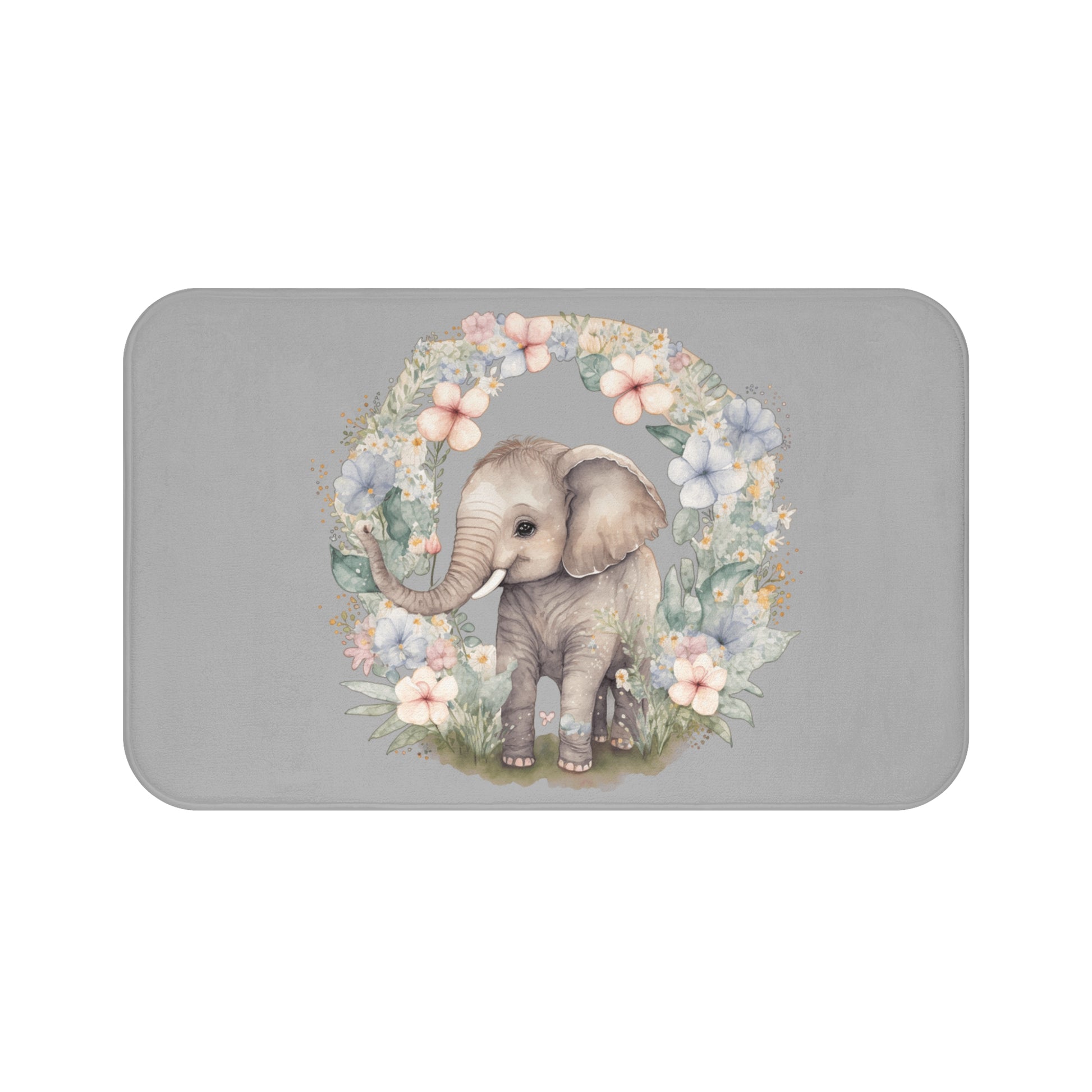 Cute Elephant Floral Bathmat, Elephant Nursery Decor, Elephant Baby Shower Gift, Elephant Bathroom Accessories, Kids Room Decor, Animal Theme
