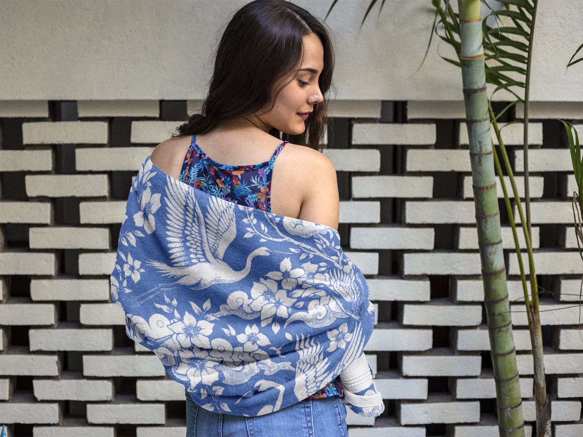 Elegant Crane-Pattern Mink-Cotton Towel, Beautiful Spa Gift, Beach Accessory, Bathroom Decor, Elegant Beach Towel, Home Gift