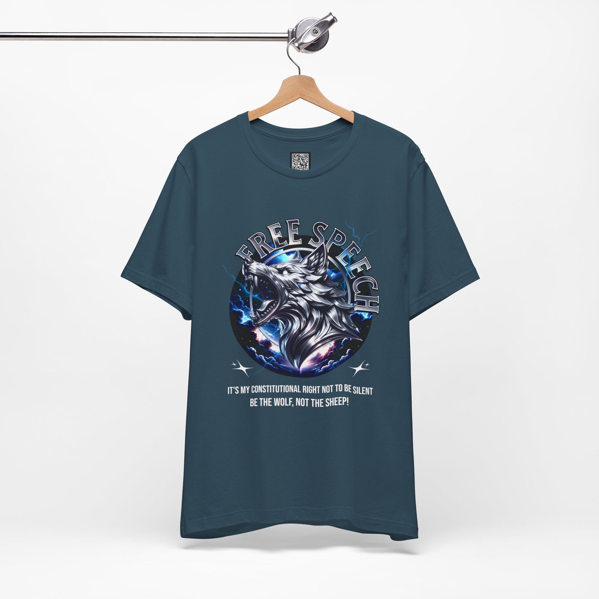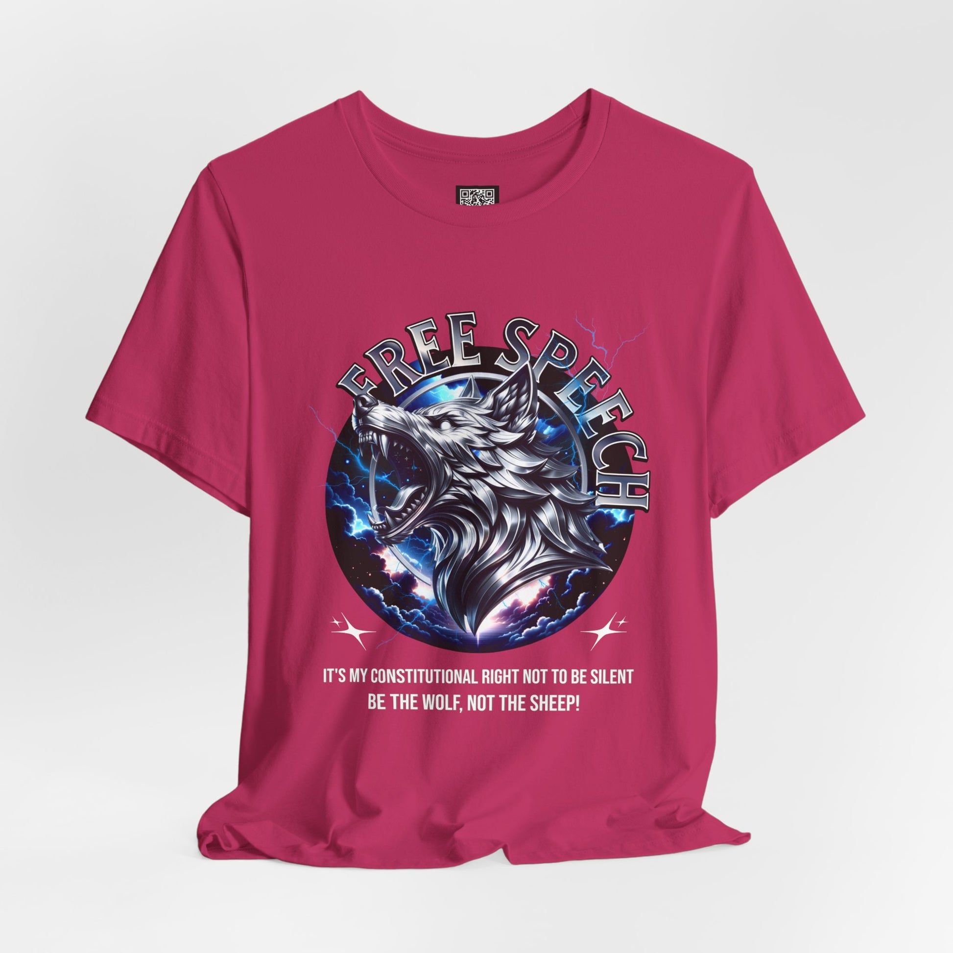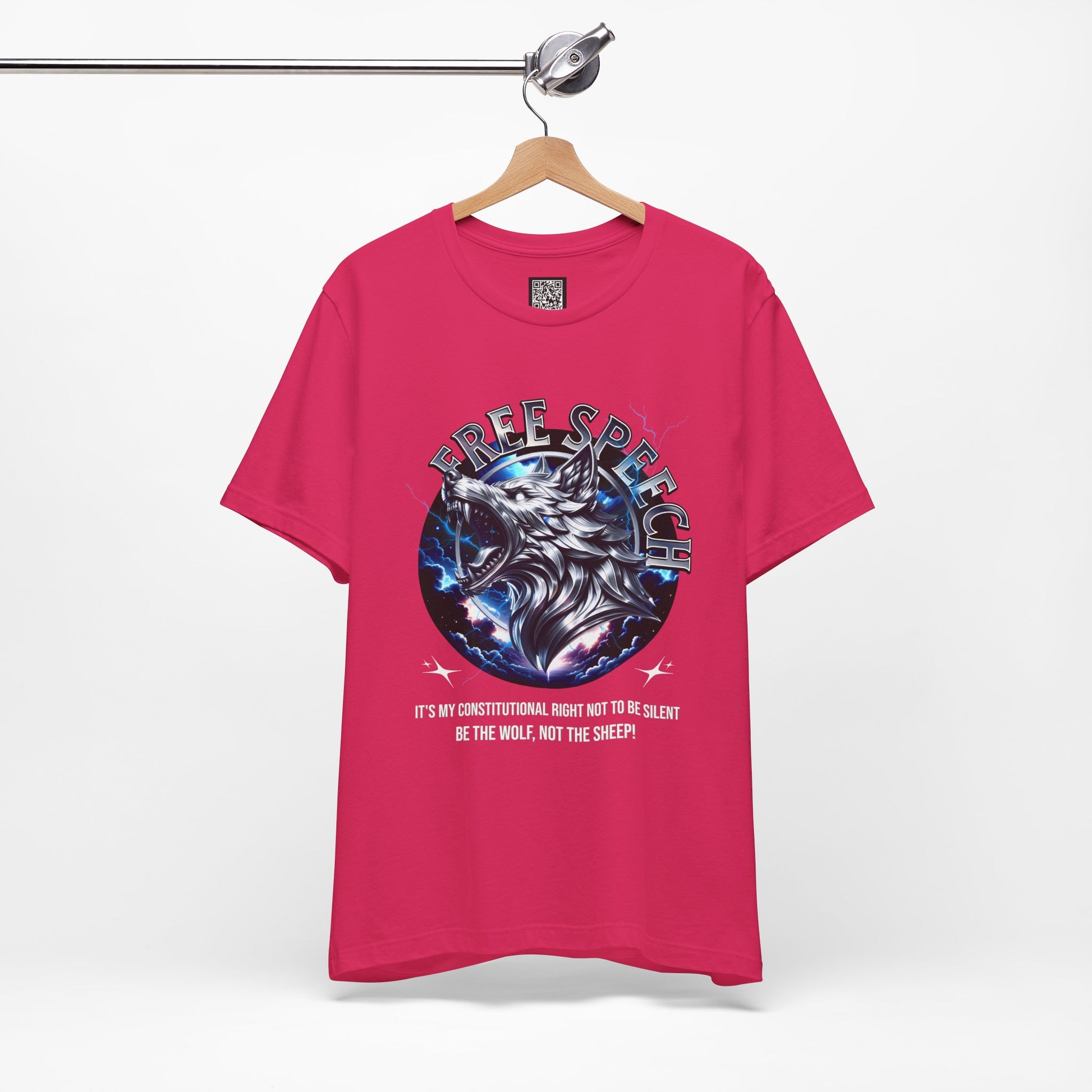 This Unisex Jersey Short Sleeve Tee is a stylish and versatile addition to any wardrobe. Crafted from 100% Airlume combed and ring-spun cotton, it features a breathable, lightweight fabric that is comfortable for both active and leisure wear. The striking free speech wolf design exudes confidence, making it perfect for expressing individuality. Ideal for casual outings or semi-formal events, this tee effortlessly fits into your lifestyle. It's a great gift for friends and family, especially for protest and to promote speaking up and standing up for oneself. For occasions where self-expression matters, such as Independence Day, birthdays, or just because you want to make a statement. Perfect for anyone who values both comfort and style, this tee resonates with those who appreciate freedom of speech and unique design.