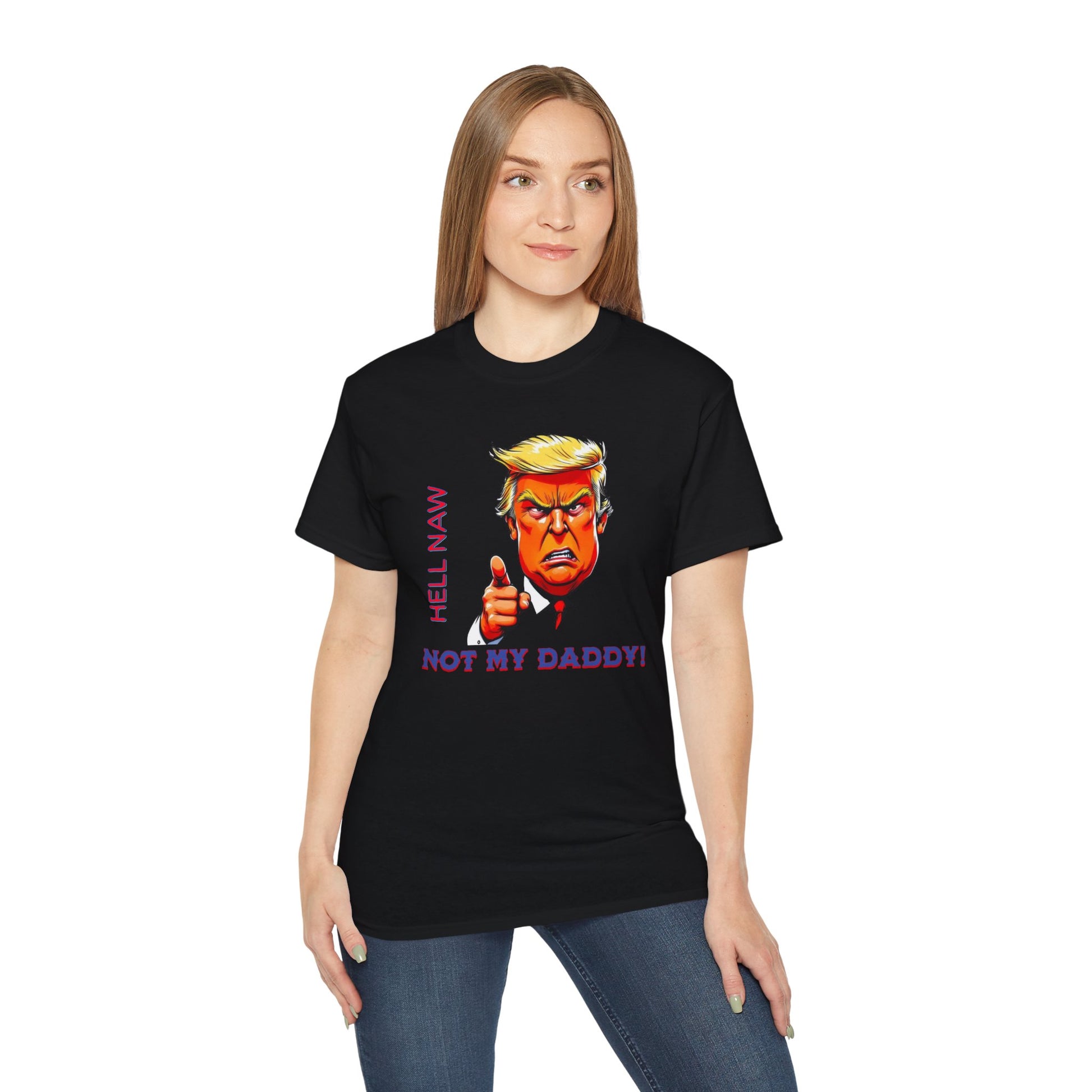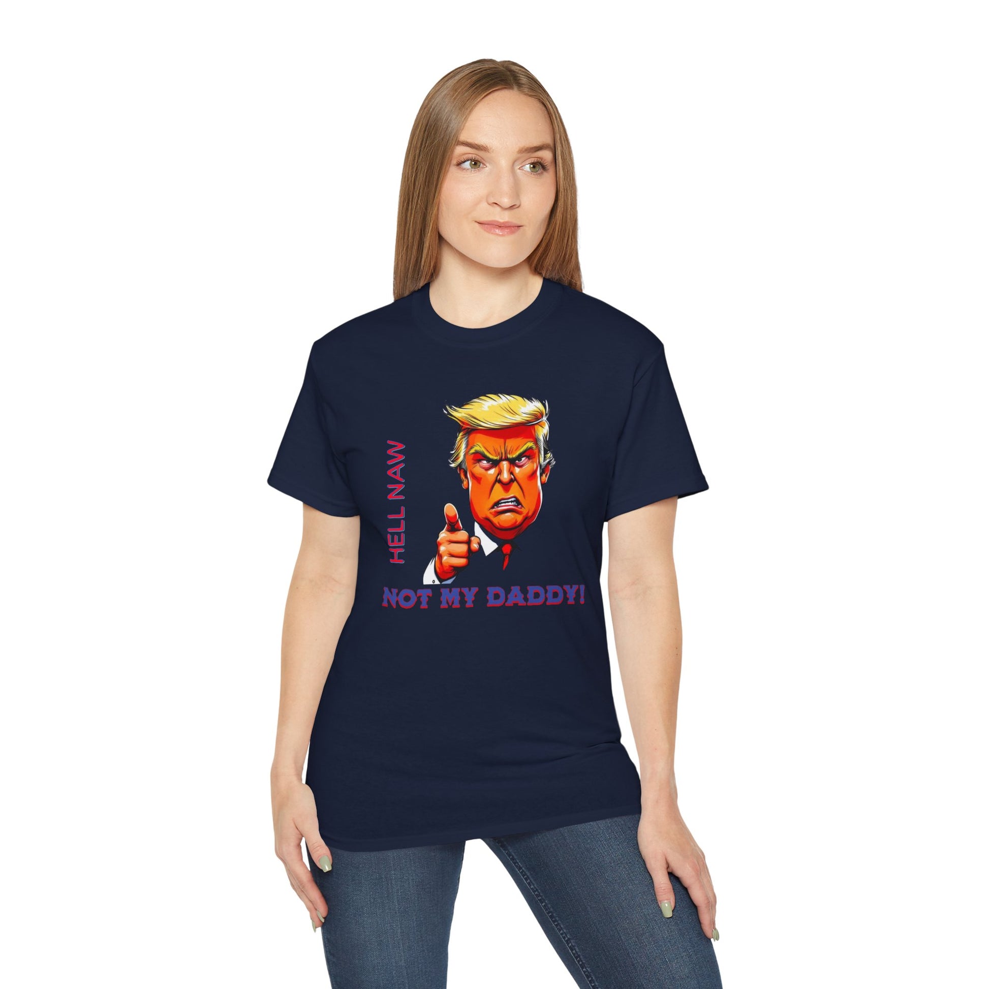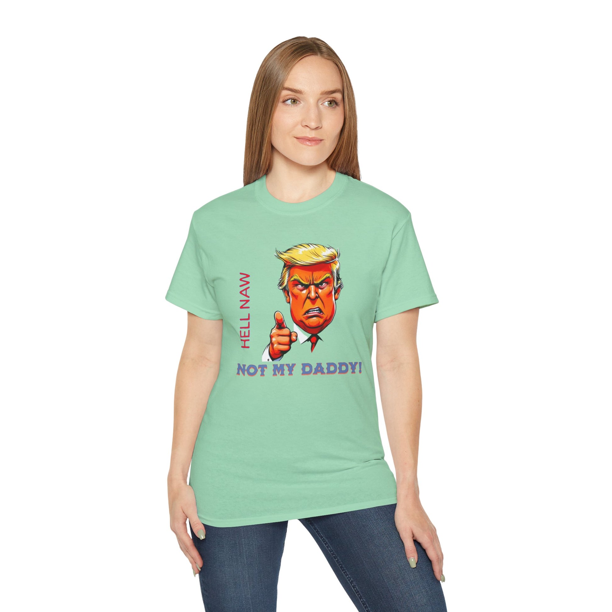 Funny Political Statement Tee - "Hell Naw, Not My Daddy!" Humor for Democrats, Gift for Political Events, Protest Shirt, Unisex Cotton