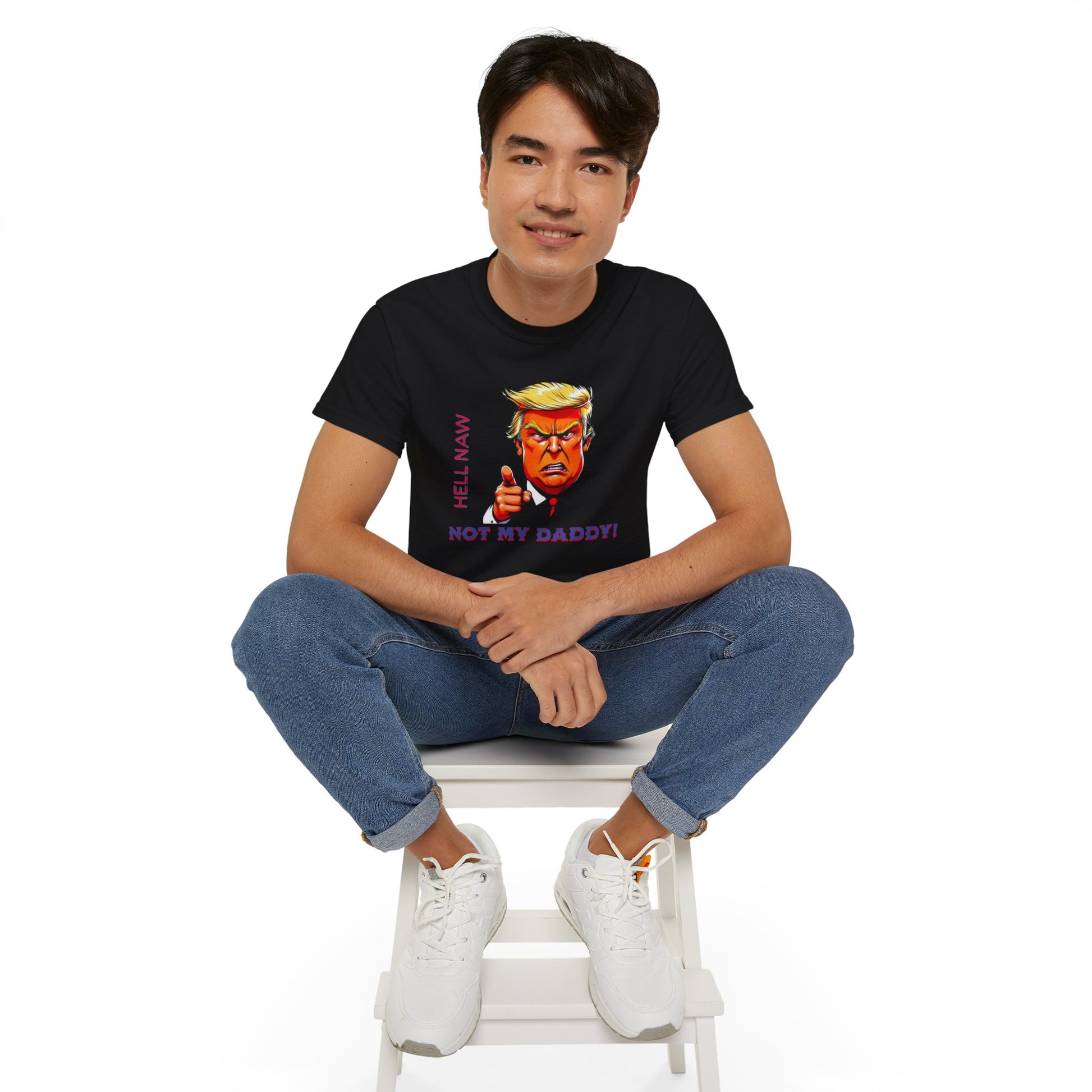 Introducing a one-of-a-kind Not My Daddy T-Shirt that showcases a unique and bold design, perfect for making a statement. This funny unisex tee emanates a fun and playful vibe, suitable for casual outings or casual gatherings. Whether you're out with friends, attending a political rally, or simply enjoying a relaxed day at home, this shirt adds personality to your wardrobe. Ideal for adults who embrace humor and want to express their political views, it's a great conversation starter. Perfect for occasions like birthdays, casual parties, or any event where you want to stand out with your style!