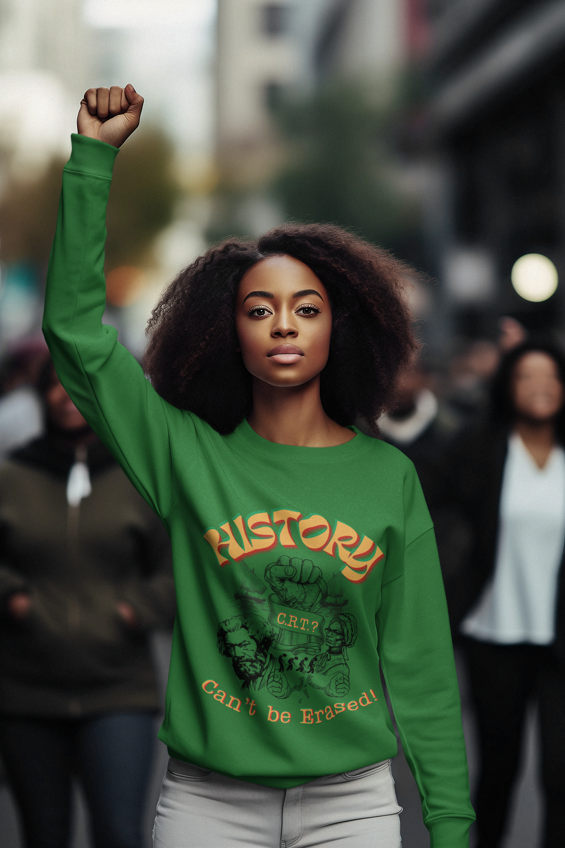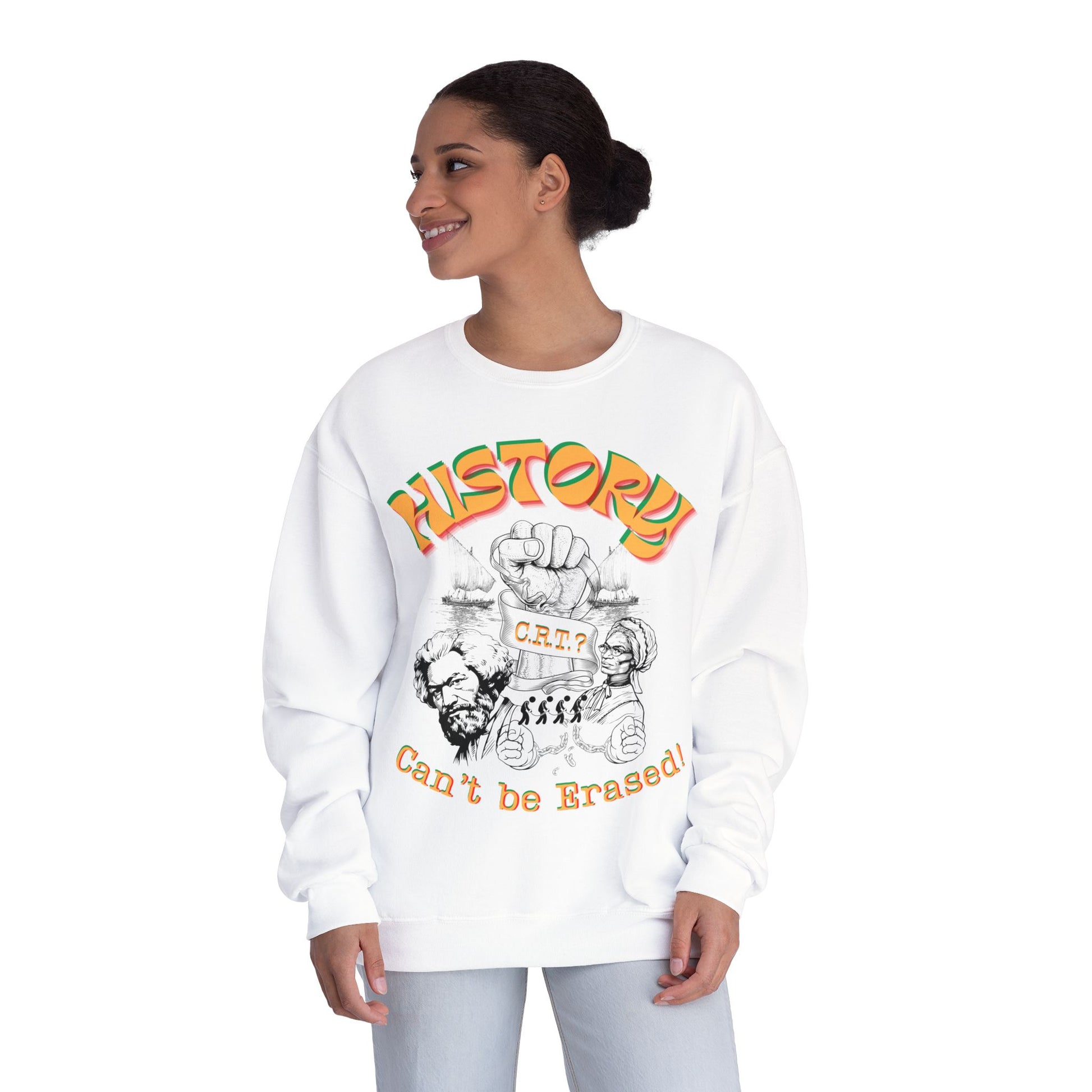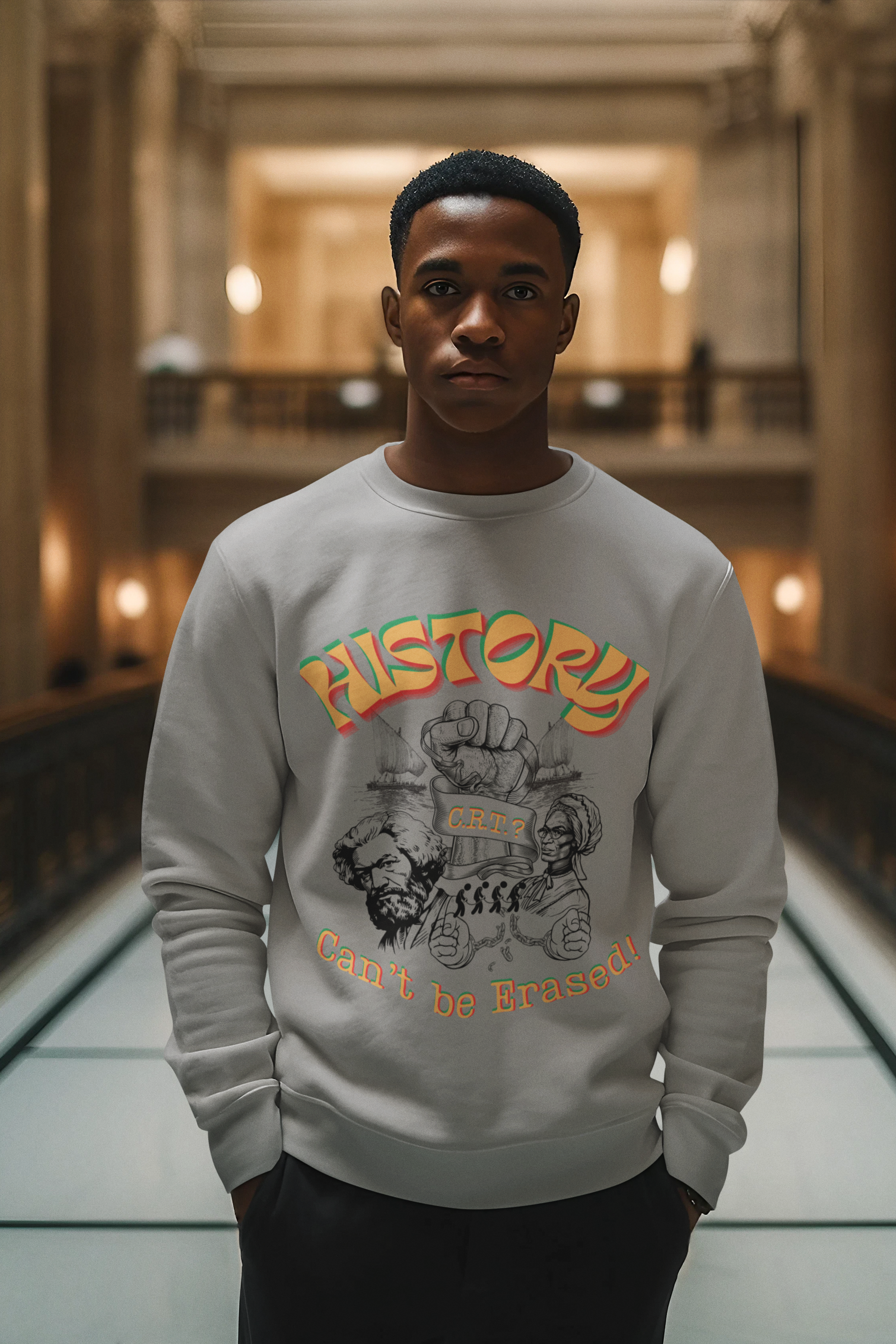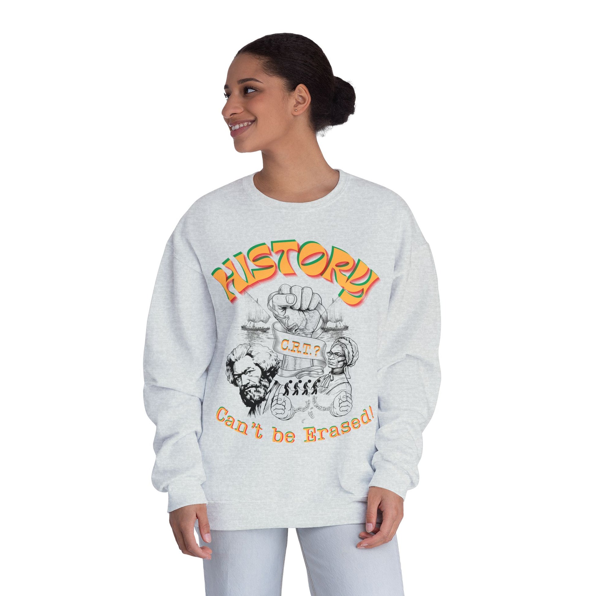 "History Can't Be Erased" Unisex NuBlend® Crewneck Sweatshirt, CRT Cannot Exist History is Real, Pro-History Sweatshirt, Juneteenth Sweatshirts