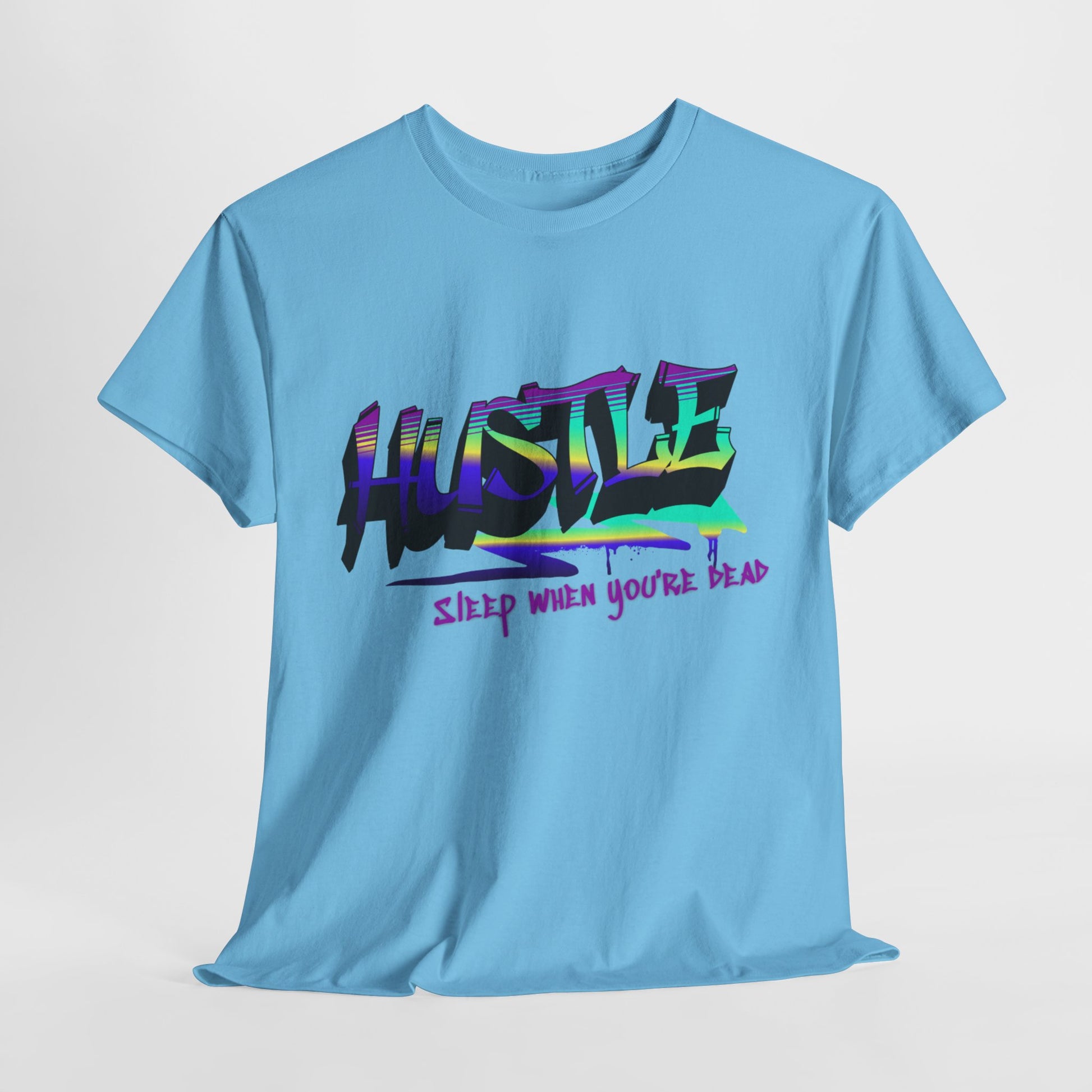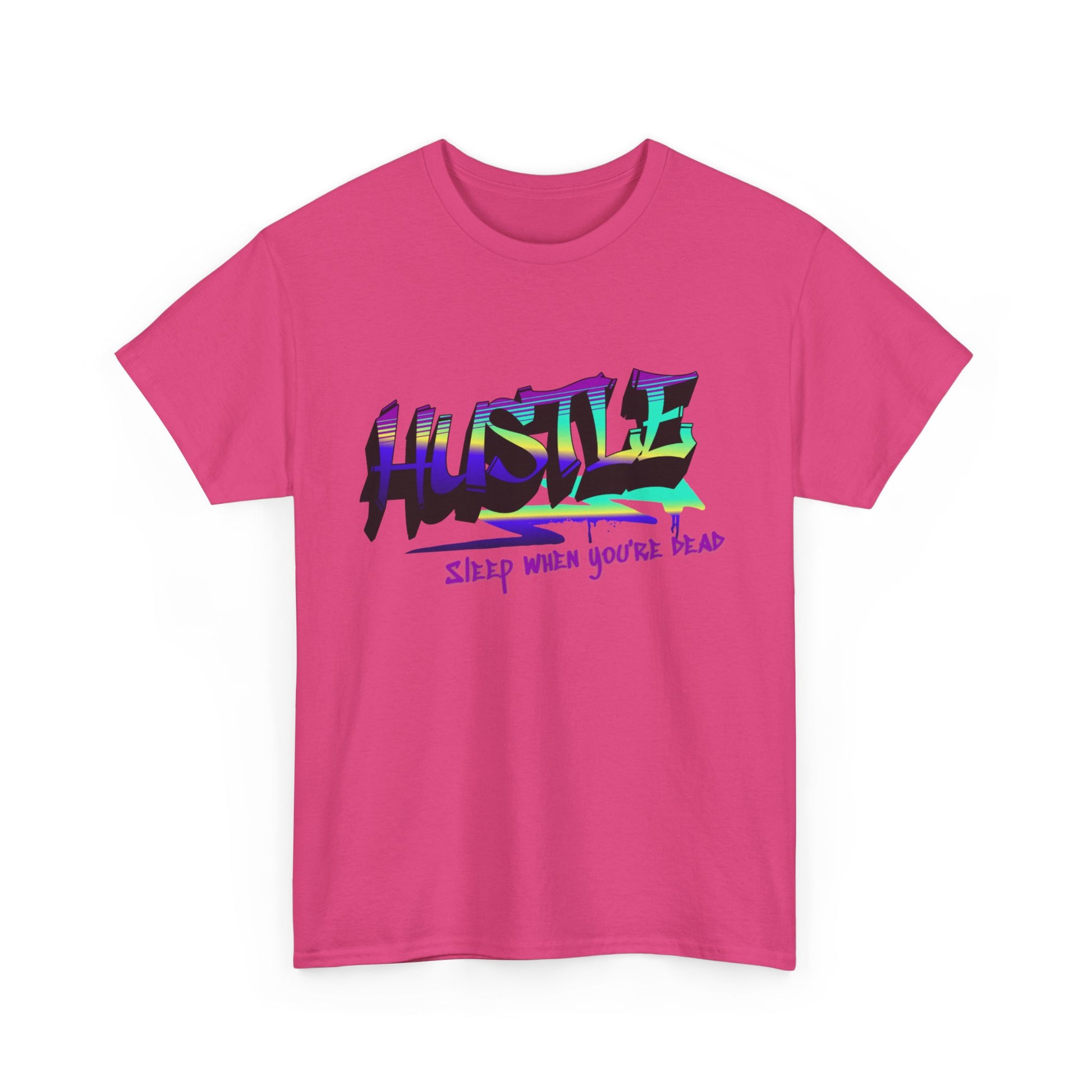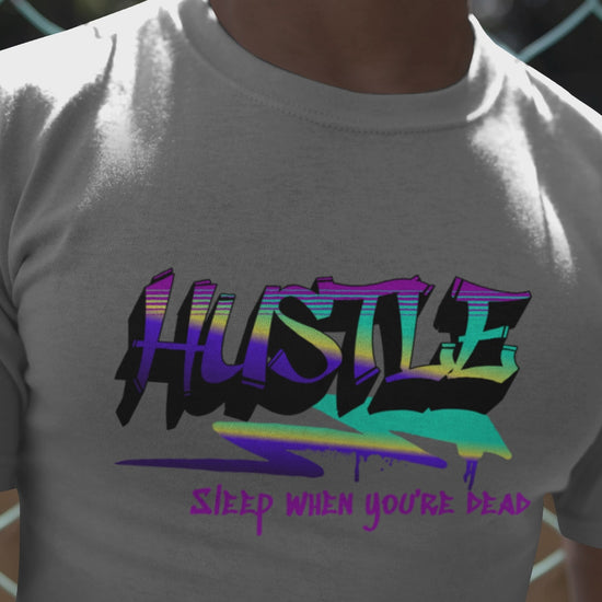 Push boundaries with this bold and energetic "Hustle" design, paired with the unapologetic slogan "Sleep When You're Dead." This motivational tee features a vibrant gradient and graffiti-inspired typography, this artwork radiates determination and ambition. It’s a must-have for entrepreneurs, go-getters, and anyone chasing their dreams with relentless passion. Make a statement and inspire others to embrace the hustle!