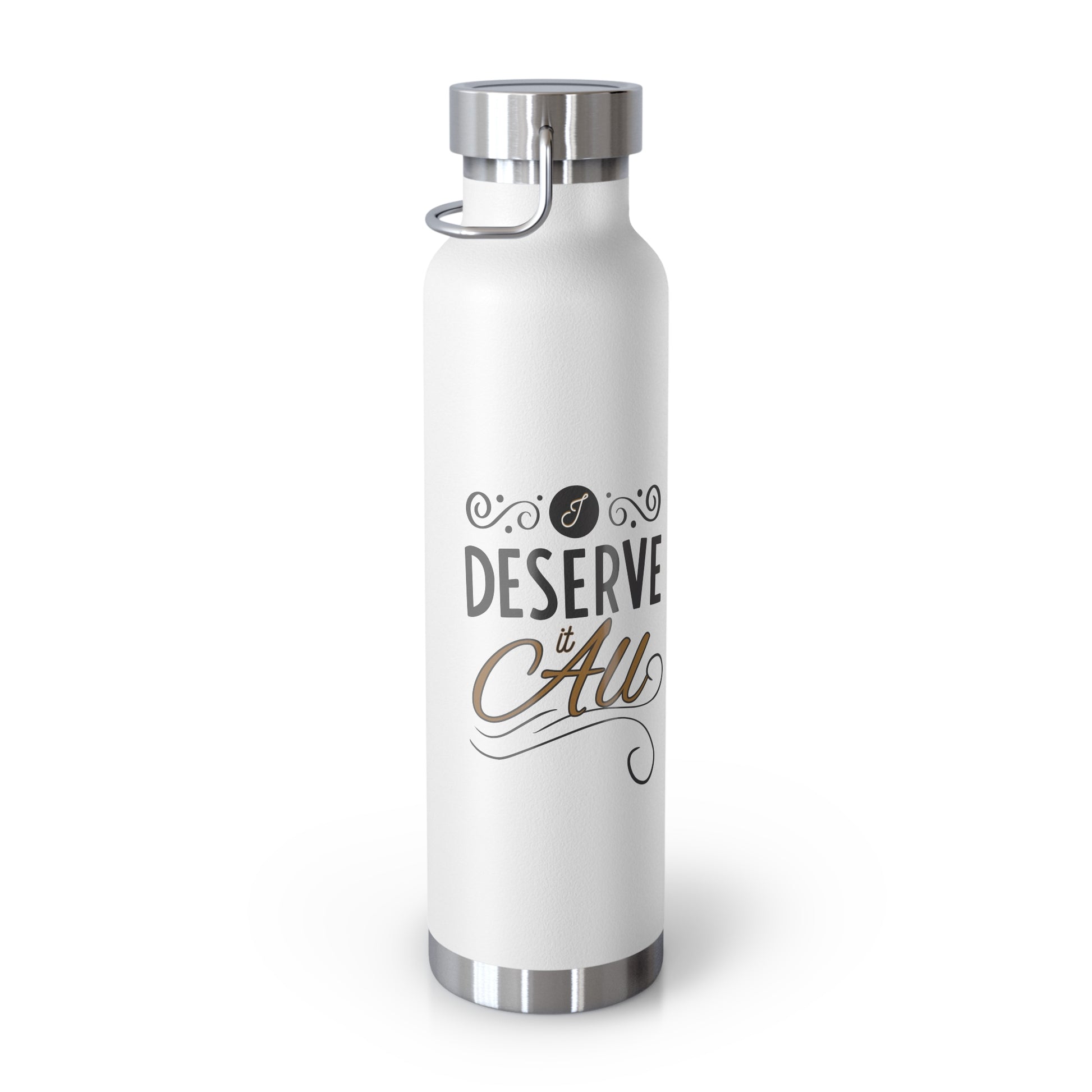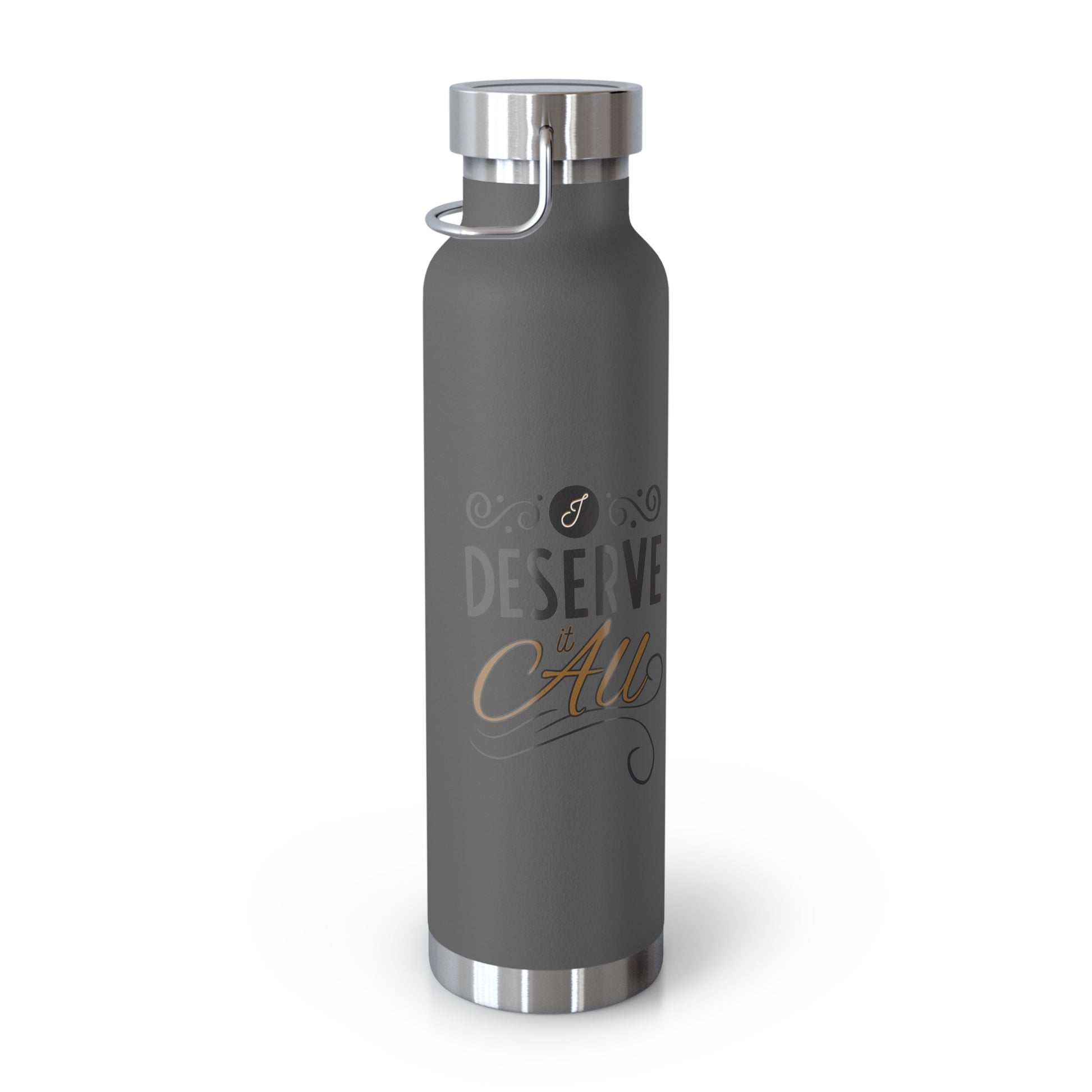 "I Deserve It All" Copper Vacuum Insulated Bottle, 22oz, Inspirational Lyrics from Kendrick Lamar Man in the Garden, Kendrick Lamar Fan Merchandise