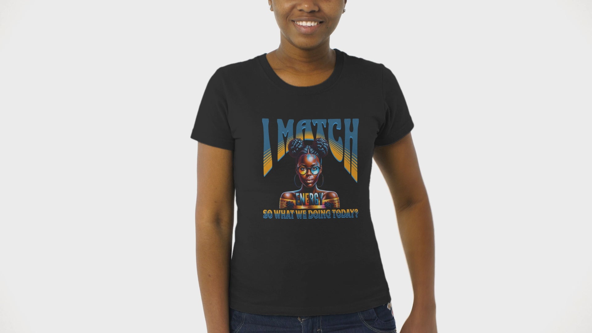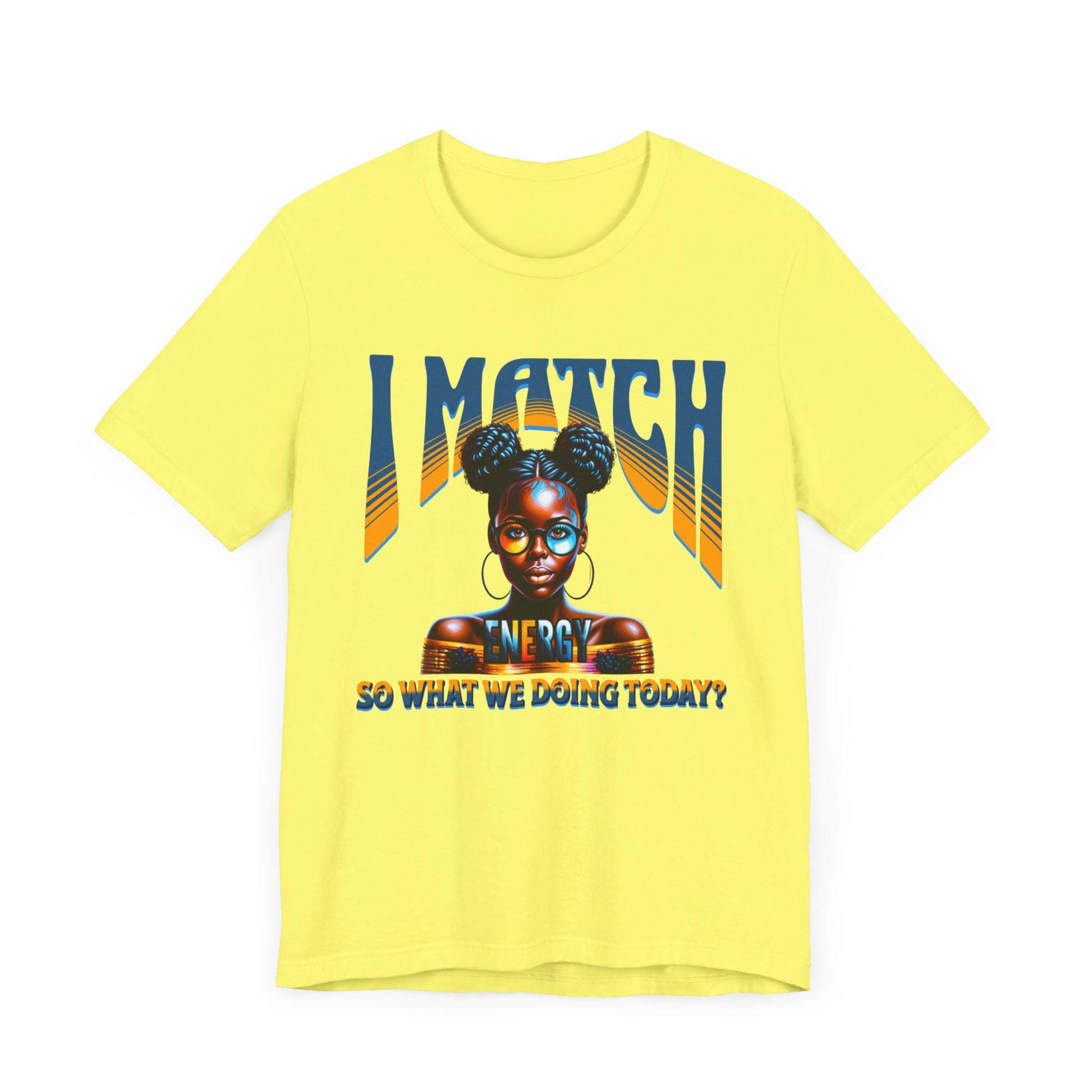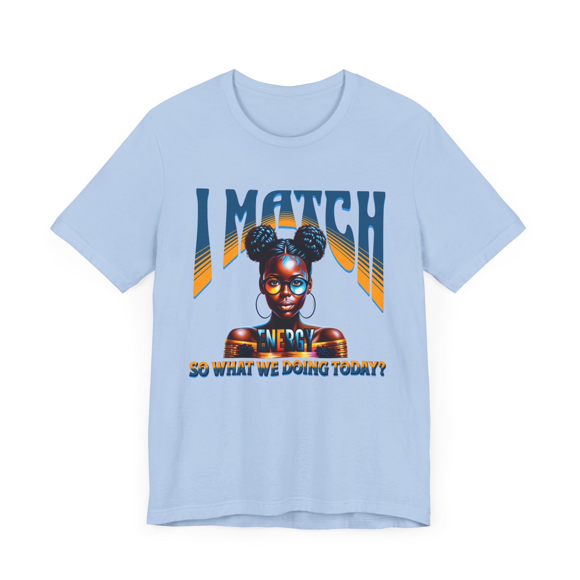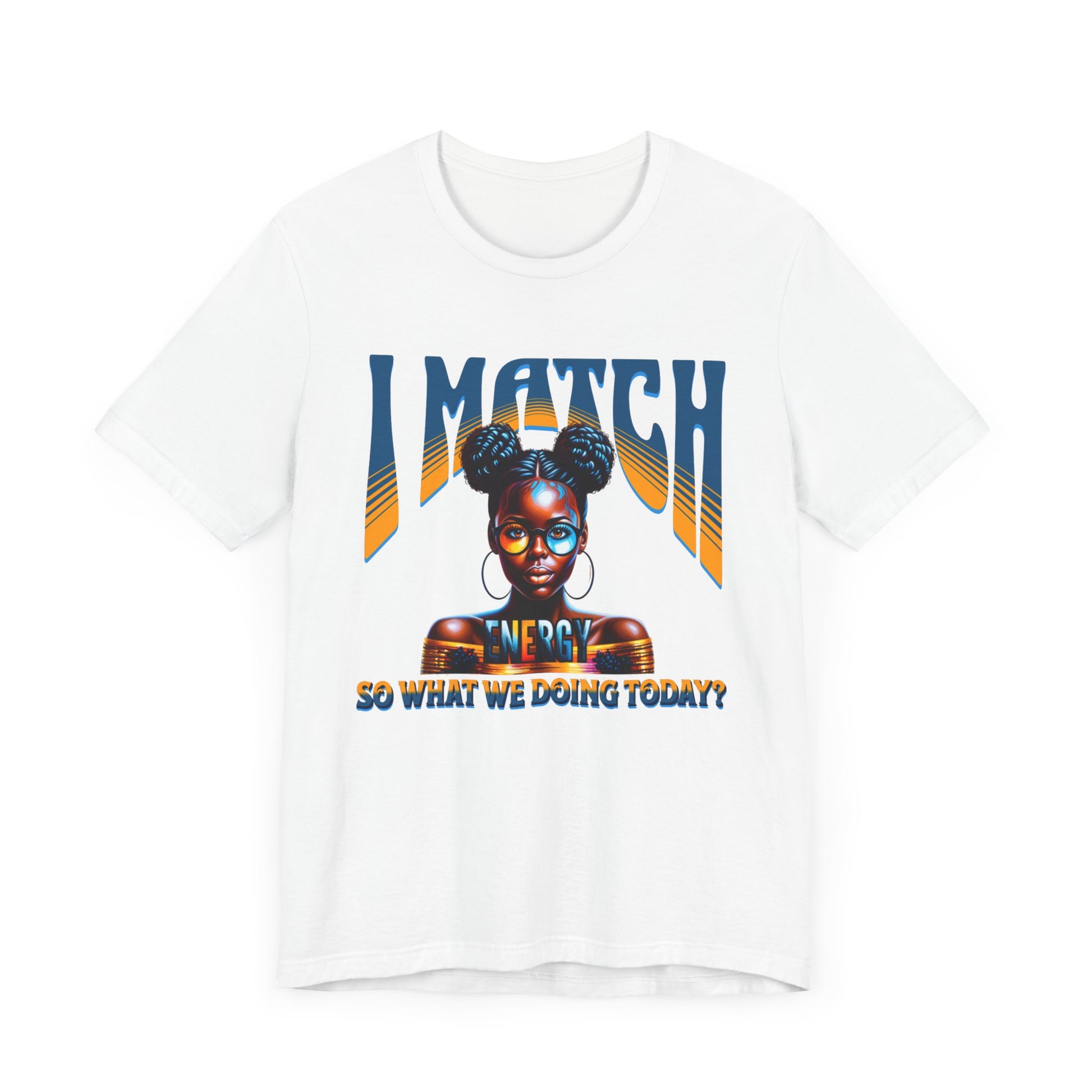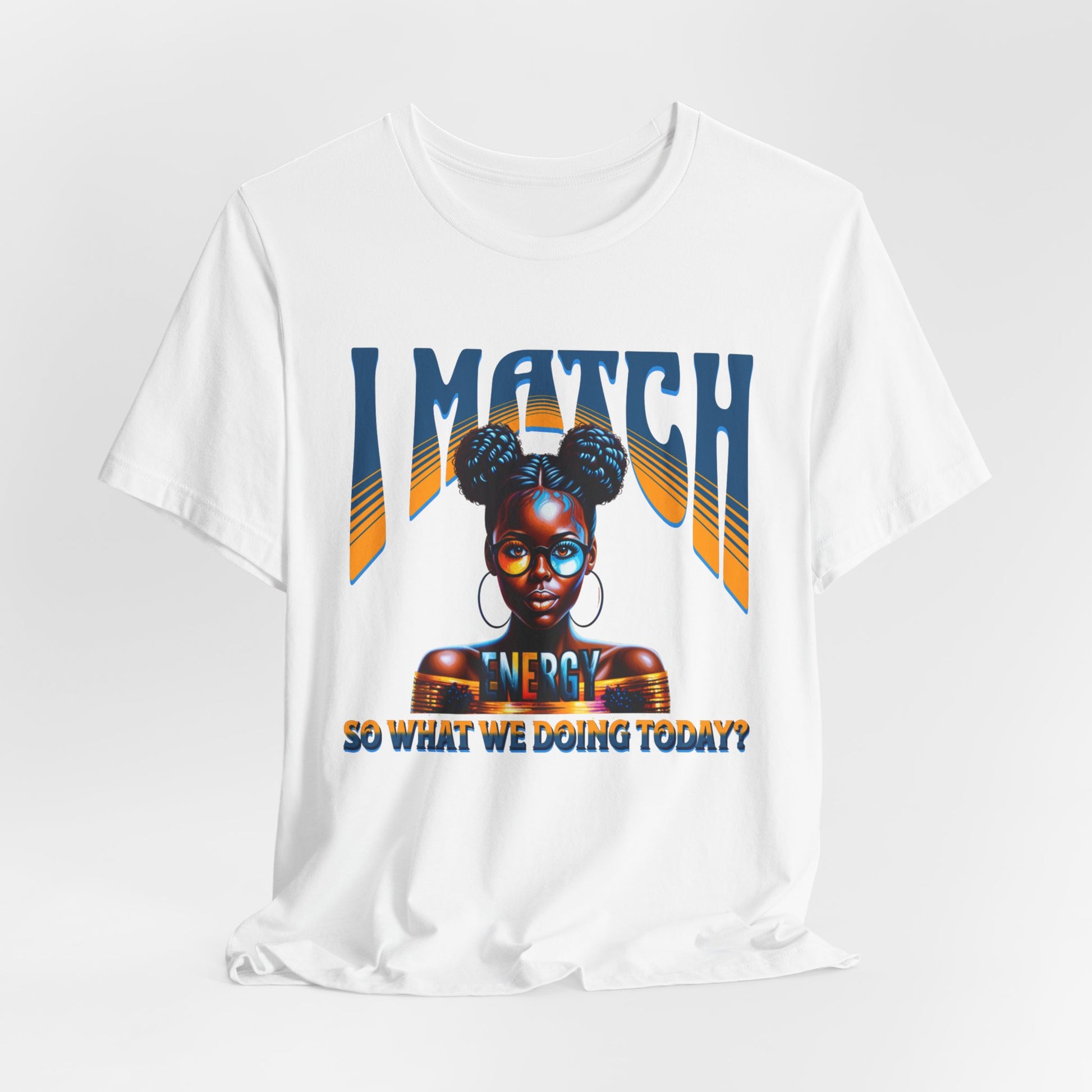 Step into your power and let the world know you’re all about reciprocation with this bold and stylish design, "I Match Energy, So, what are we doing today?" Featuring a striking illustration of a confident woman with afro puffs, gold hoops, and chic glasses, this design radiates unapologetic confidence and self-awareness. The bold typography paired with her poised expression makes it clear: the energy you bring is the energy you’ll get.
