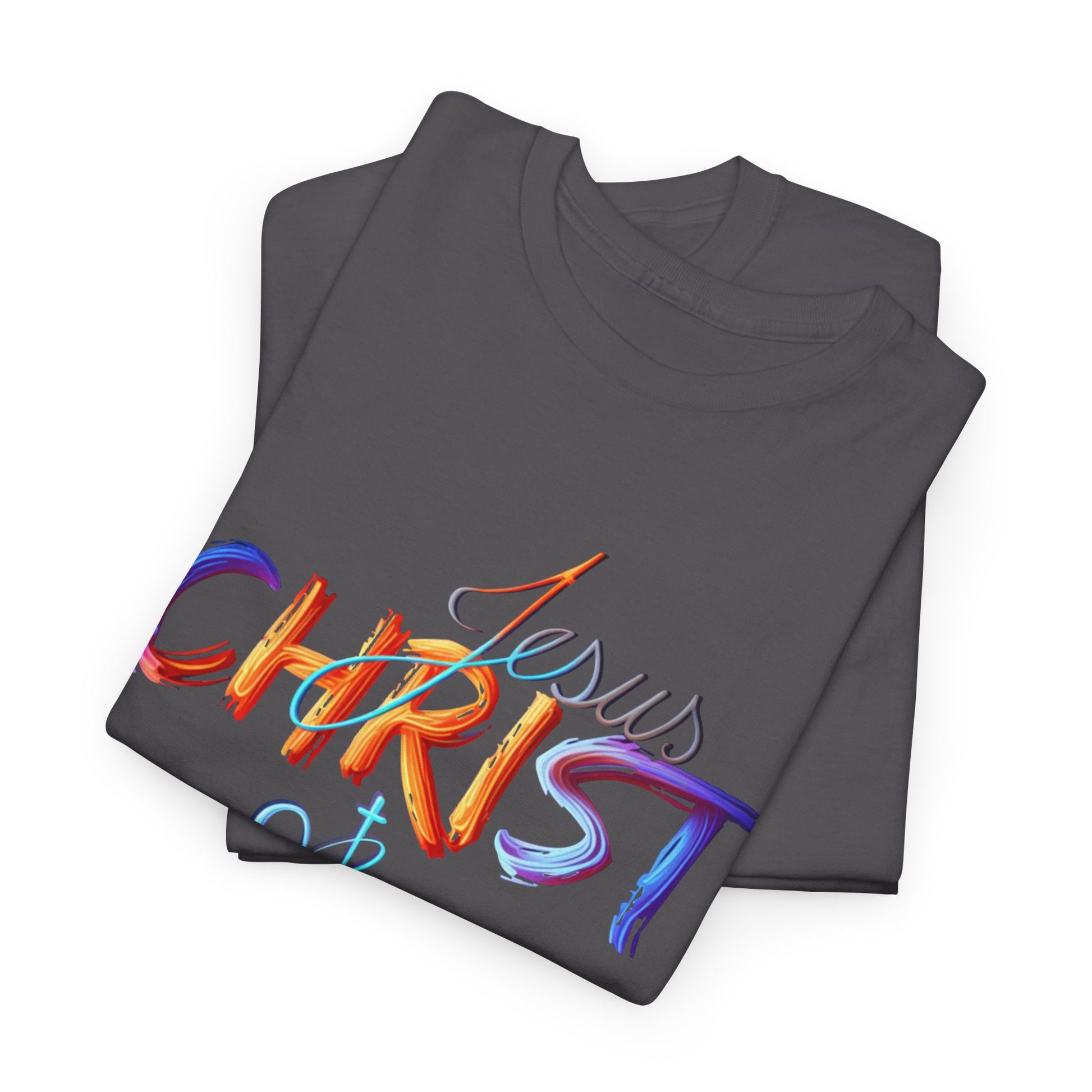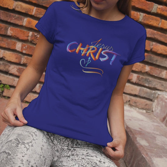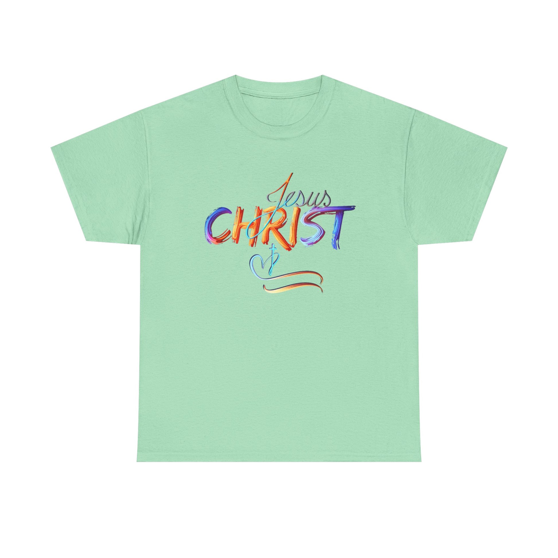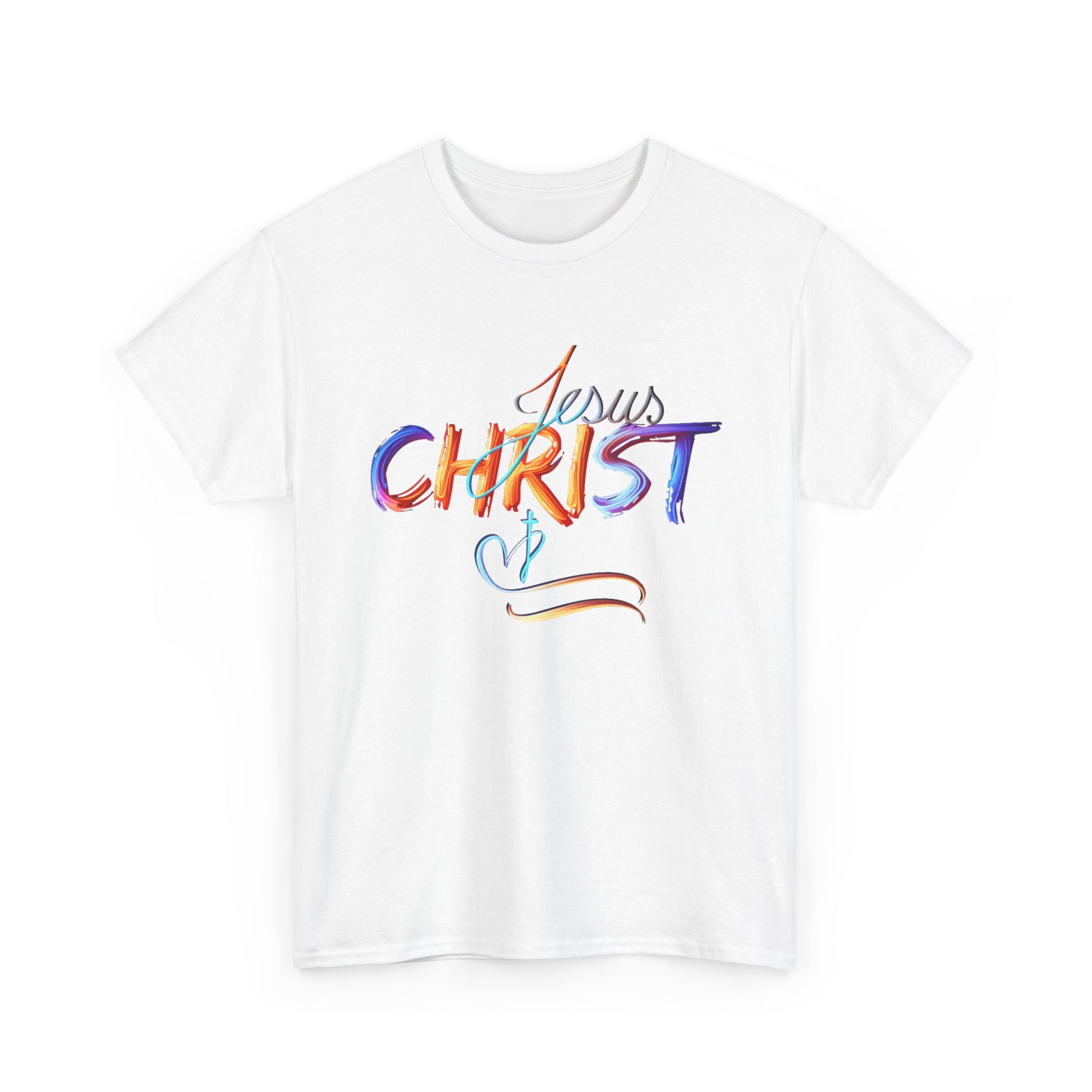 This vibrant, hand-painted style design beautifully showcases the name "Jesus Christ" in bold, colorful strokes, evoking a sense of divine inspiration and artistic expression. The subtle cross and heart detail symbolize love, faith, and spiritual devotion. Perfect for faith-based apparel, accessories, and home decor, this design serves as a powerful statement of belief and inspiration for daily life.