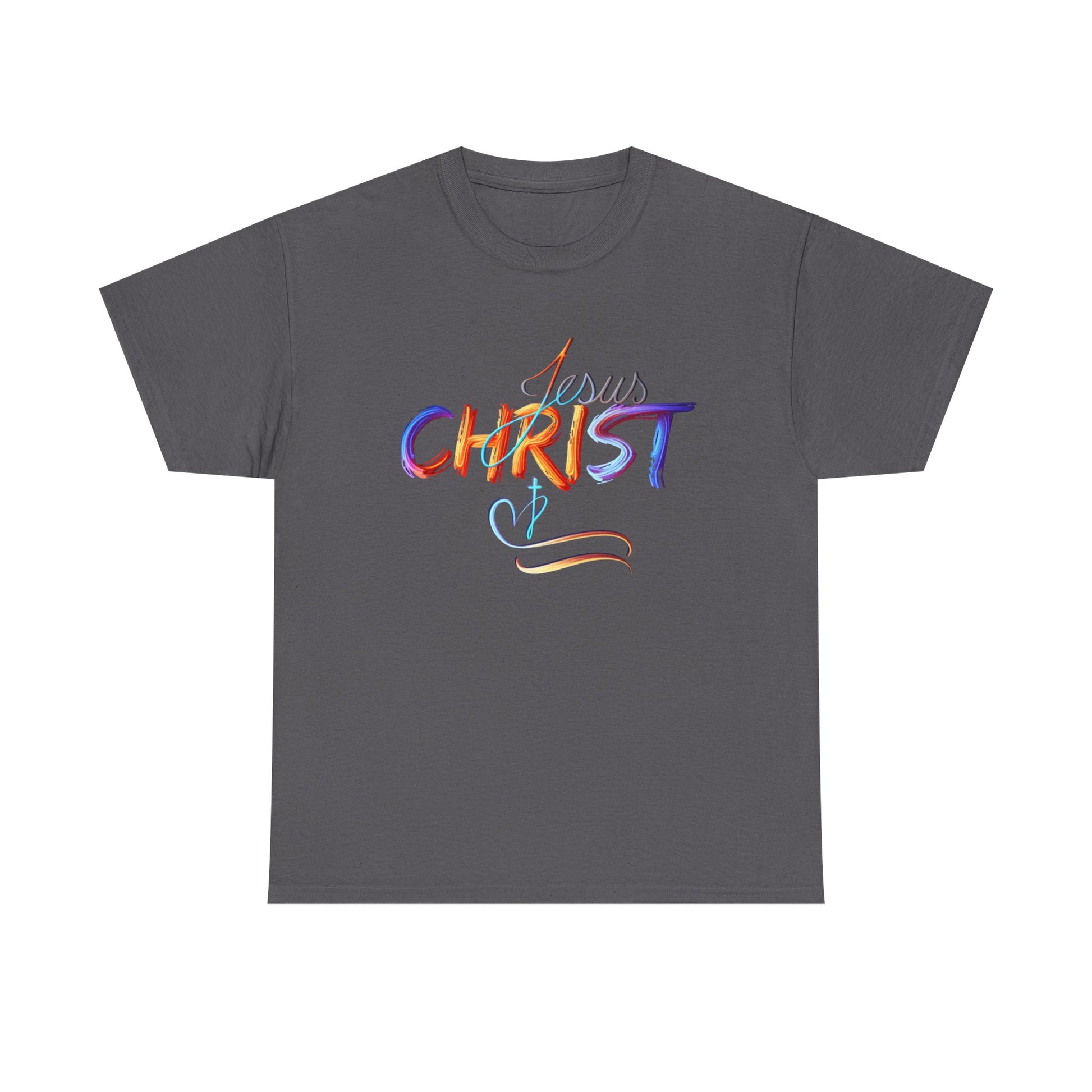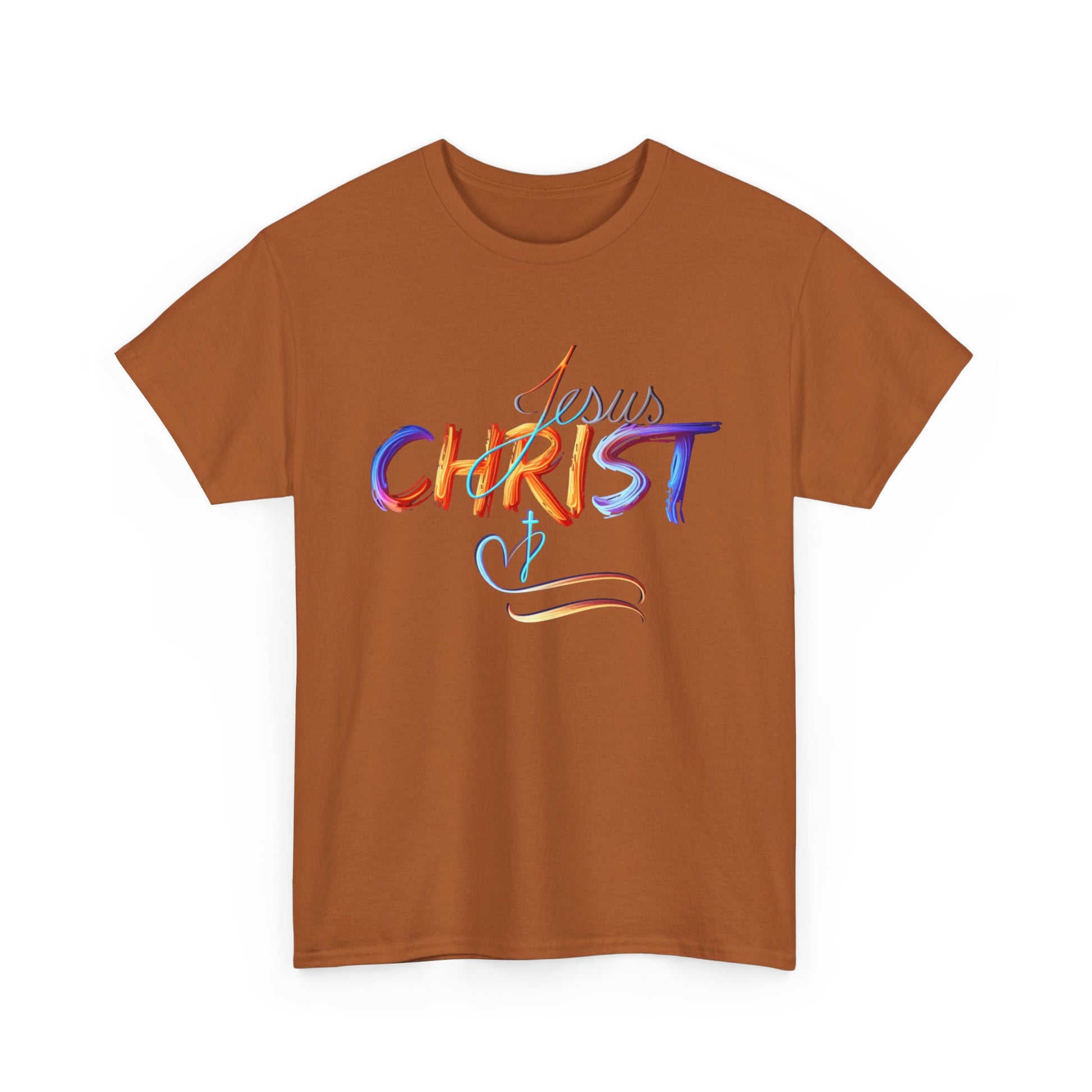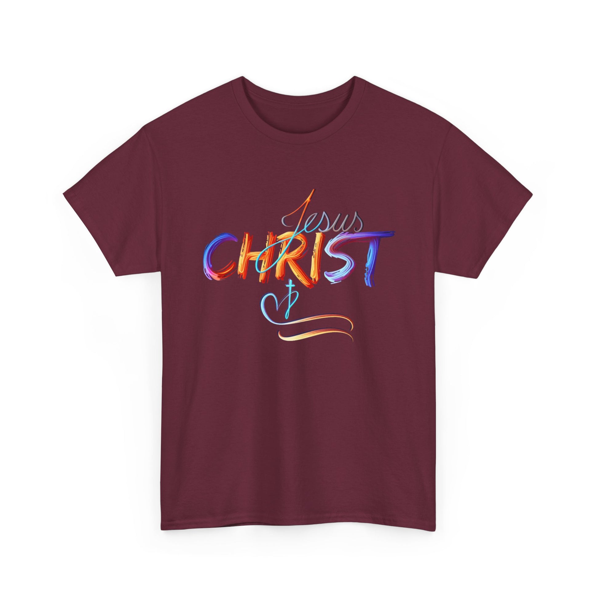 This vibrant, hand-painted style design beautifully showcases the name "Jesus Christ" in bold, colorful strokes, evoking a sense of divine inspiration and artistic expression. The subtle cross and heart detail symbolize love, faith, and spiritual devotion. Perfect for faith-based apparel, accessories, and home decor, this design serves as a powerful statement of belief and inspiration for daily life.