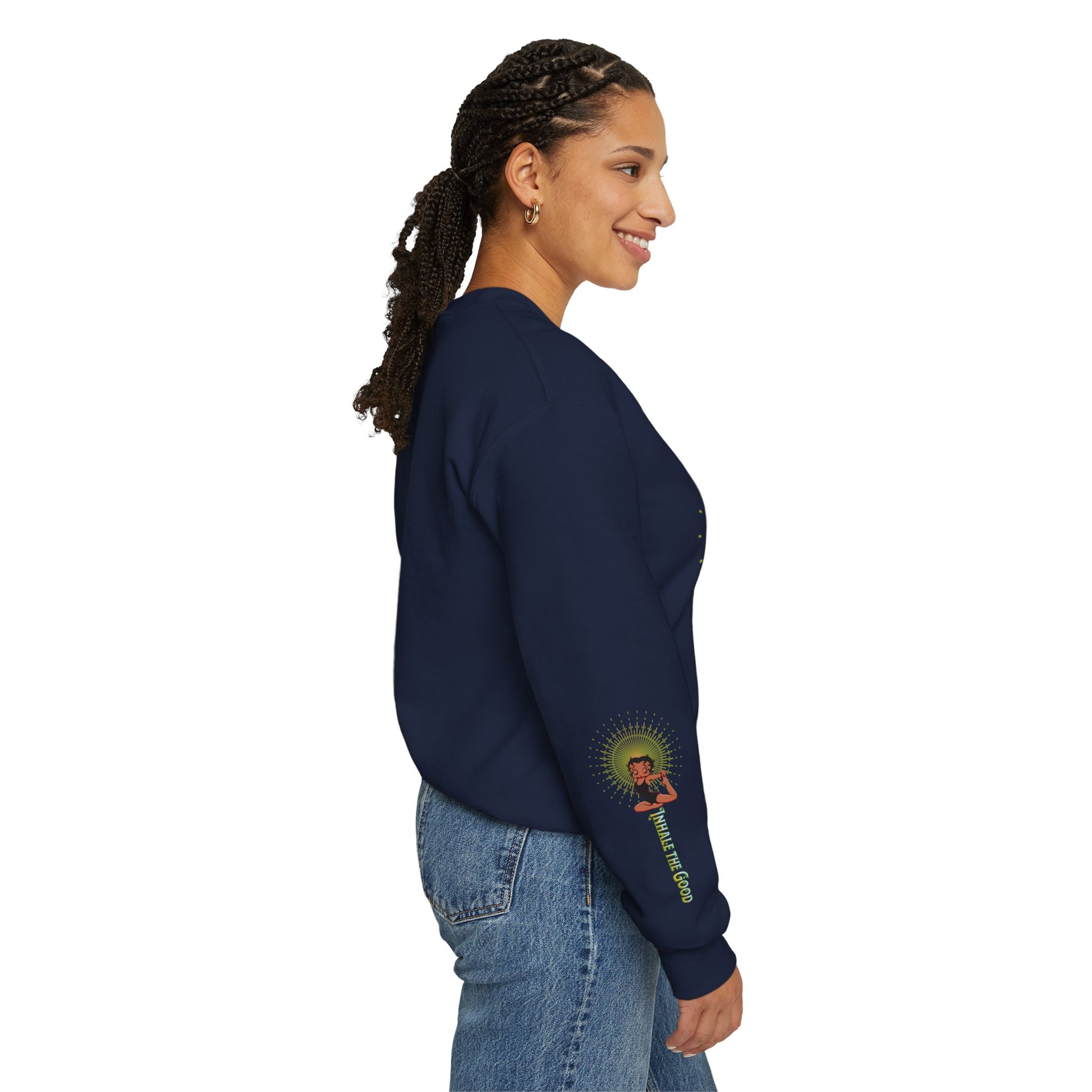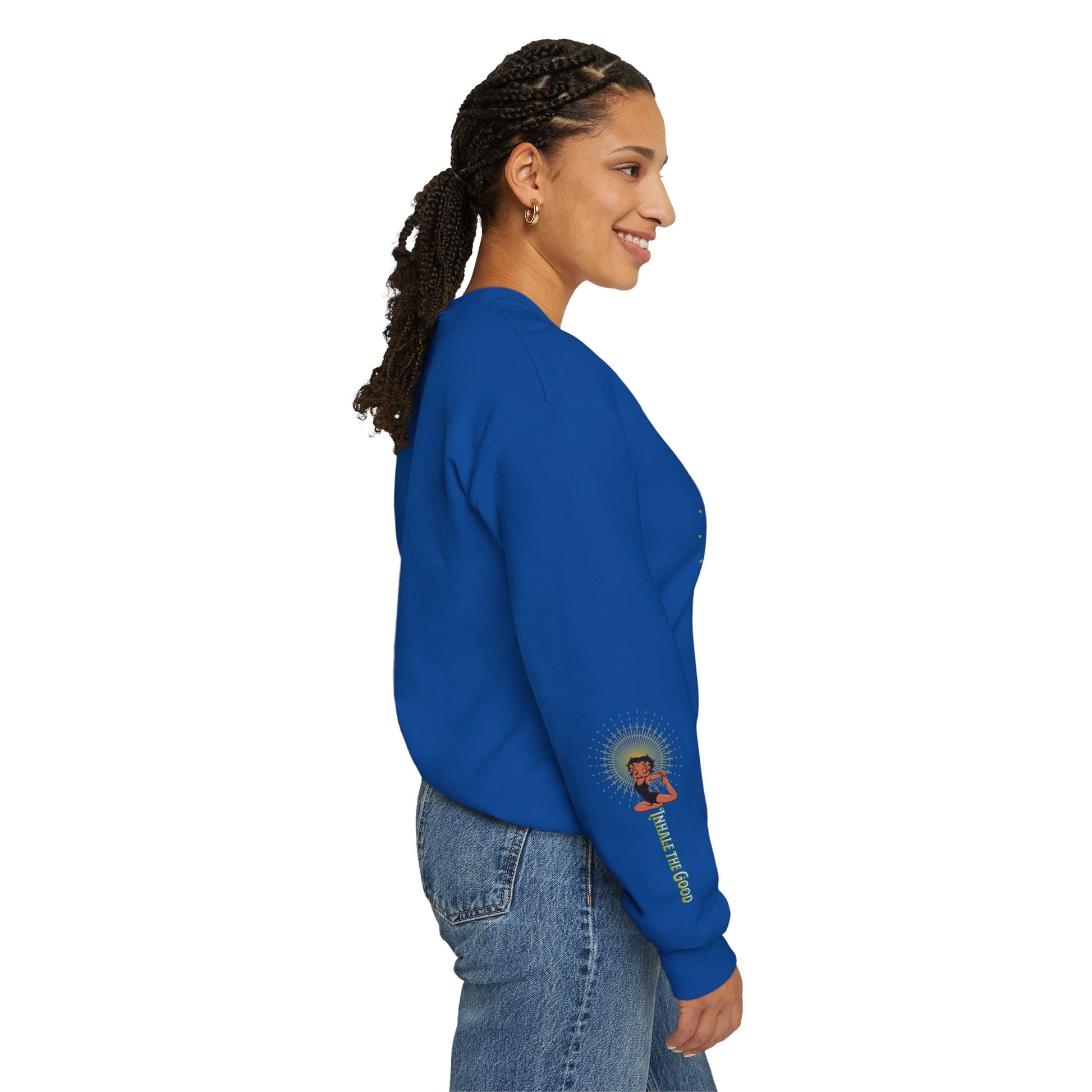 Embrace comfort and style with this Betty Boop Heavy Blend™ Crewneck Sweatshirt, designed to bring warmth and relaxation into your everyday life. Featuring a playful design that inspires a sense of calm, this sweatshirt is perfect for cozy nights in, casual outings, or lounging at home. Its classic fit and soft fabric make it an ideal choice for anyone seeking both style and comfort. This product resonates with yoga enthusiasts, mindfulness practitioners, or anyone looking to add a touch of chill vibes to their wardrobe. Perfect for holidays like Thanksgiving, casual gatherings, or self-care days, this sweatshirt is sure to enhance your laid-back aesthetic throughout the year. Matching leggings sold separately.