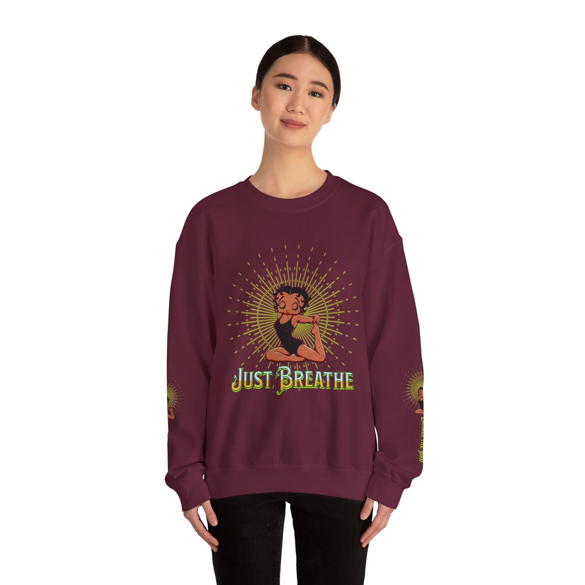 Just Breathe Crewneck Yoga Inspired Sweatshirt, Betty Boop Yoga Sweatshirt, Betty Boop Activewear Shirt,