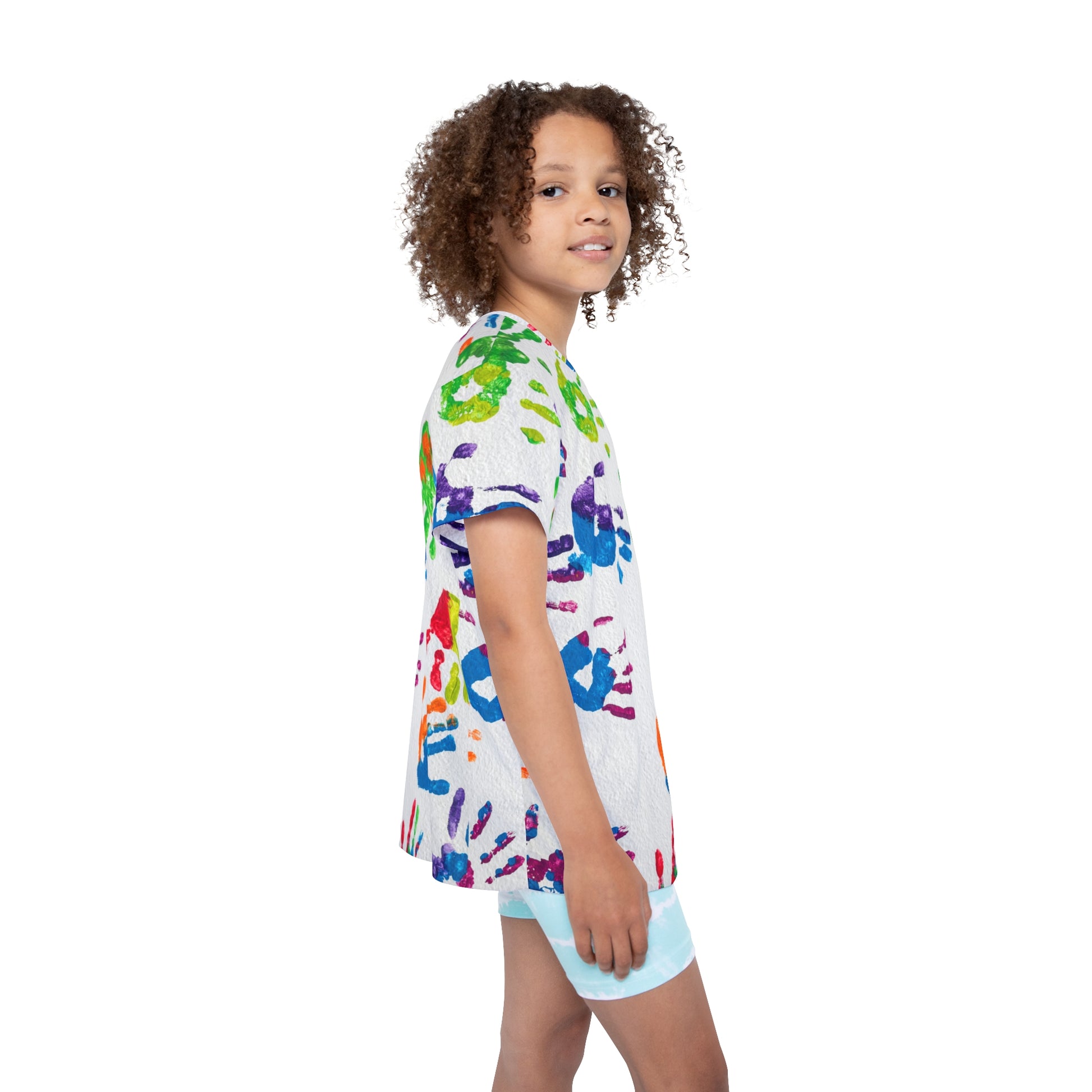 Kids Finger Paint Print Sports Jersey, Unique Colorful Shirt for Boys and Girls, Fingerpaint Children's Shirts,