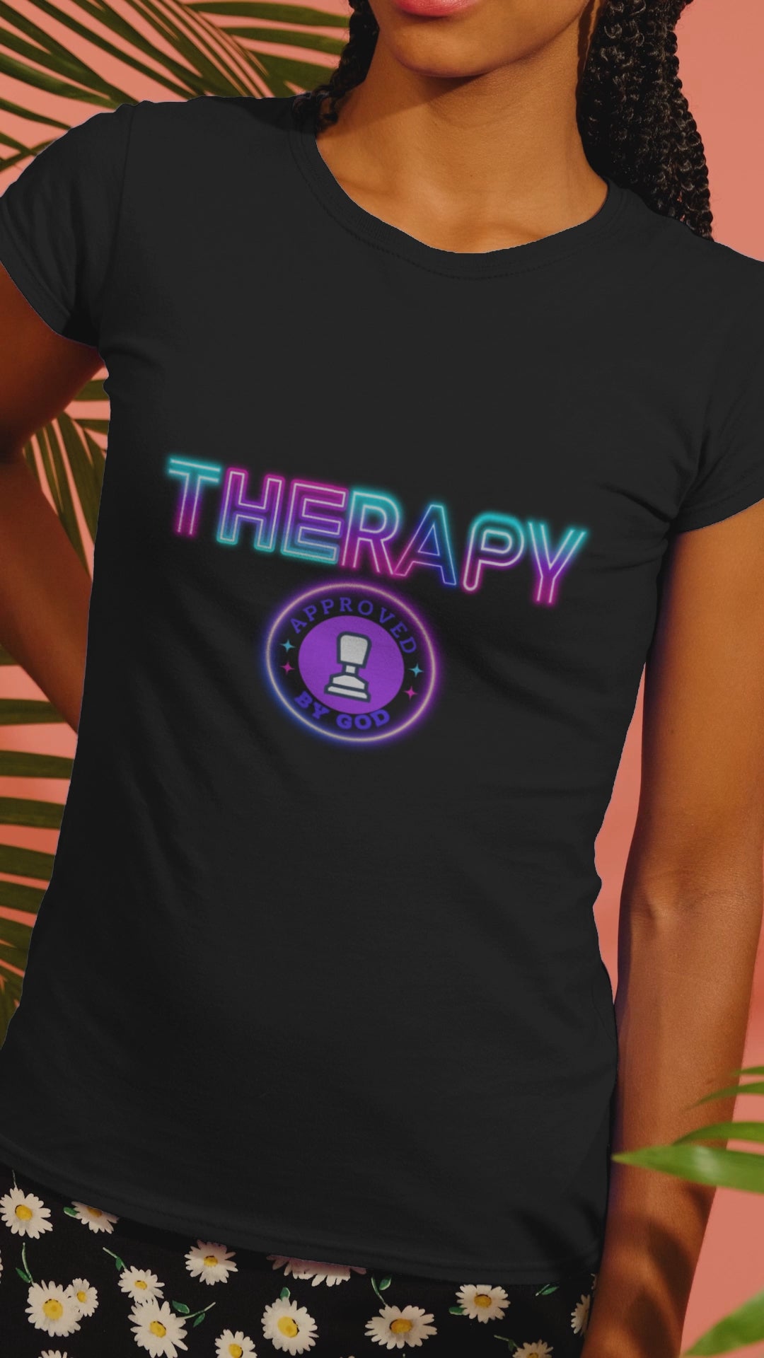 Therapy Works and is Approved by God. This mental health design encourages you to seek support for your mental health while maintaining your faith. It challenges the stigma around mental health and encourages you to prioritize your well-being.
