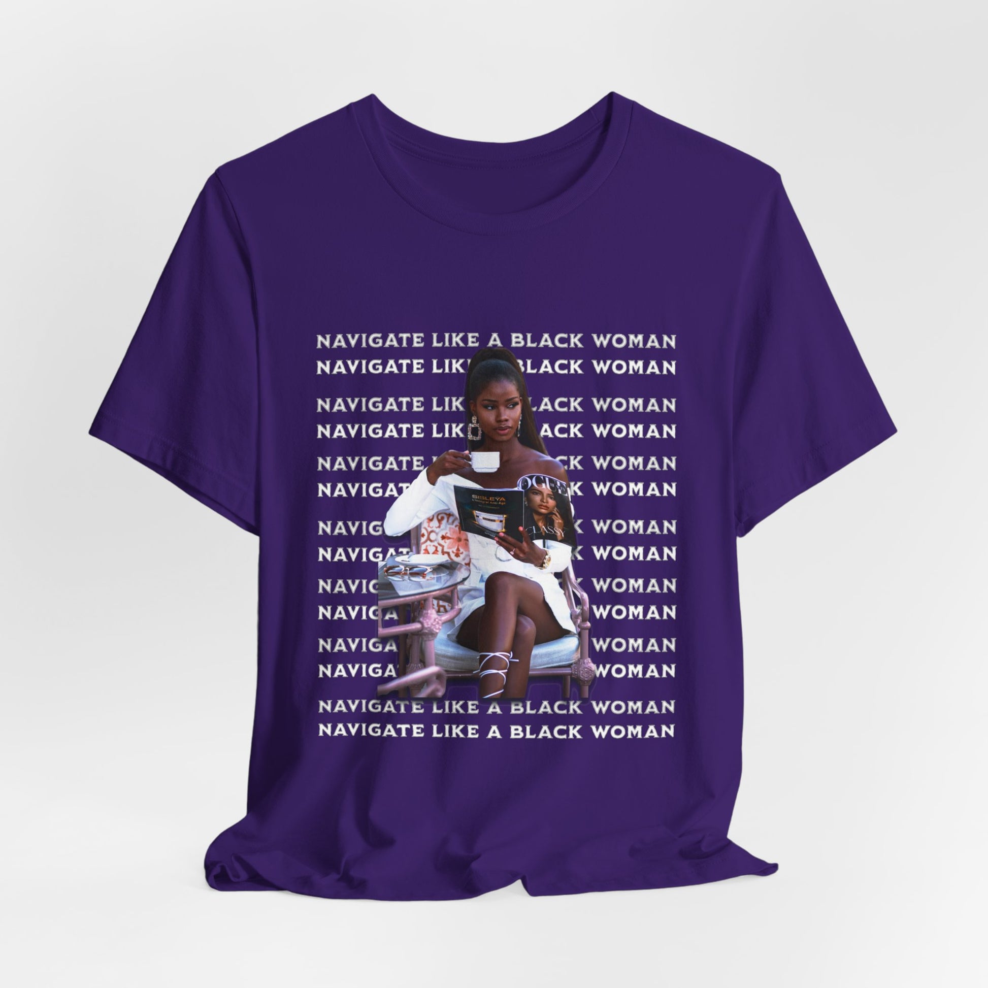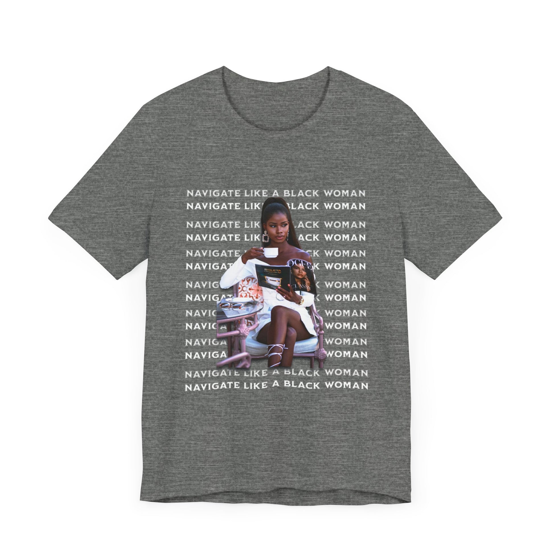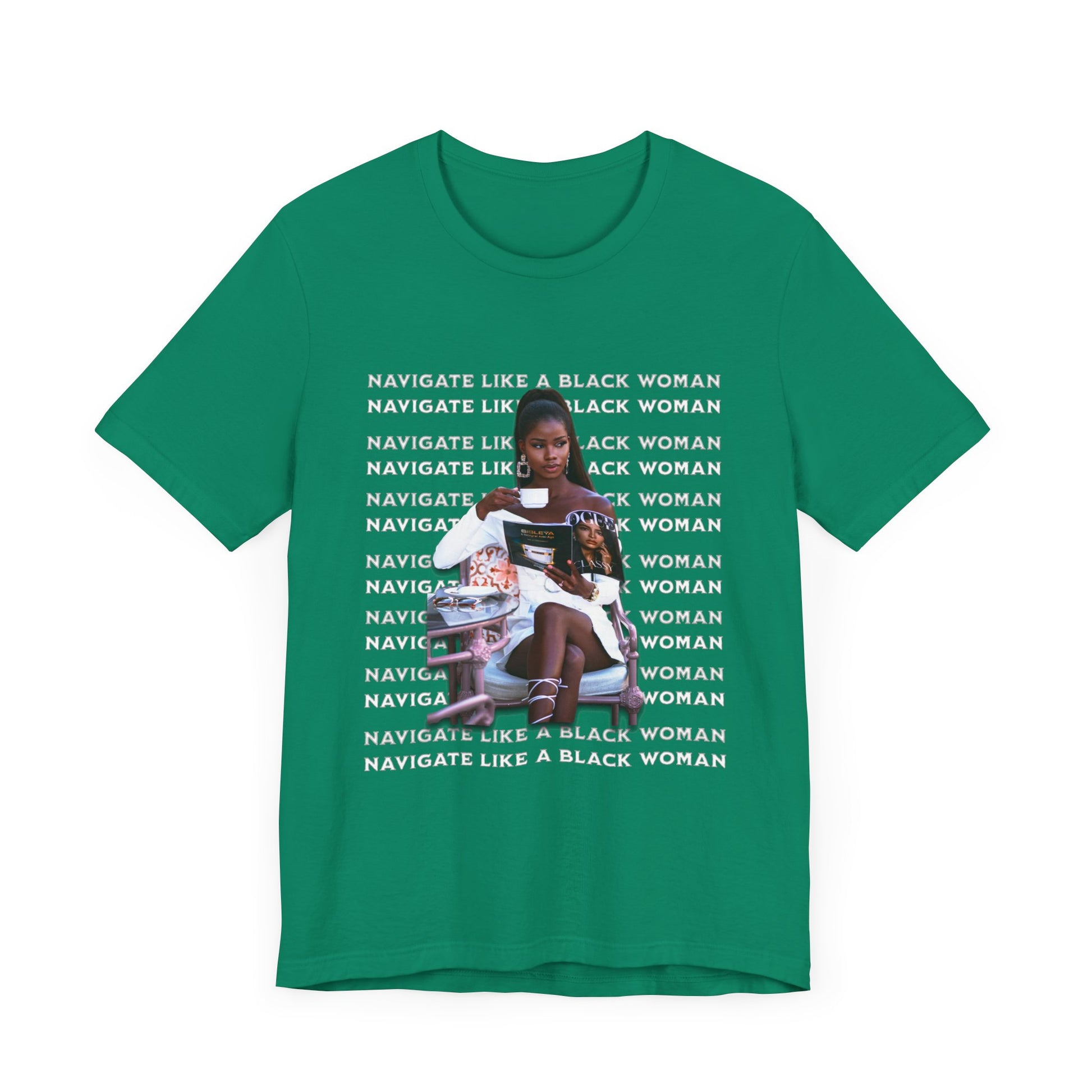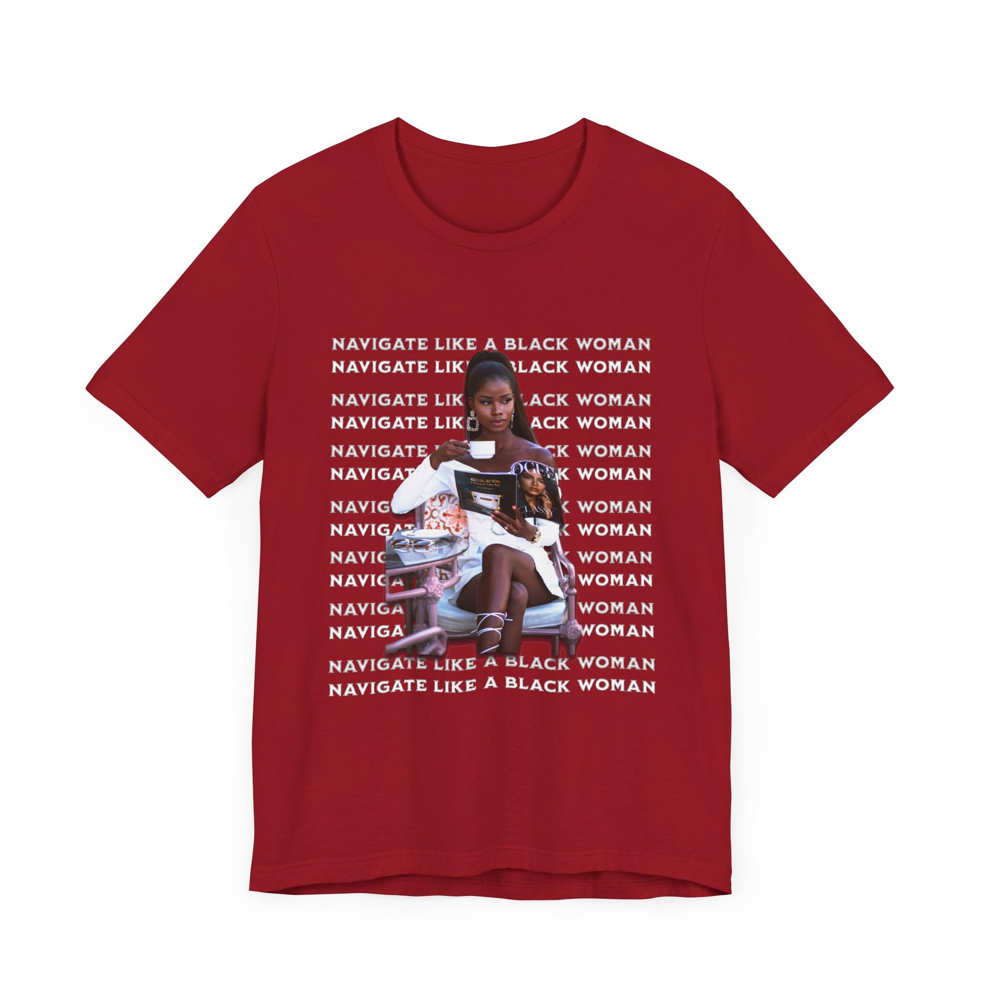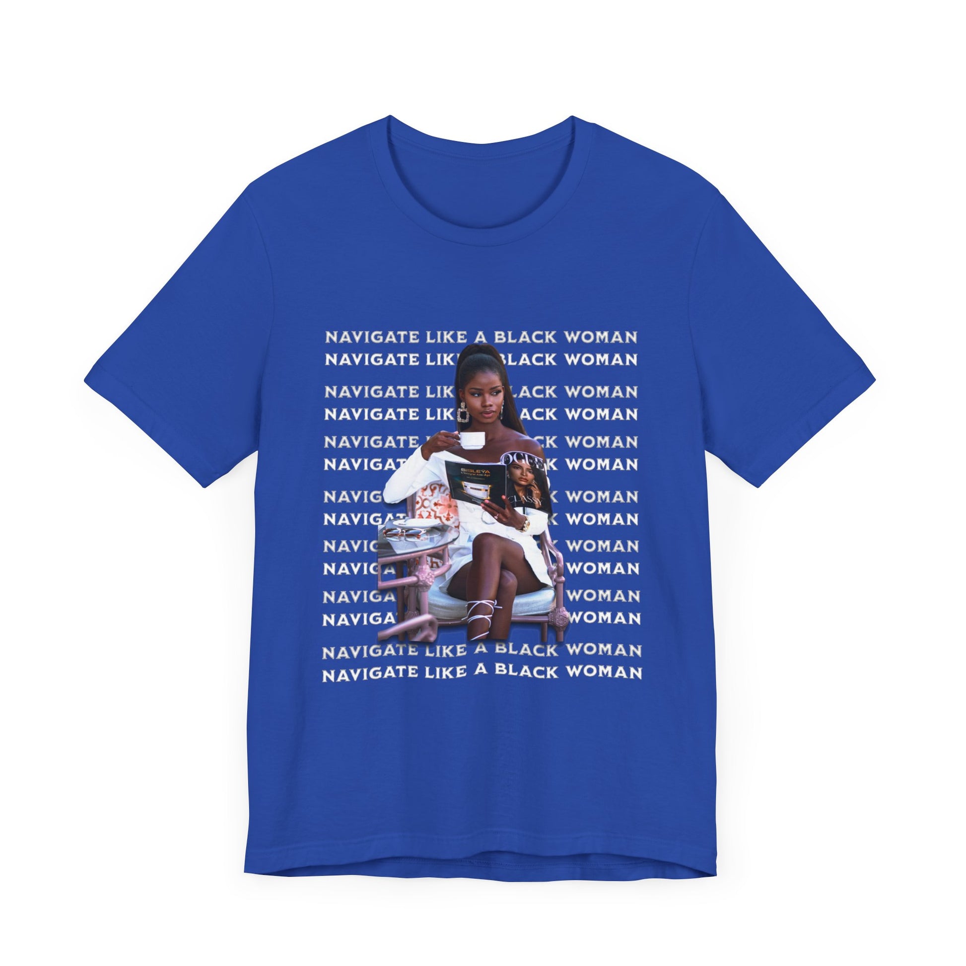 Celebrate strength, elegance, and resilience with this striking design. Featuring a confident Black woman sipping tea, reading a fashion magazine, and radiating class, this artwork is framed by the powerful phrase "Navigate Like a Black Woman." This design is a tribute to Black women navigating life with grace and power. A must-have for those who embrace empowerment and sophistication.