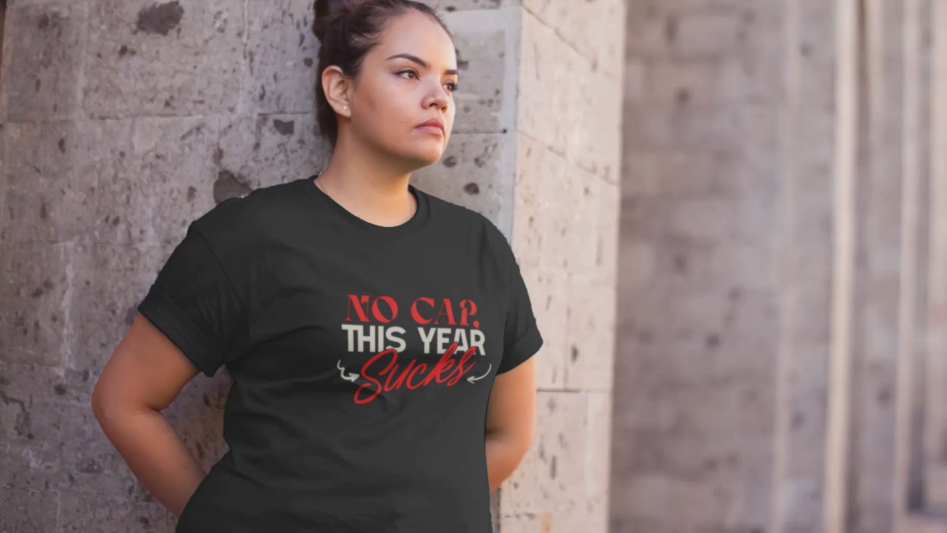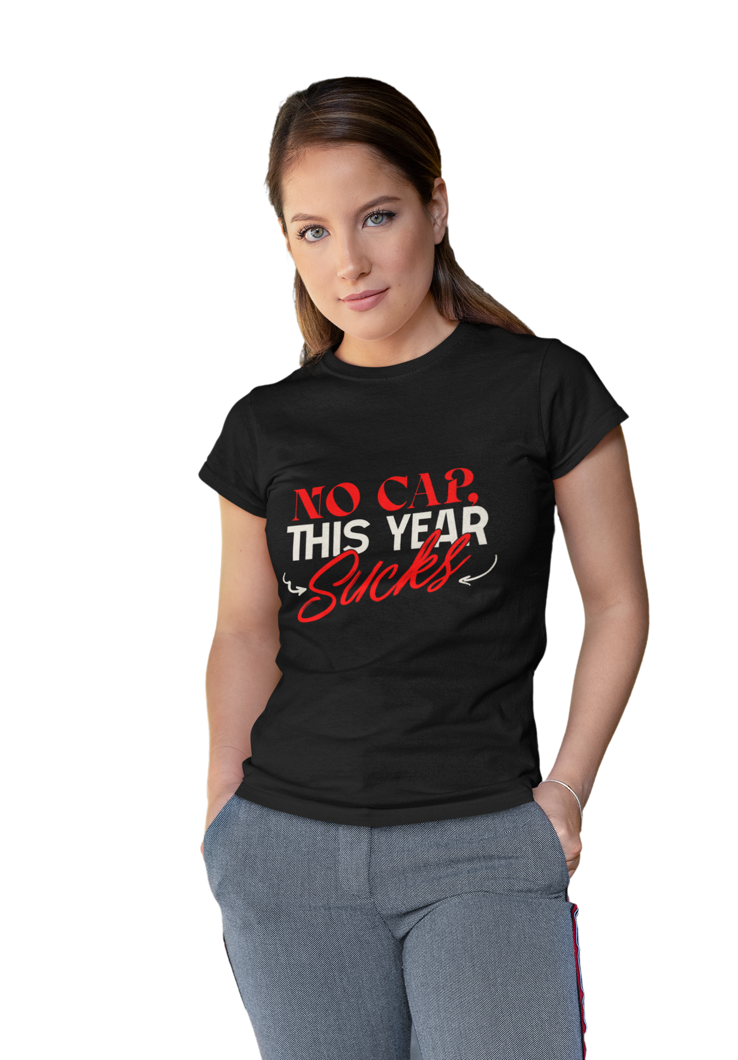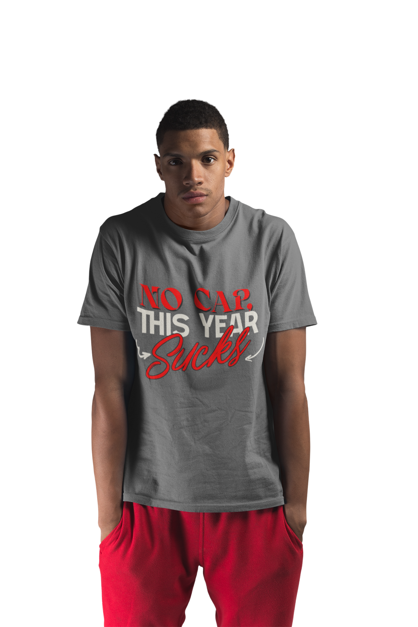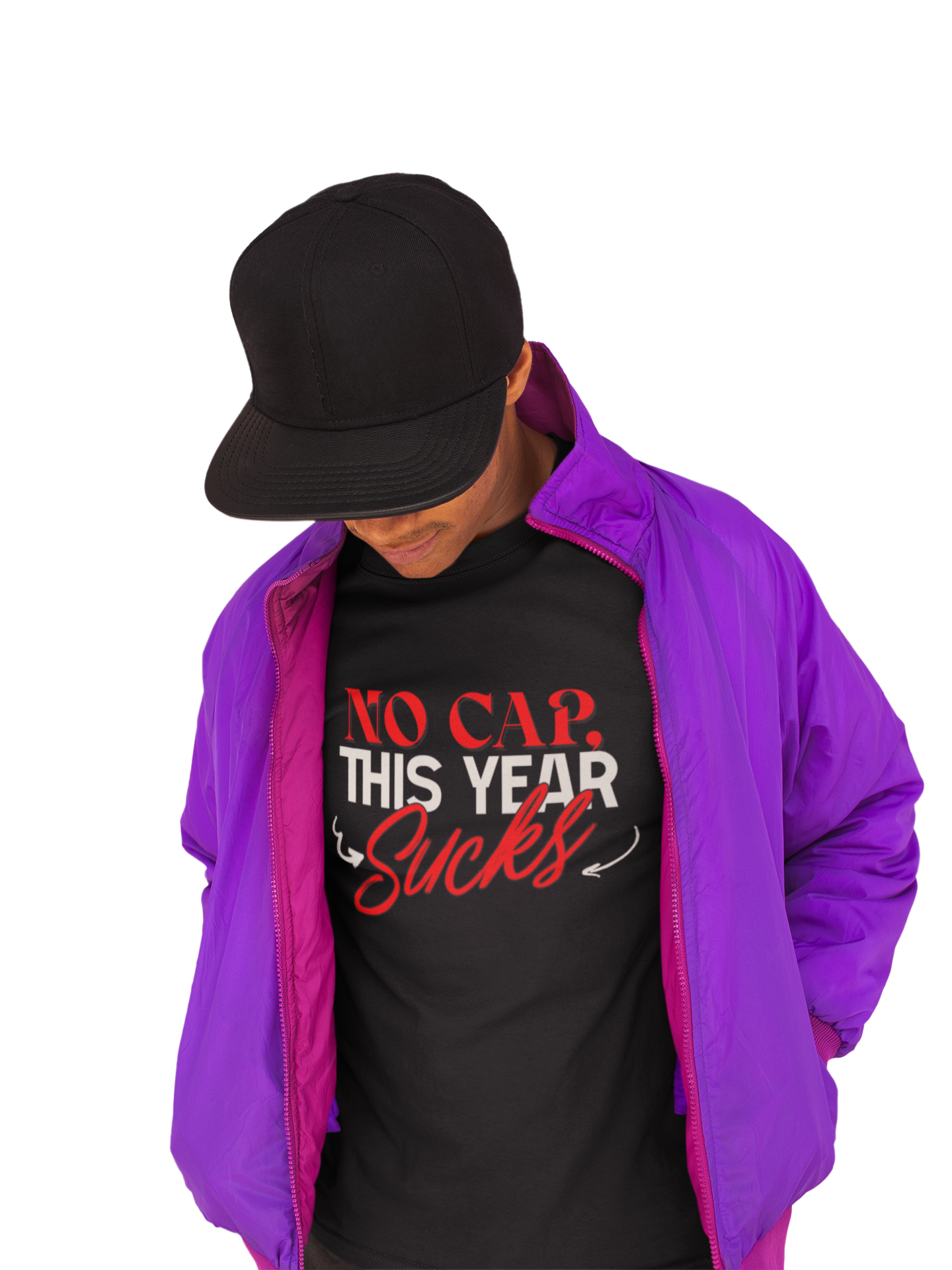 This design captures the raw frustration and exasperation many feel about a particularly challenging year. The phrase "NO CAP. THIS YEAR SUCKS" is boldly displayed, using a mix of fonts to emphasize the bluntness of the message. The demise of America 2025. The phrase "NO CAP" adds a modern, slang-infused touch, signifying honesty and unfiltered feelings. The word "Sucks" is written in a cursive, almost hand-written style, adding a personal and relatable element to the design. The simple, gray background keeps the focus on the message, making it a perfect statement piece for those who want to express their candid feelings about a difficult time. This image offers a relatable and humorous way to acknowledge the challenges of the year.