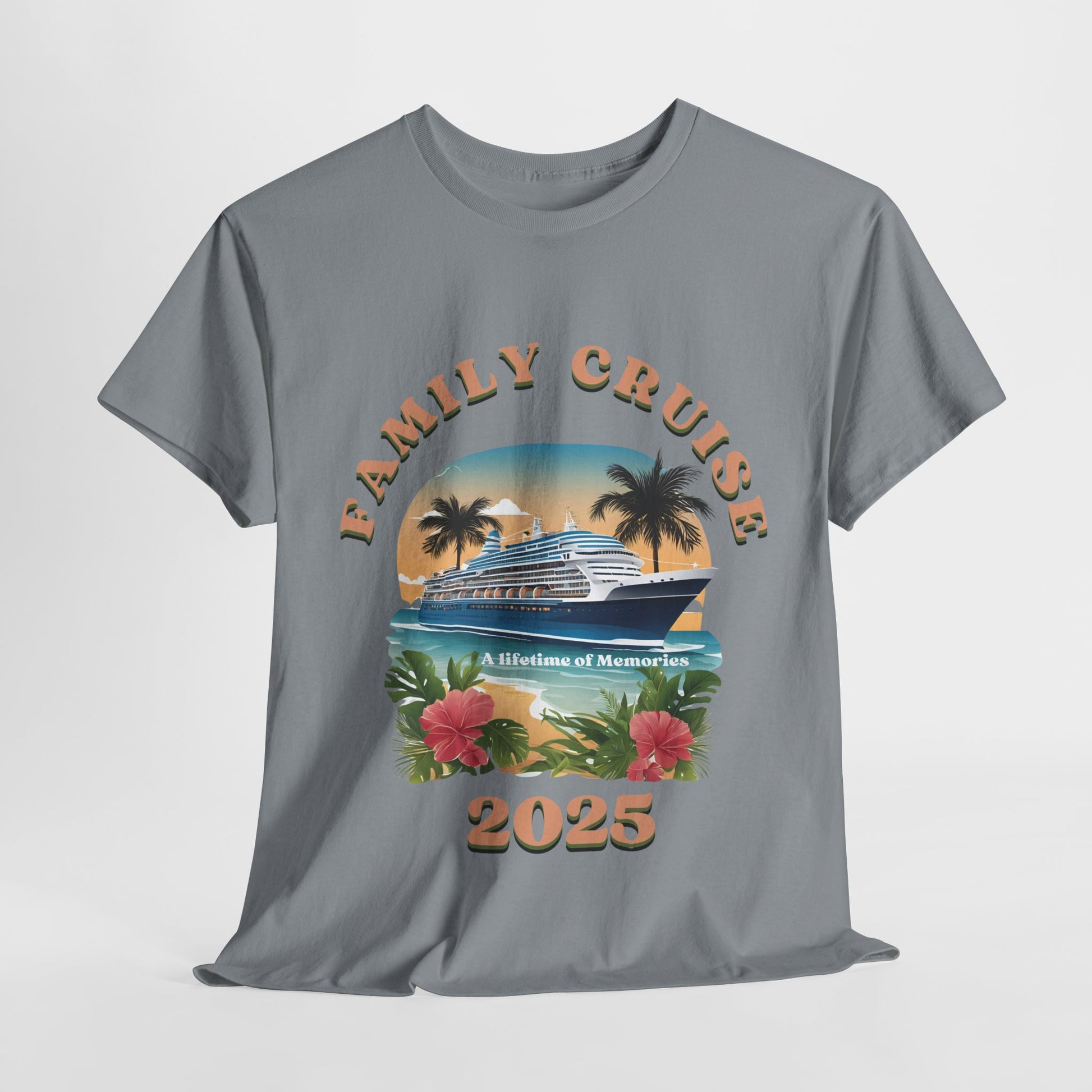 Personalized Cruise 2025 unisex heavy cotton tee is the basic staple of any wardrobe. Perfect t-shirt for your next bon-voyage for any 2025 cruise vacation. Matching cruise t-shirts for a family. It is the foundation upon which casual fashion grows.