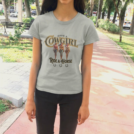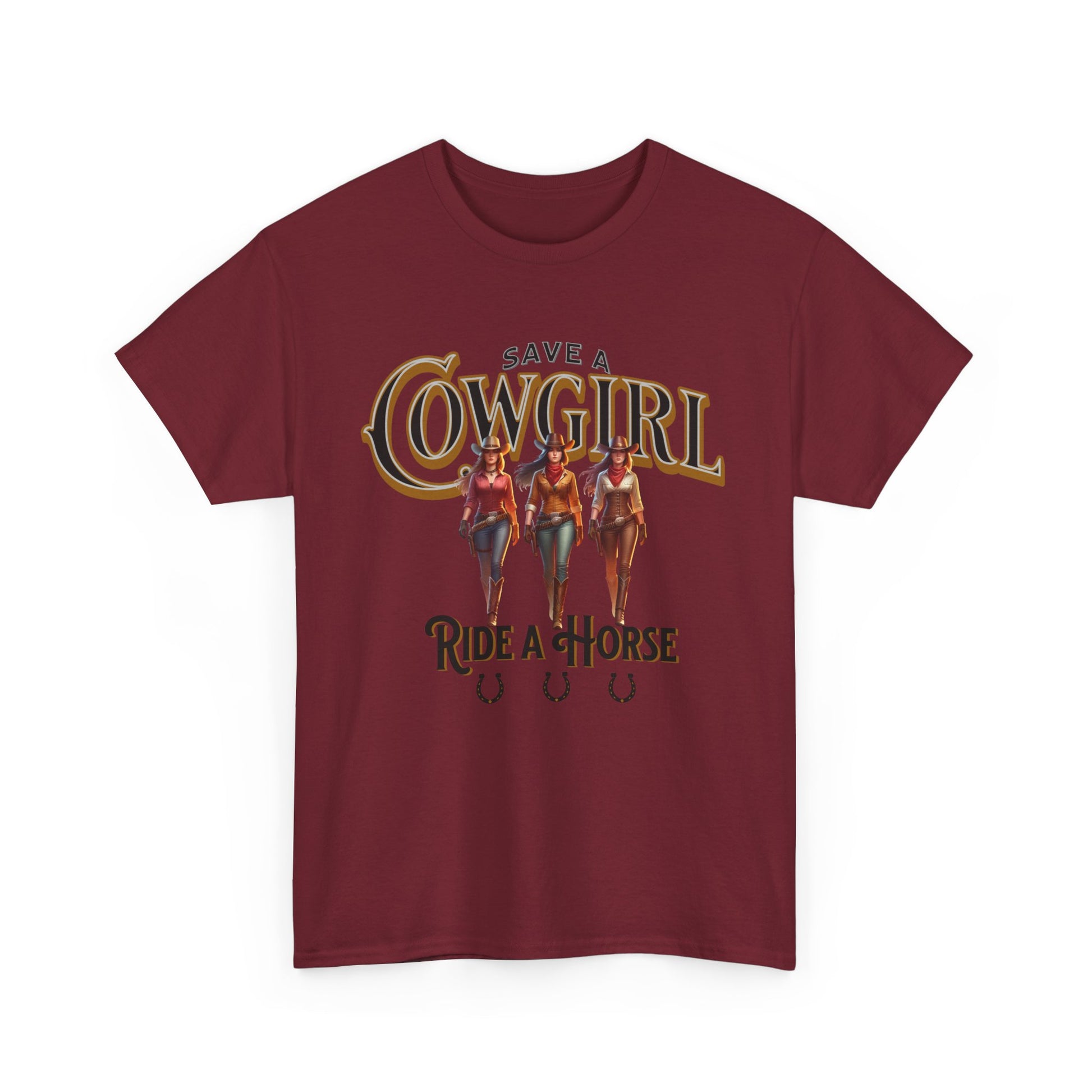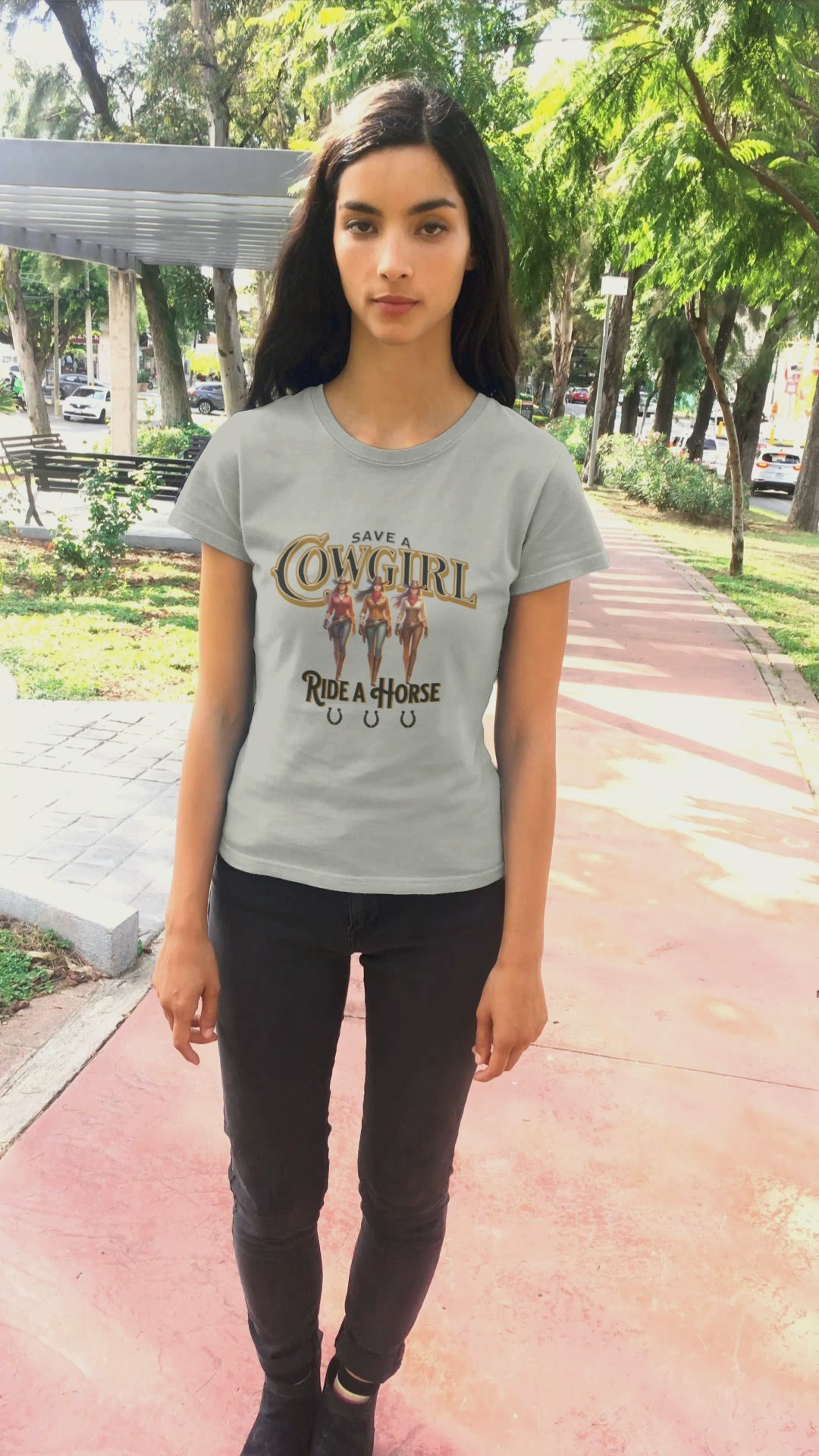 Save a Cowgirl Ride a Horse, Humorous Cowgirl T-Shirt, Cute Cowgirl Shirt for a Gift, Funny Cowgirl T-Shirt for Women, Horse Lover Shirt
