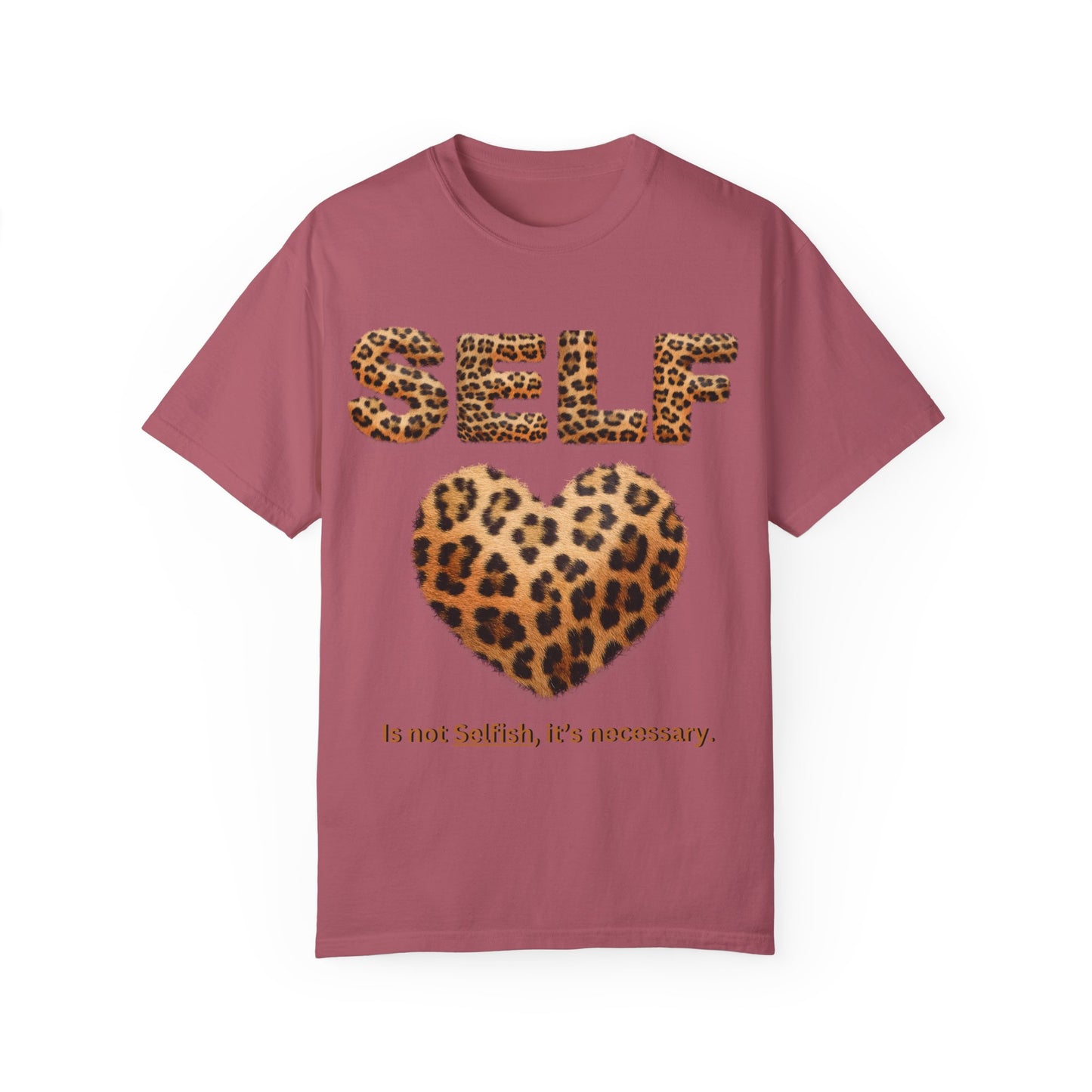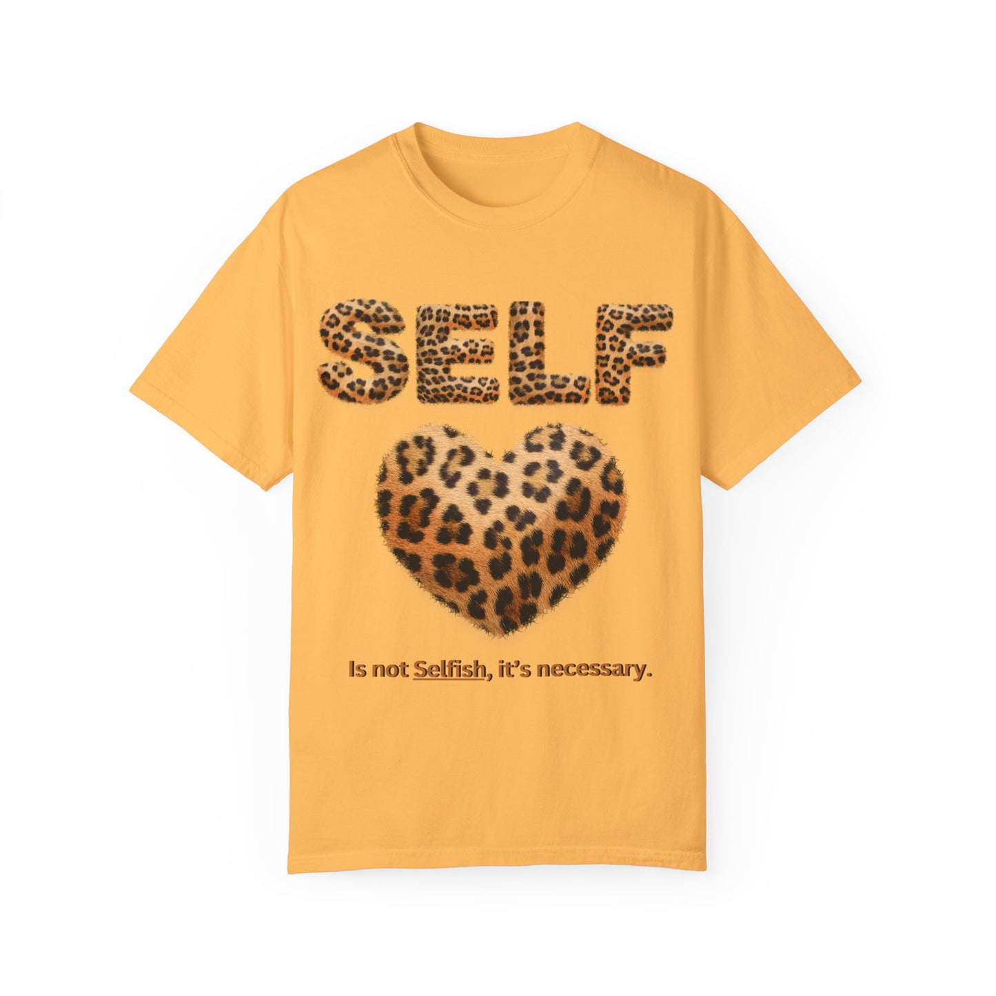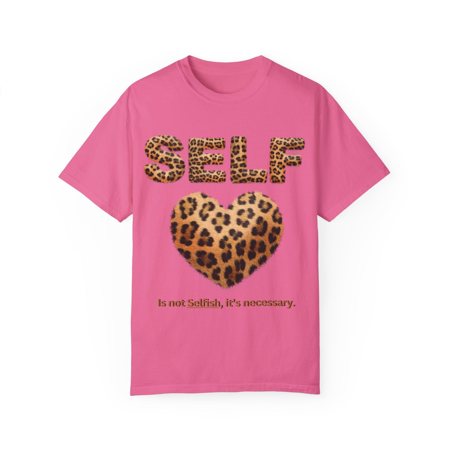 Celebrate self-love and empowerment with this bold and stylish design that declares: "SELF is not Selfish, it’s necessary." Featuring a striking leopard-print motif, this artwork is a reminder to prioritize loving yourself unapologetically. Paired with the Comfort Colors 1717 Garment-Dyed T-Shirt, this design takes comfort and style to a new level. Crafted from 100% ring-spun cotton, the soft-washed fabric offers unbeatable coziness, while its relaxed fit makes it perfect for daily wear. With durable double-needle stitching and a tubular design for shape retention, this tee is both practical and eye-catching. Available in 58 colors, you can choose the shade that best expresses your vibe.