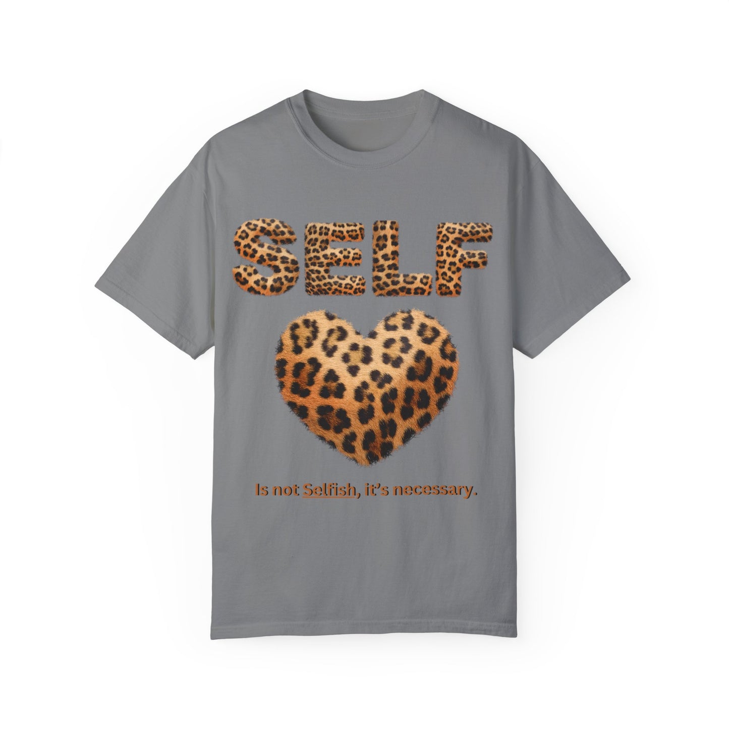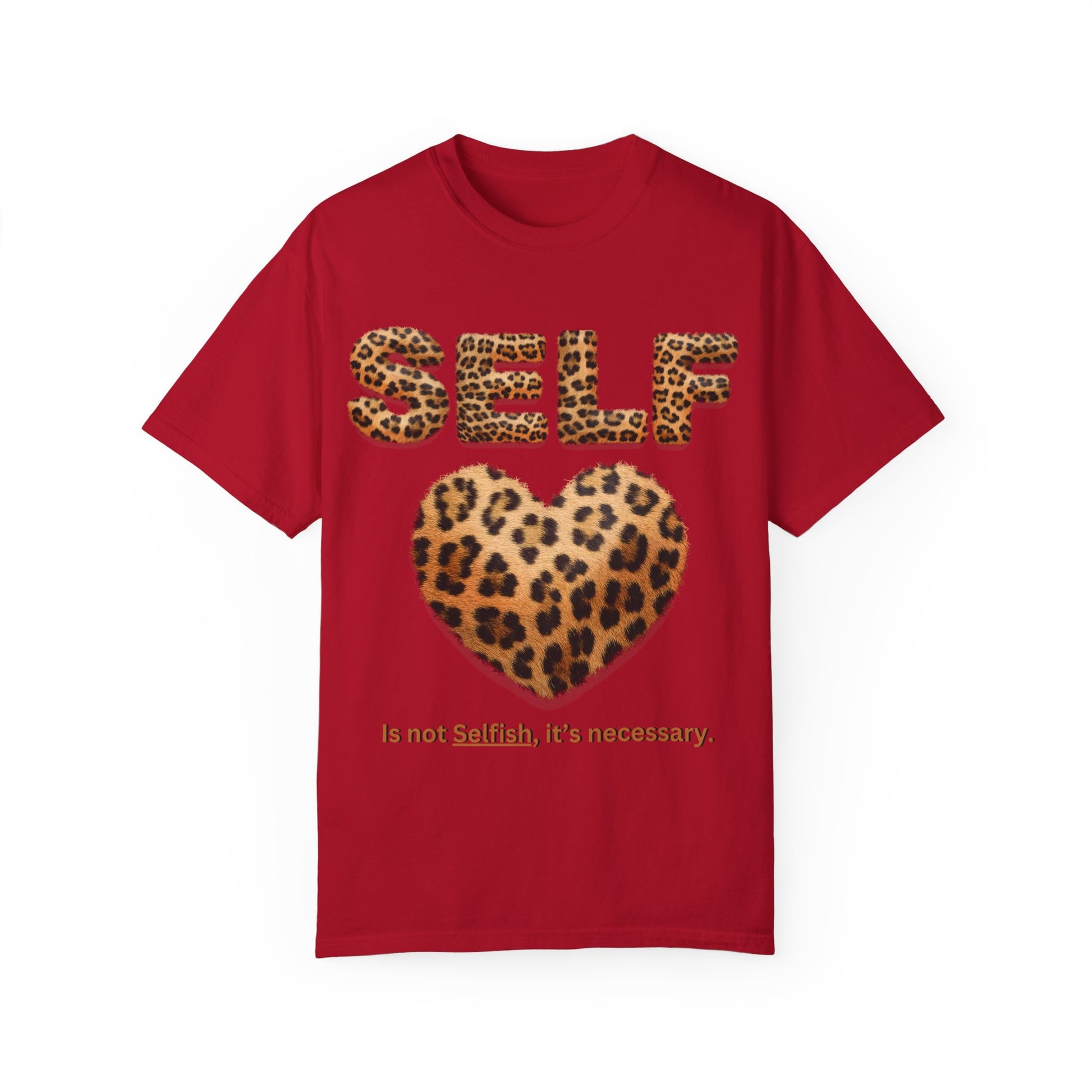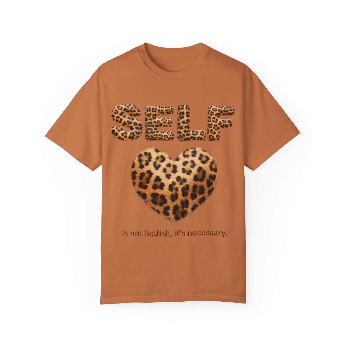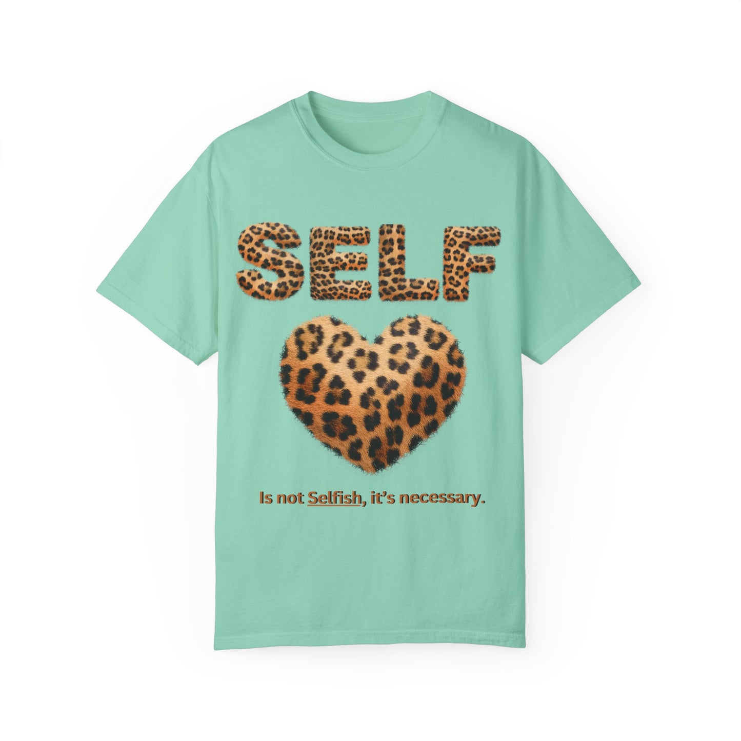 Celebrate self-love and empowerment with this bold and stylish design that declares: "SELF is not Selfish, it’s necessary." Featuring a striking leopard-print motif, this artwork is a reminder to prioritize loving yourself unapologetically. Paired with the Comfort Colors 1717 Garment-Dyed T-Shirt, this design takes comfort and style to a new level. Crafted from 100% ring-spun cotton, the soft-washed fabric offers unbeatable coziness, while its relaxed fit makes it perfect for daily wear. With durable double-needle stitching and a tubular design for shape retention, this tee is both practical and eye-catching. Available in 58 colors, you can choose the shade that best expresses your vibe.