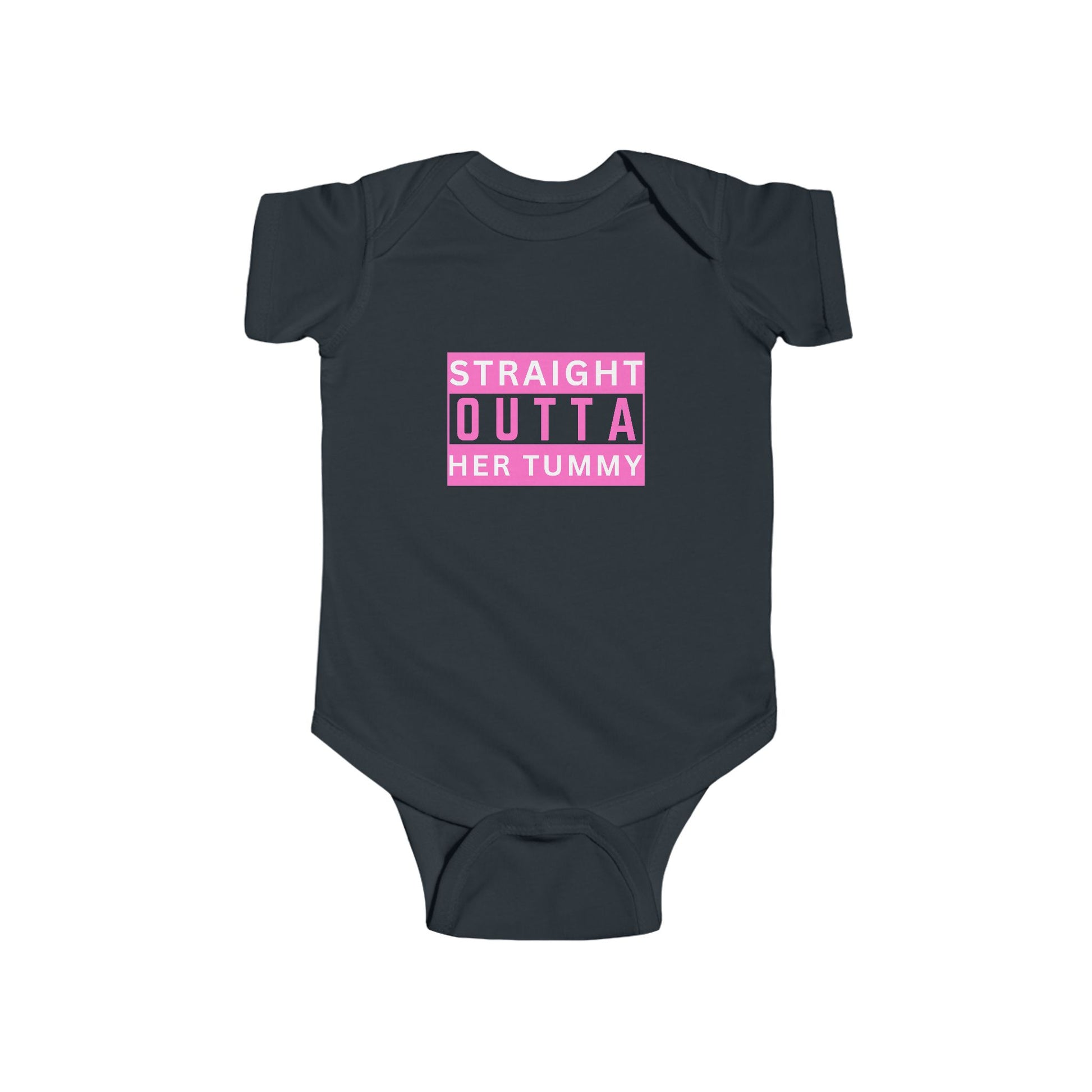 Straight Outta Her Tummy Infant Girls Fine Jersey Bodysuit, Funny Baby Onesies, Cute Baby Girl Onesie from 0-24 Months, Onesies for Girls, Cute Baby Shower Gift