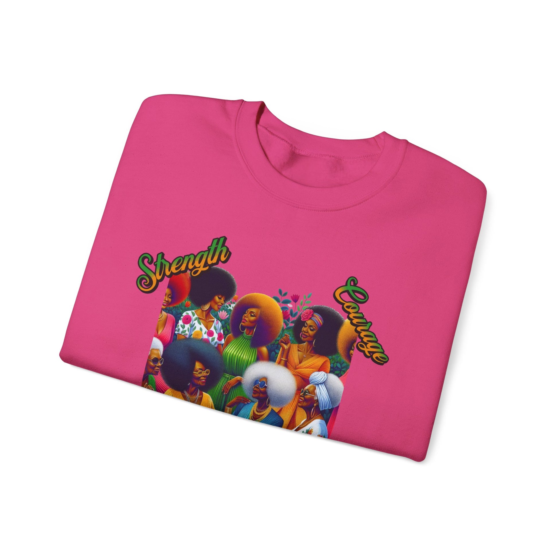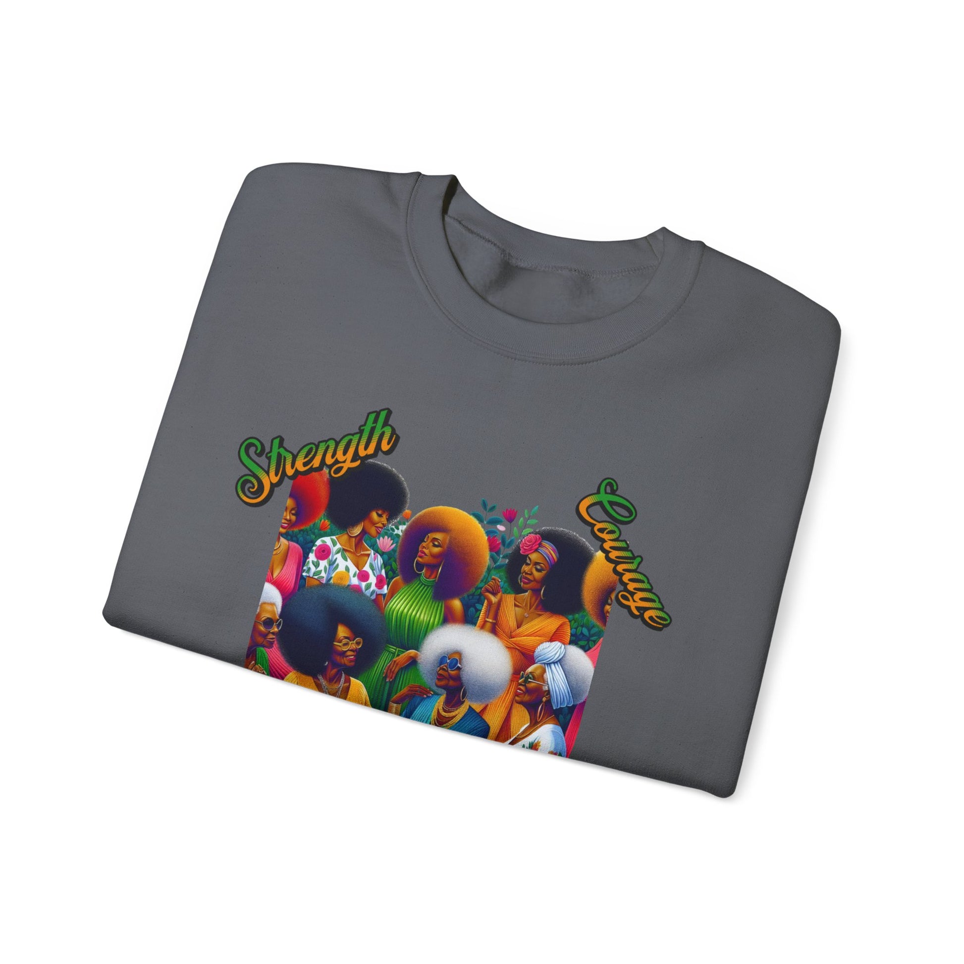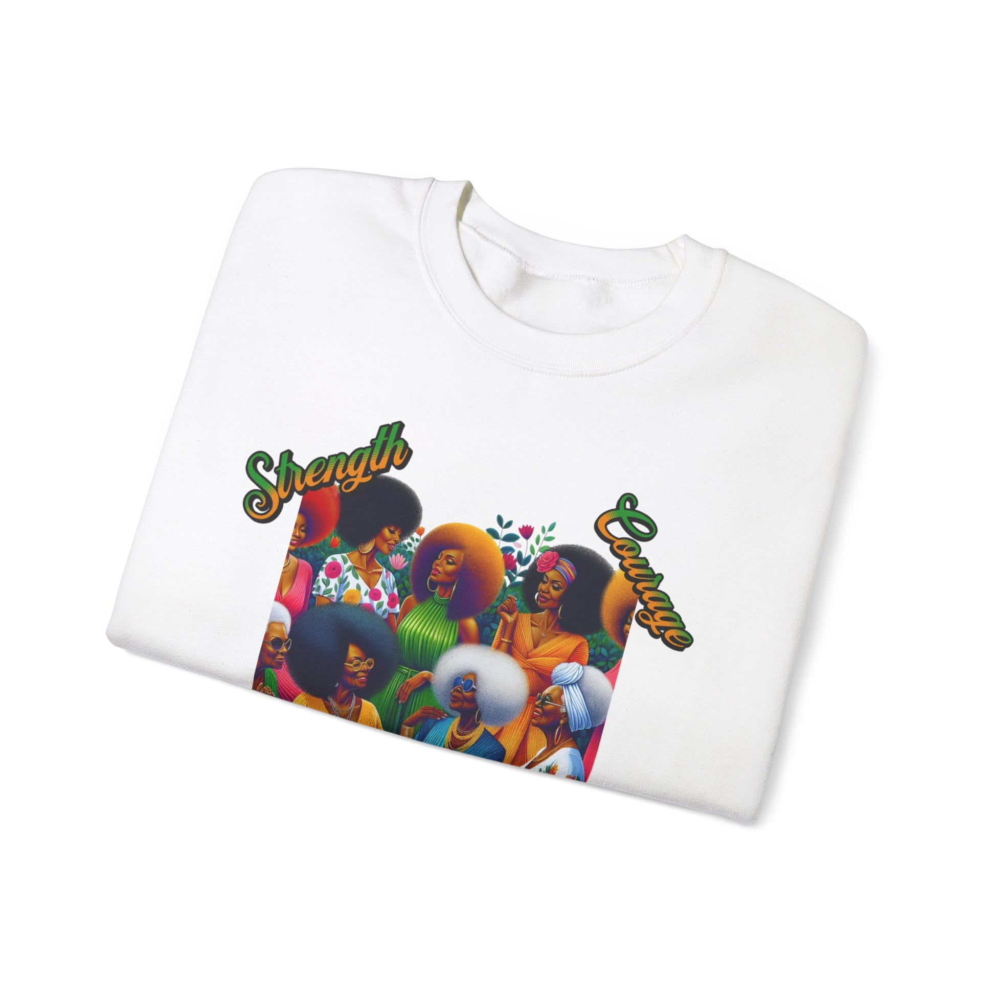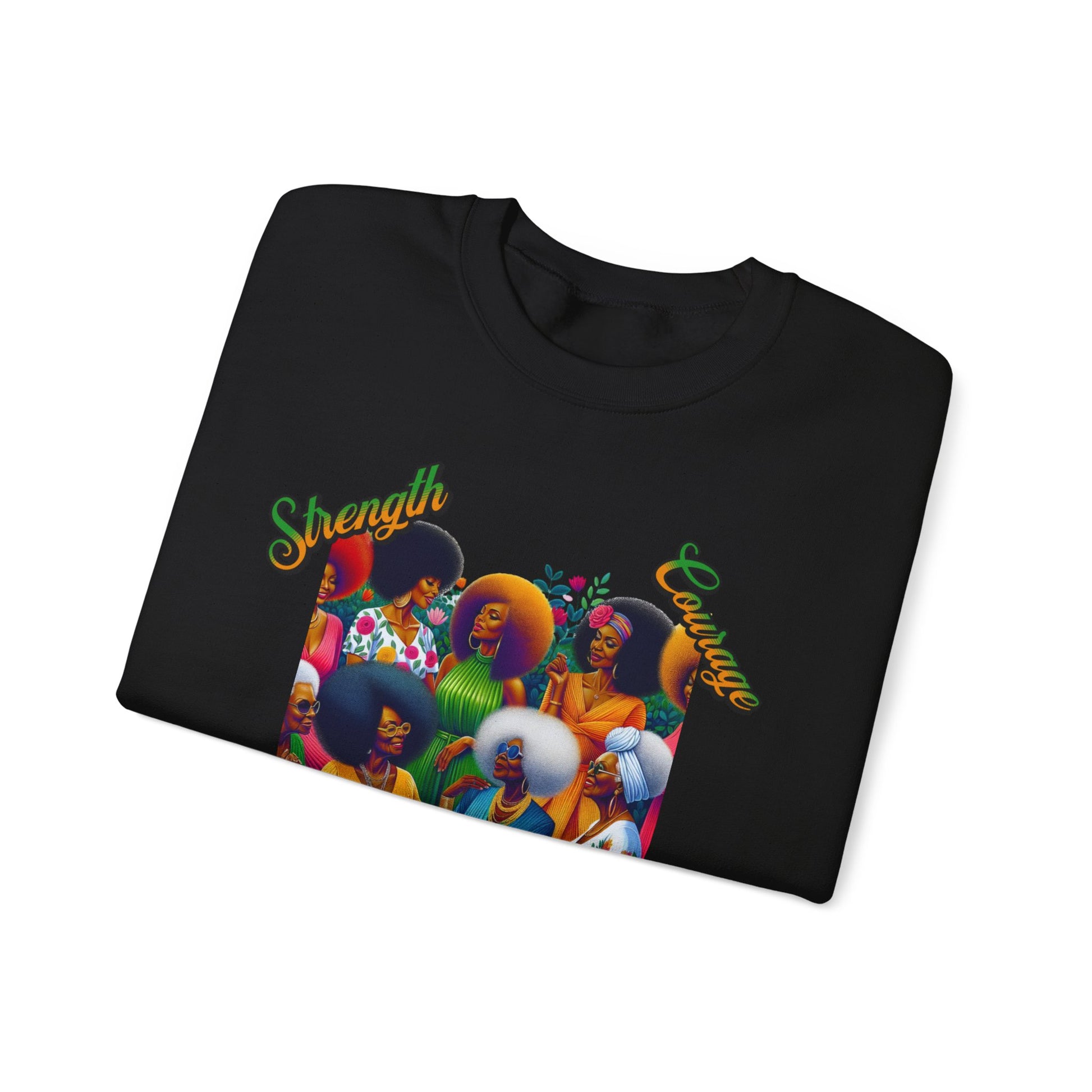 Celebrate the power of sisterhood and the magic of togetherness with this vibrant and empowering design. Featuring a diverse group of Black women with stunning afros, each adorned with flowers, this image radiates beauty, strength, and unity. The phrase "Strength Courage and Wisdom" encapsulates the spirit of collaboration, support, and empowerment that arises when women come together.
