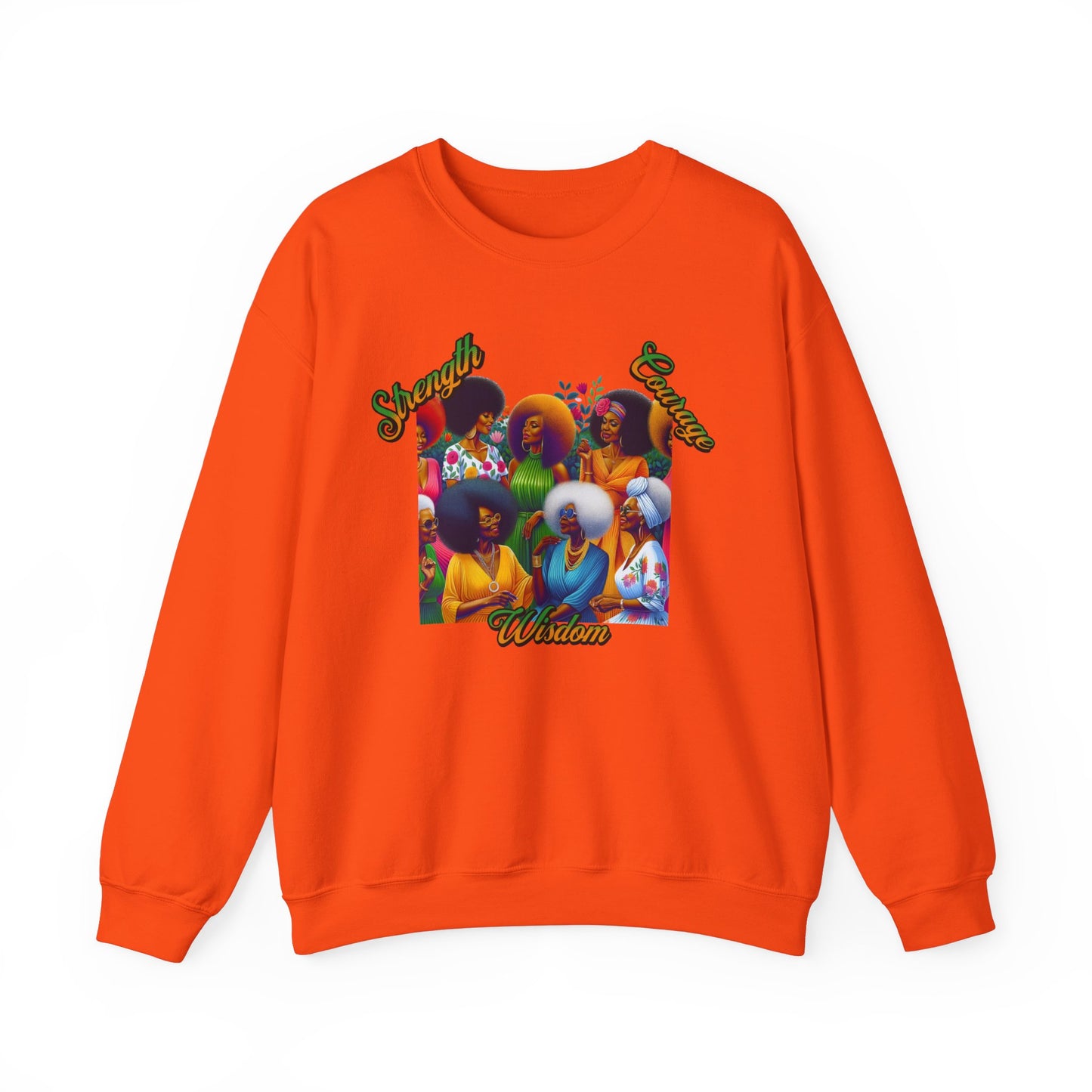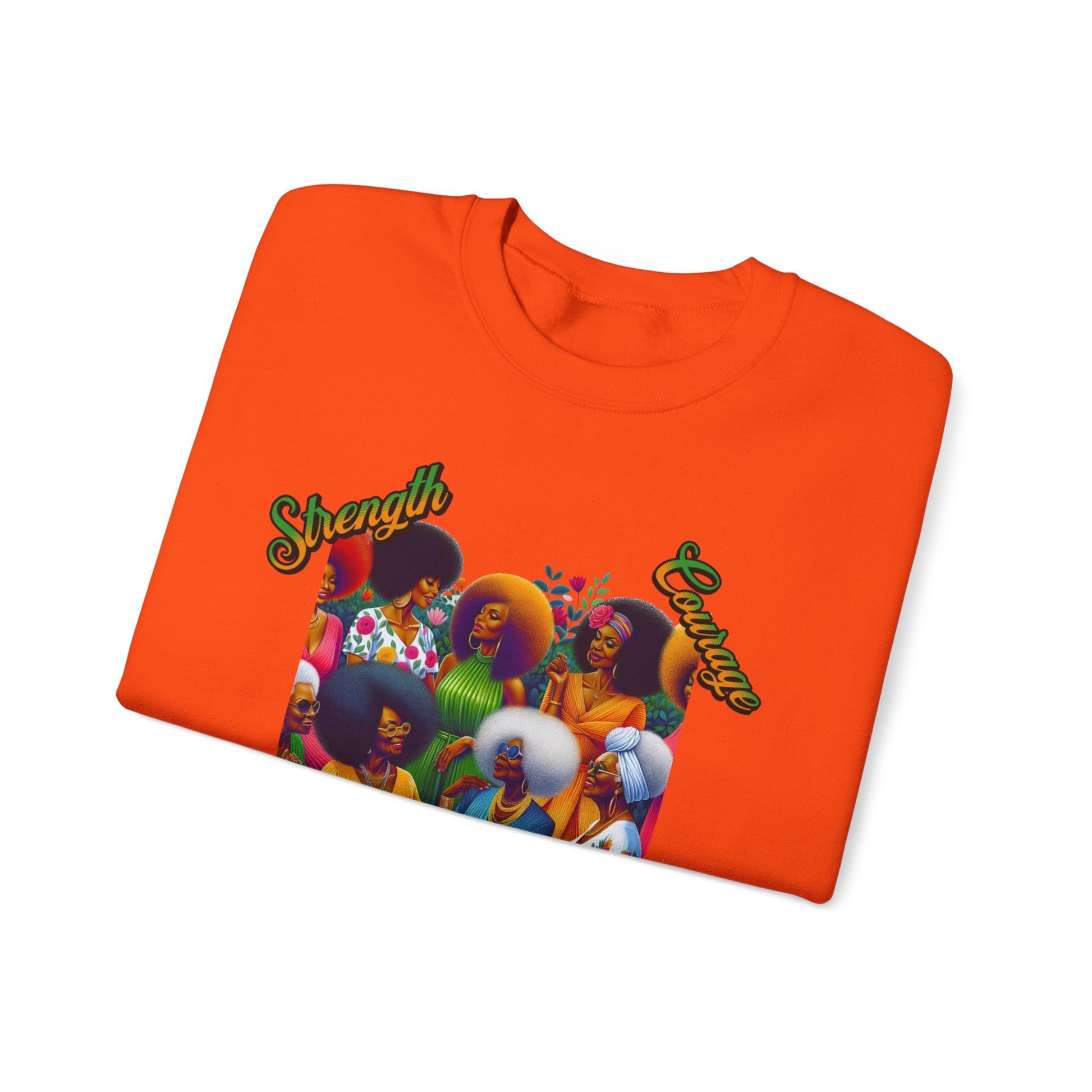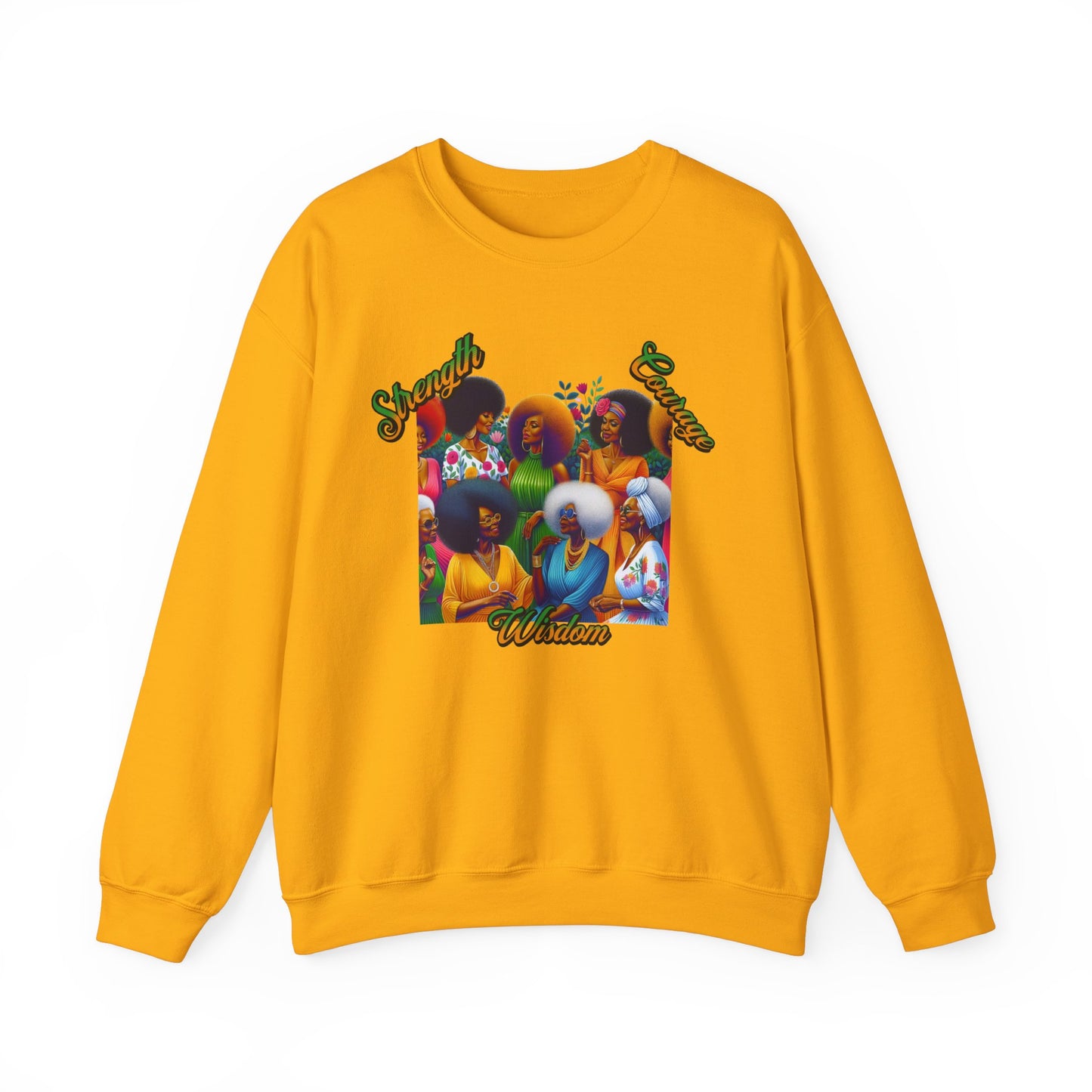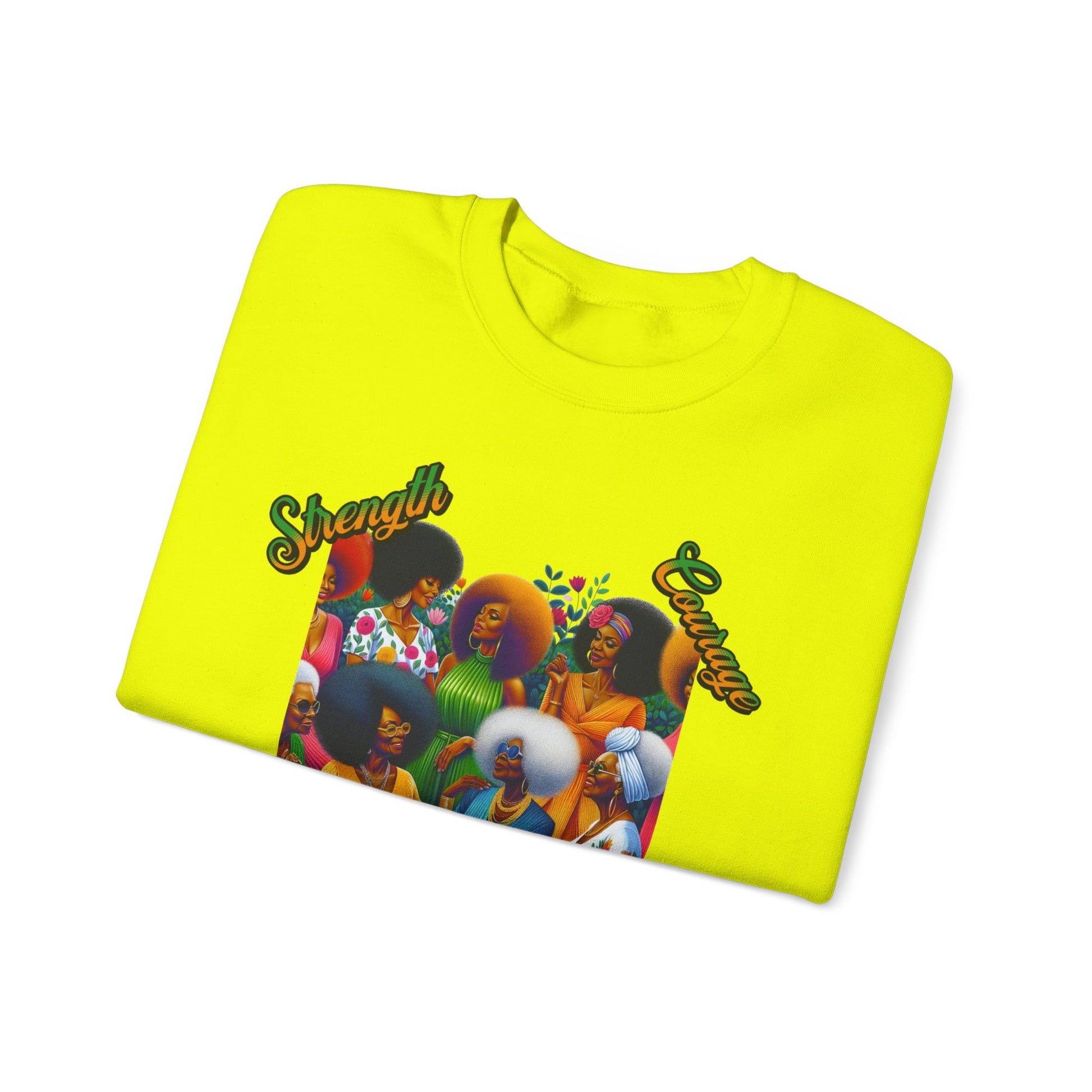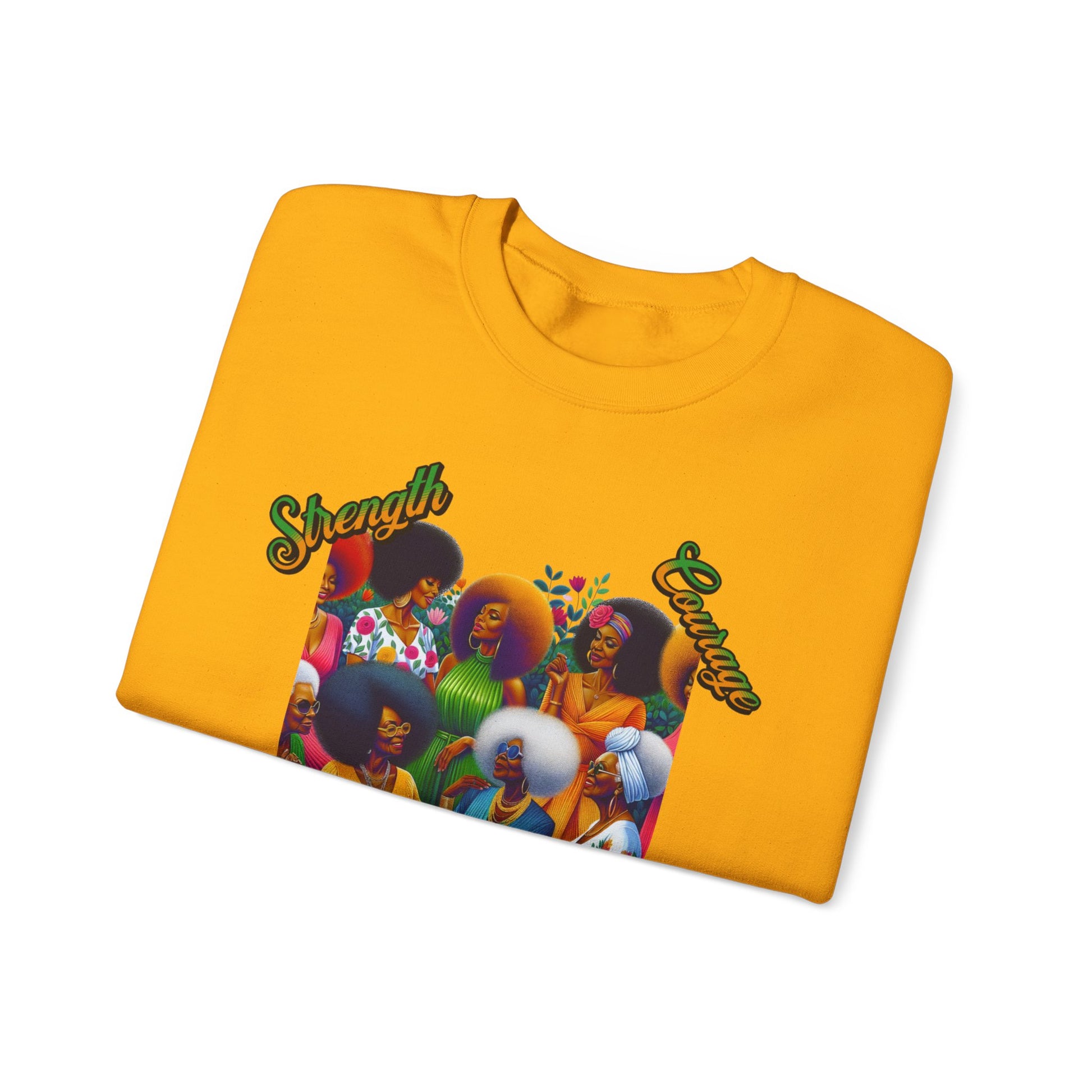 Celebrate the power of sisterhood and the magic of togetherness with this vibrant and empowering design. Featuring a diverse group of Black women with stunning afros, each adorned with flowers, this image radiates beauty, strength, and unity. The phrase "Strength Courage and Wisdom" encapsulates the spirit of collaboration, support, and empowerment that arises when women come together.