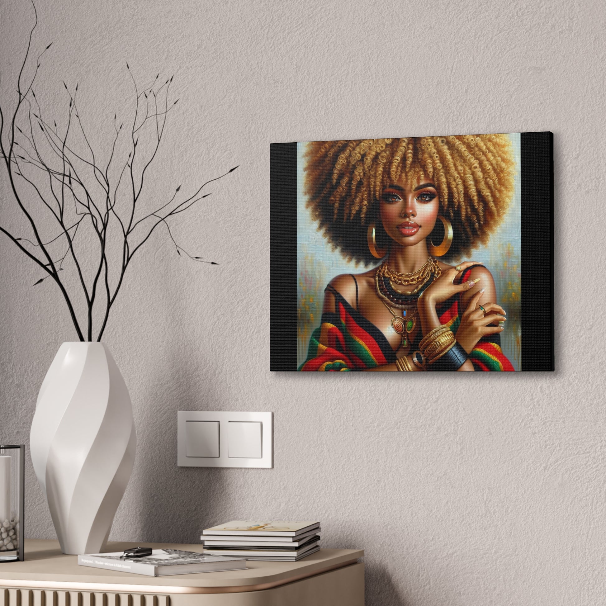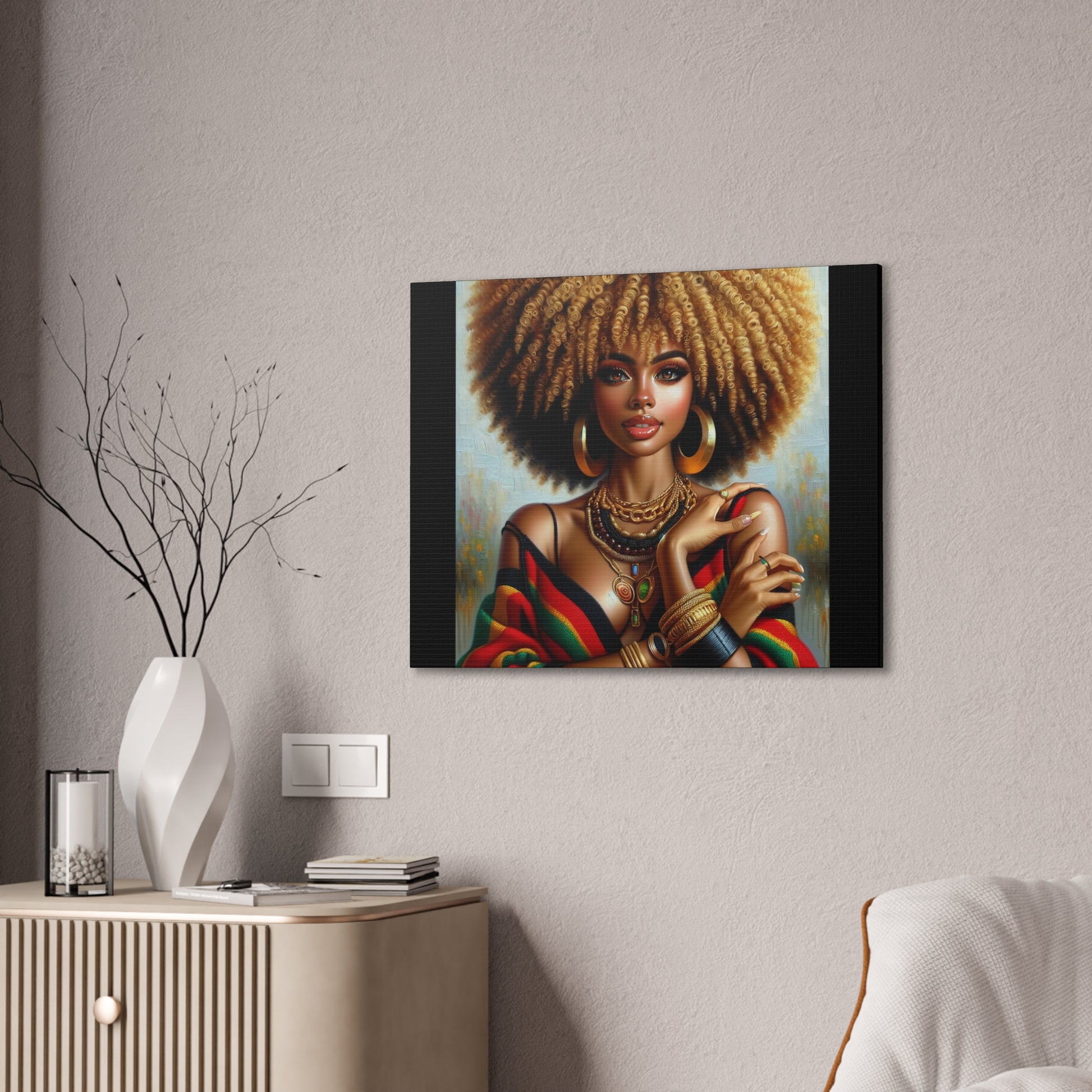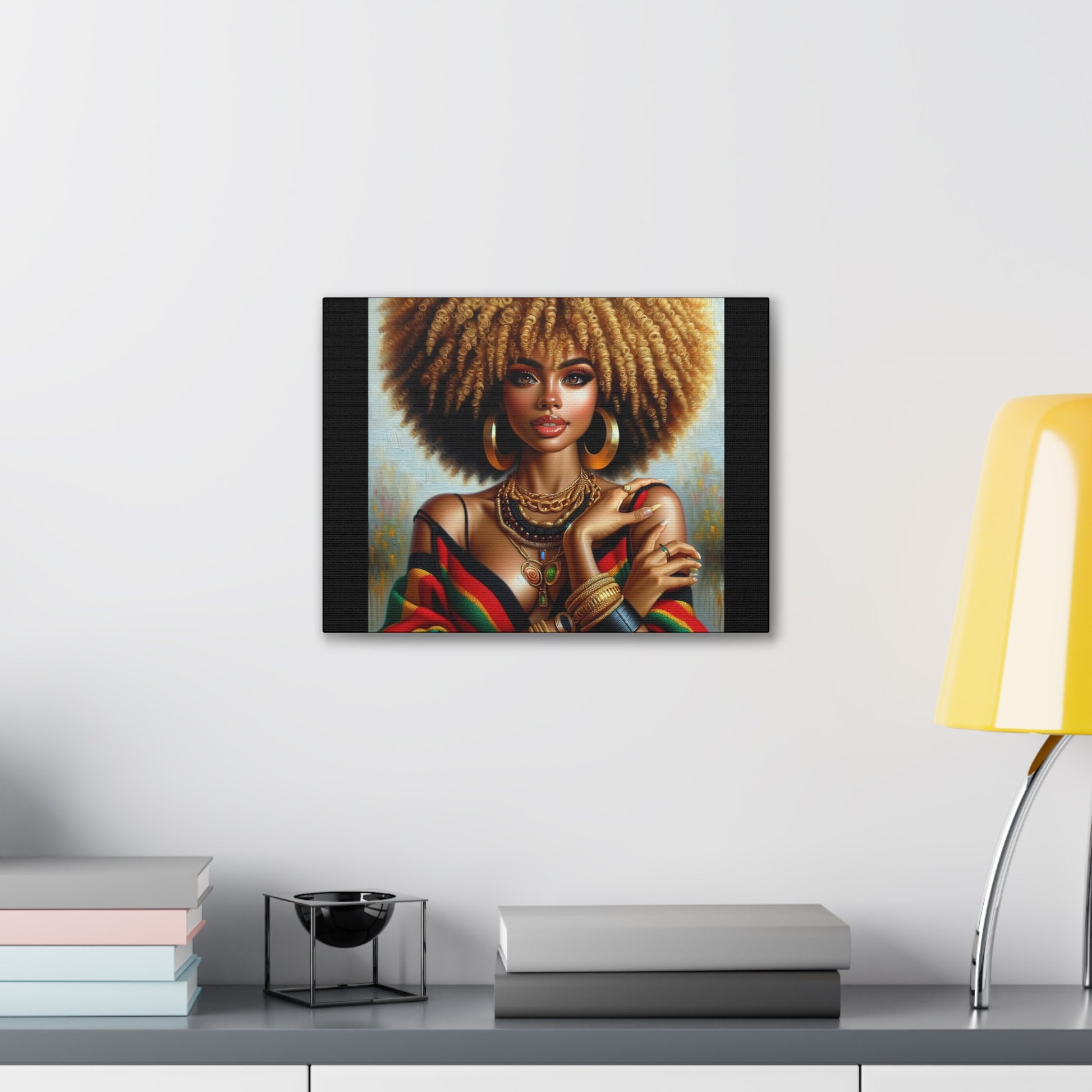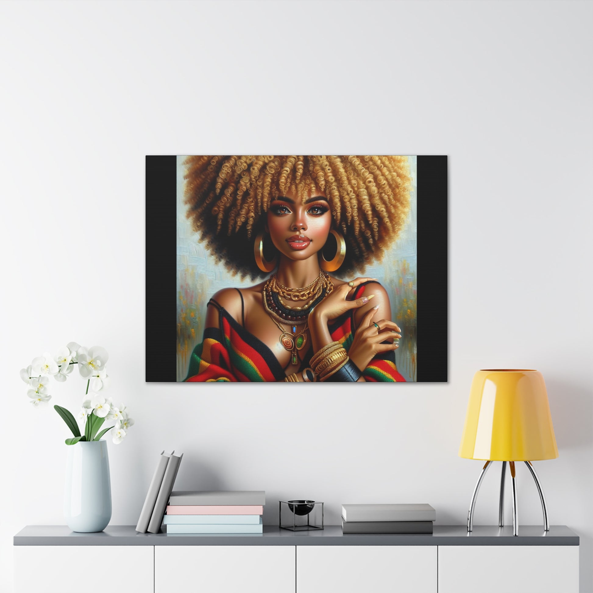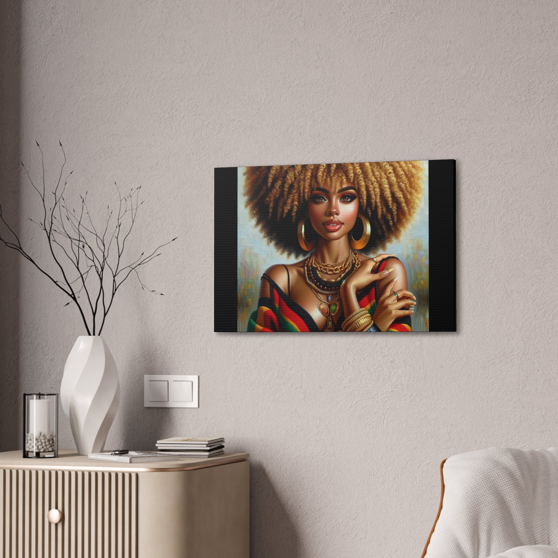 Stretched Canvas Art Print – Afrocentric Portrait, Black Woman Confidence Canvas Art in Afrocentric Colors, 92 % Women Merchandise