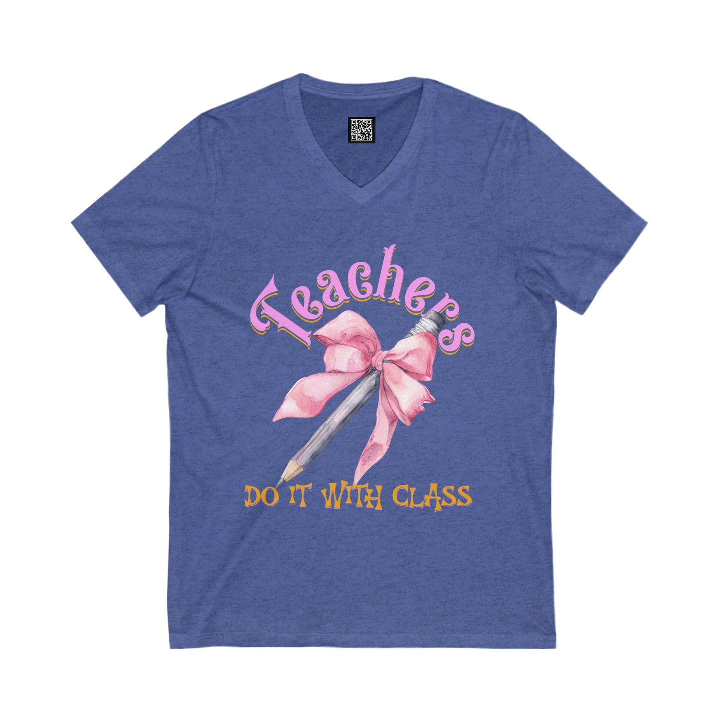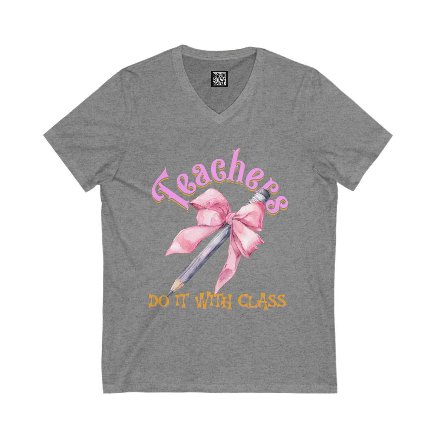 Teacher Appreciation V-Neck Tee, Gifts for Educators, Coquette Bow Back to School Shirt, Teachers Day T-Shirt, Fun Teacher Gift