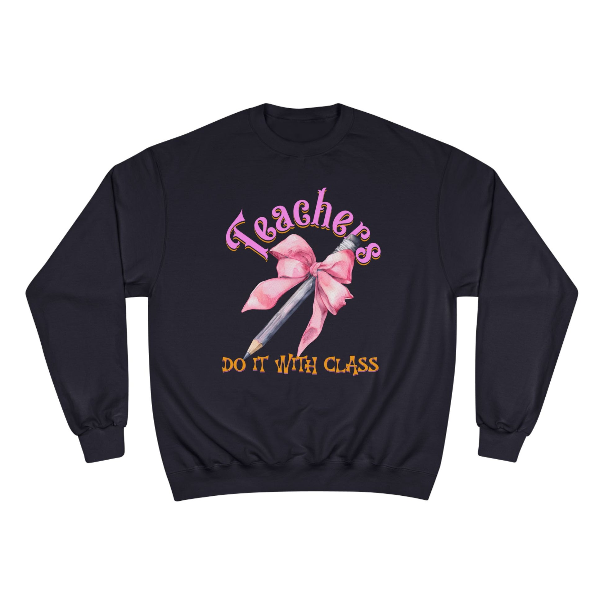Champion Teachers Do It with Class Sweatshirt, Gift for Teachers, Coquette Bow School Apparel, Cute Teacher Appreciation Gift, Classroom Attire