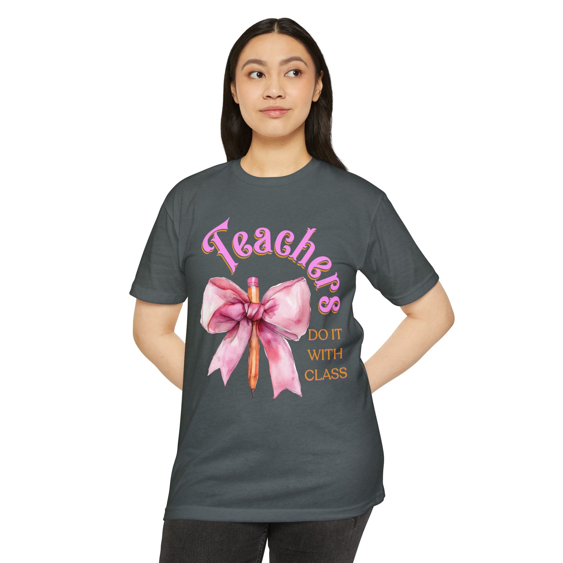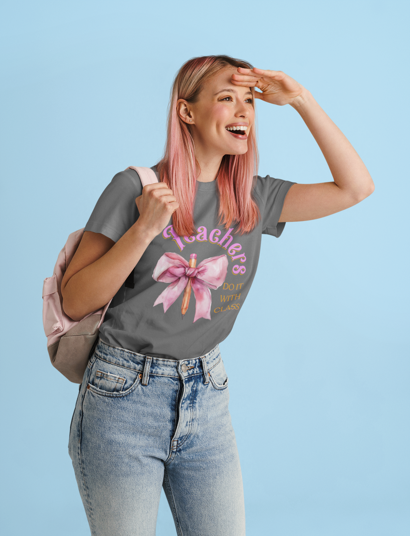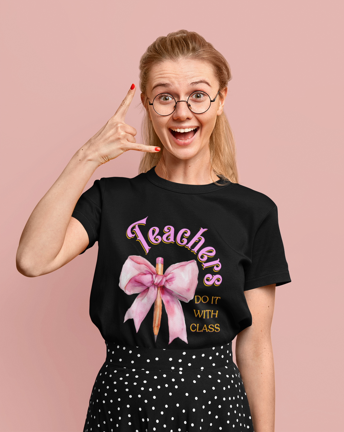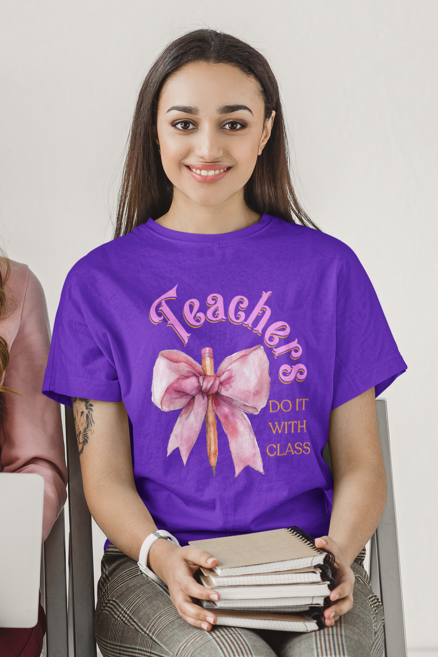 Teachers Do It with Class T-Shirt, Coquette Bow Teacher Shirt, Educator Apparel, Back to School Shirt, Cute Teacher Outfit, Cute Teacher Tee