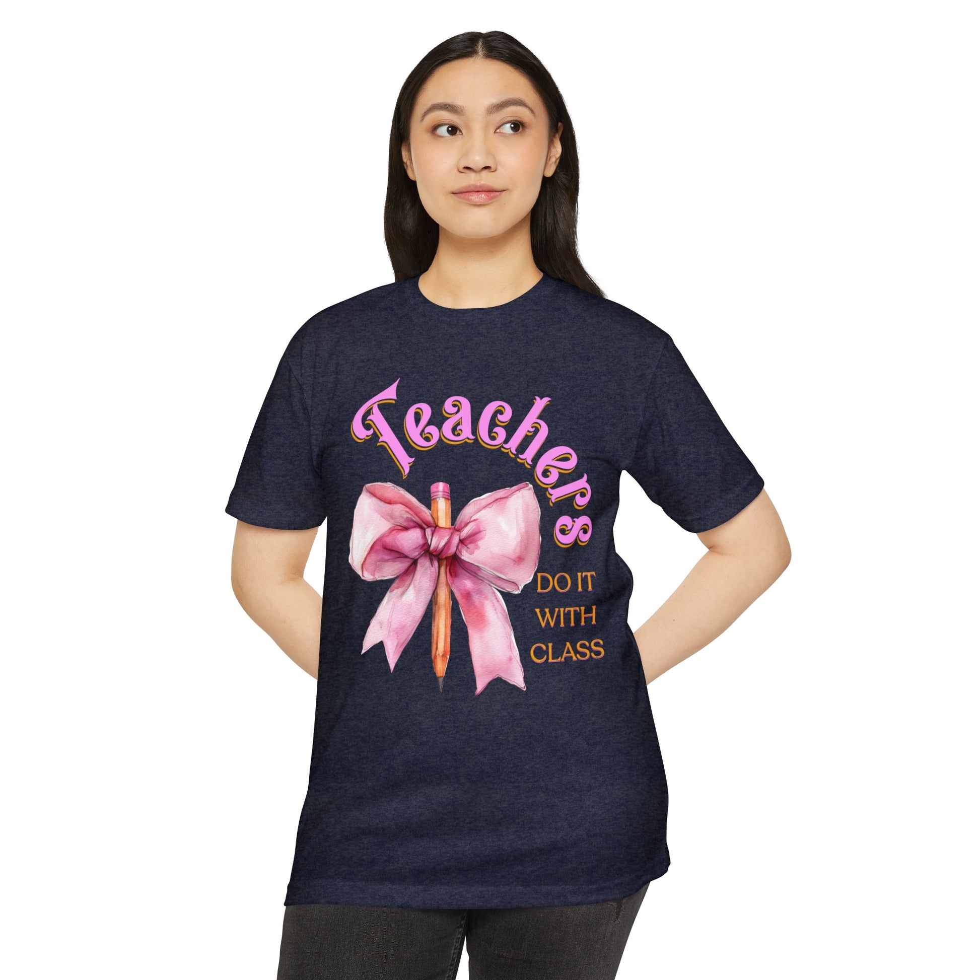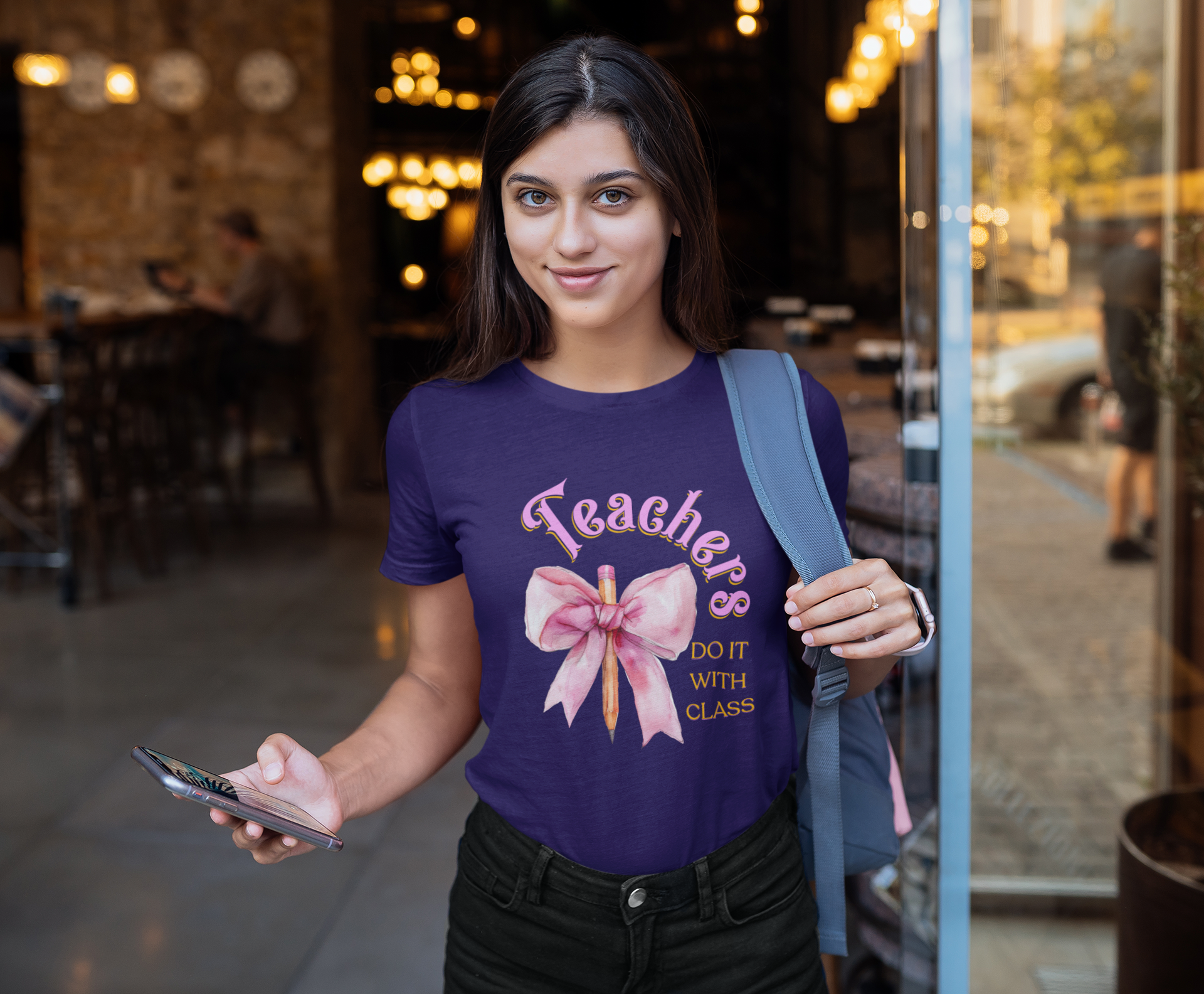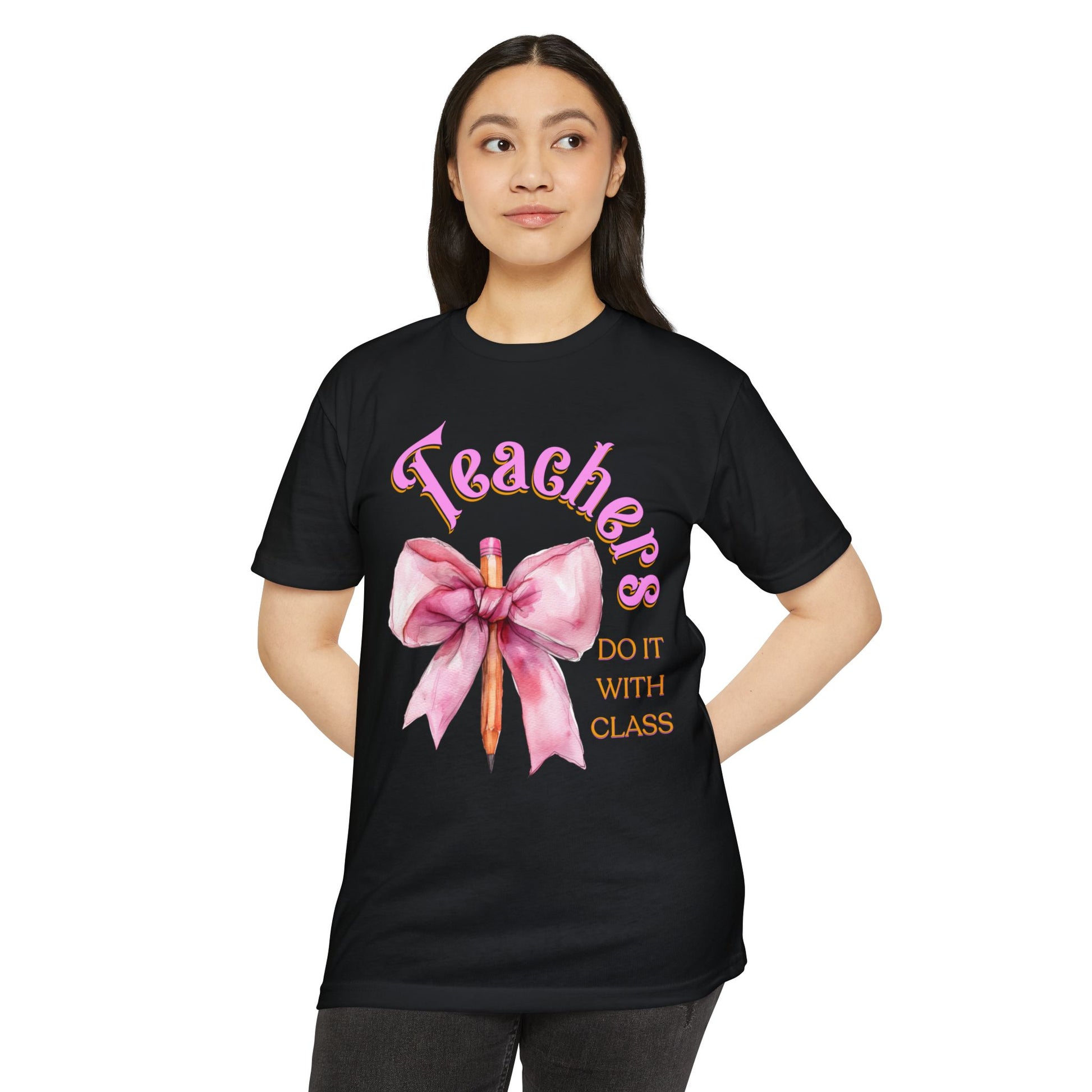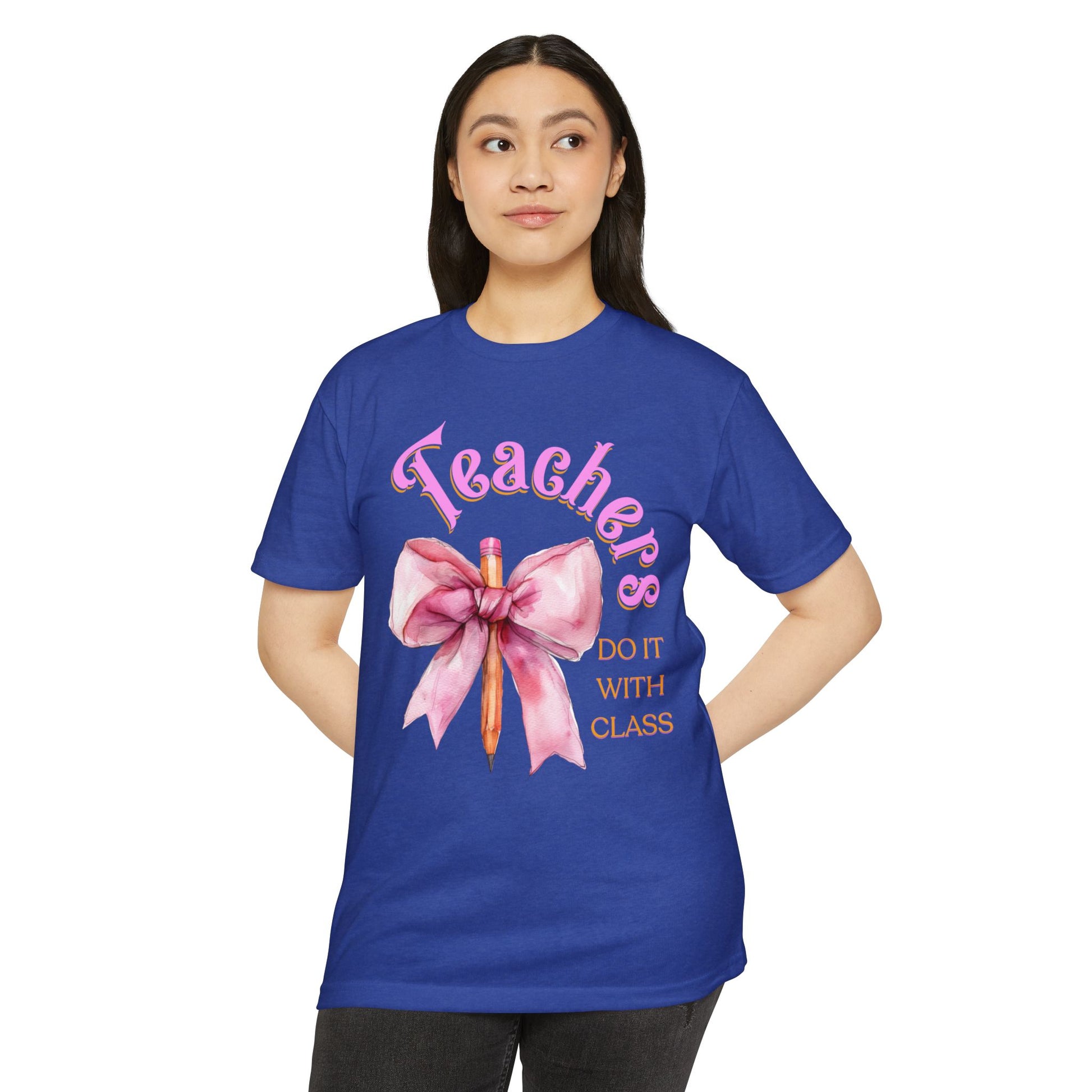 Teachers Do It with Class T-Shirt, Coquette Bow Teacher Shirt, Educator Apparel, Back to School Shirt, Cute Teacher Outfit, Cute Teacher Tee