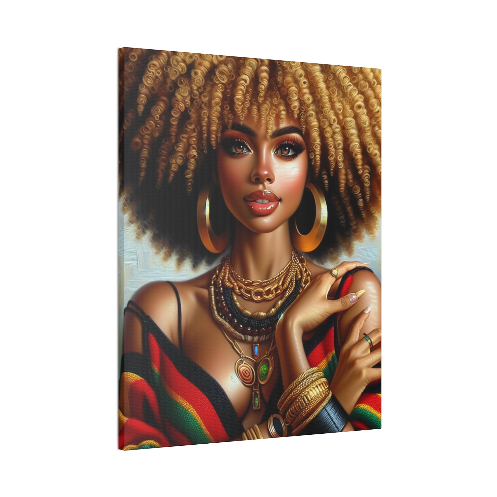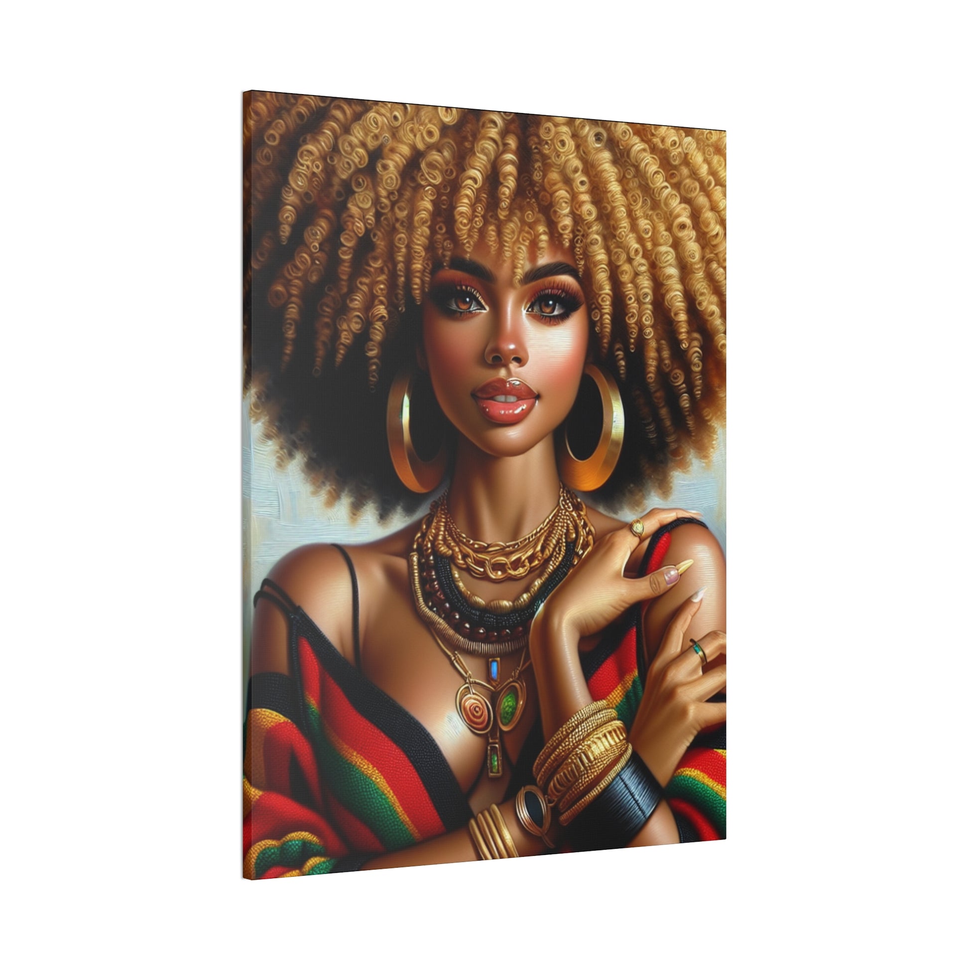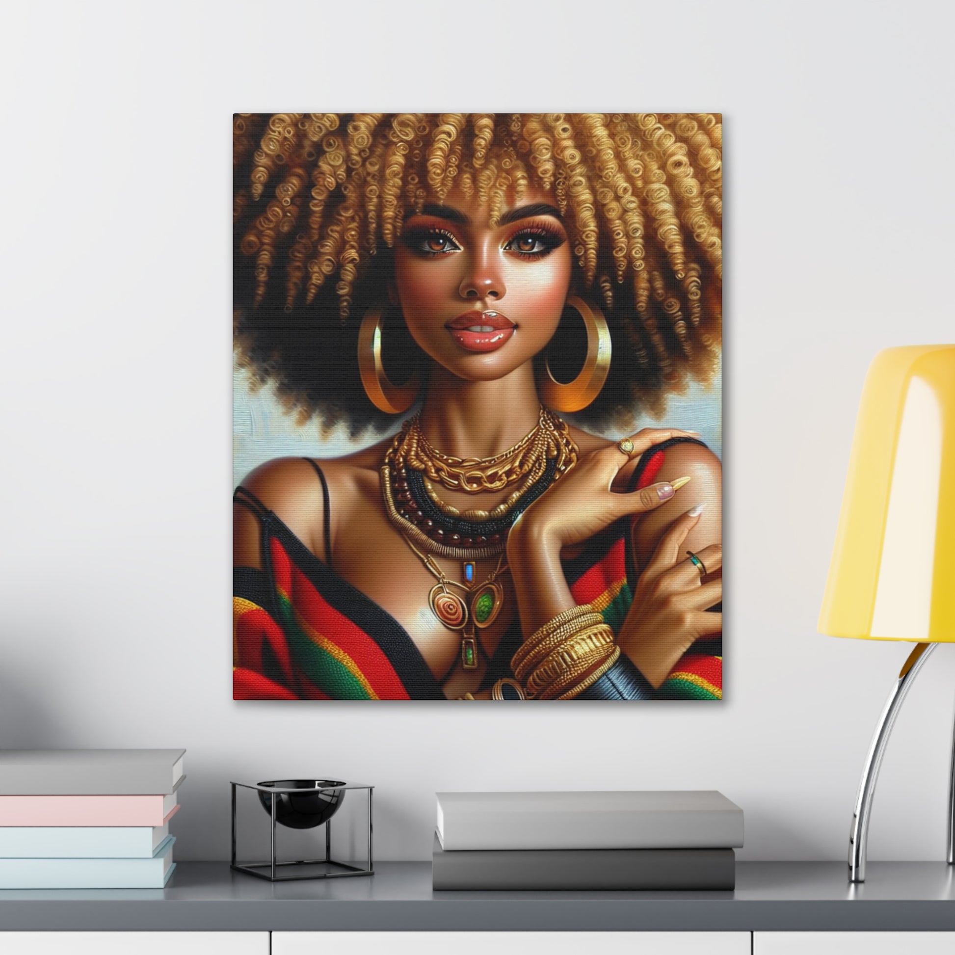 Vibrant Afrocentric Canvas Art, Fine Black Art Print, Beautiful Black Woman in Afrocentric Colors Canvas Photo,