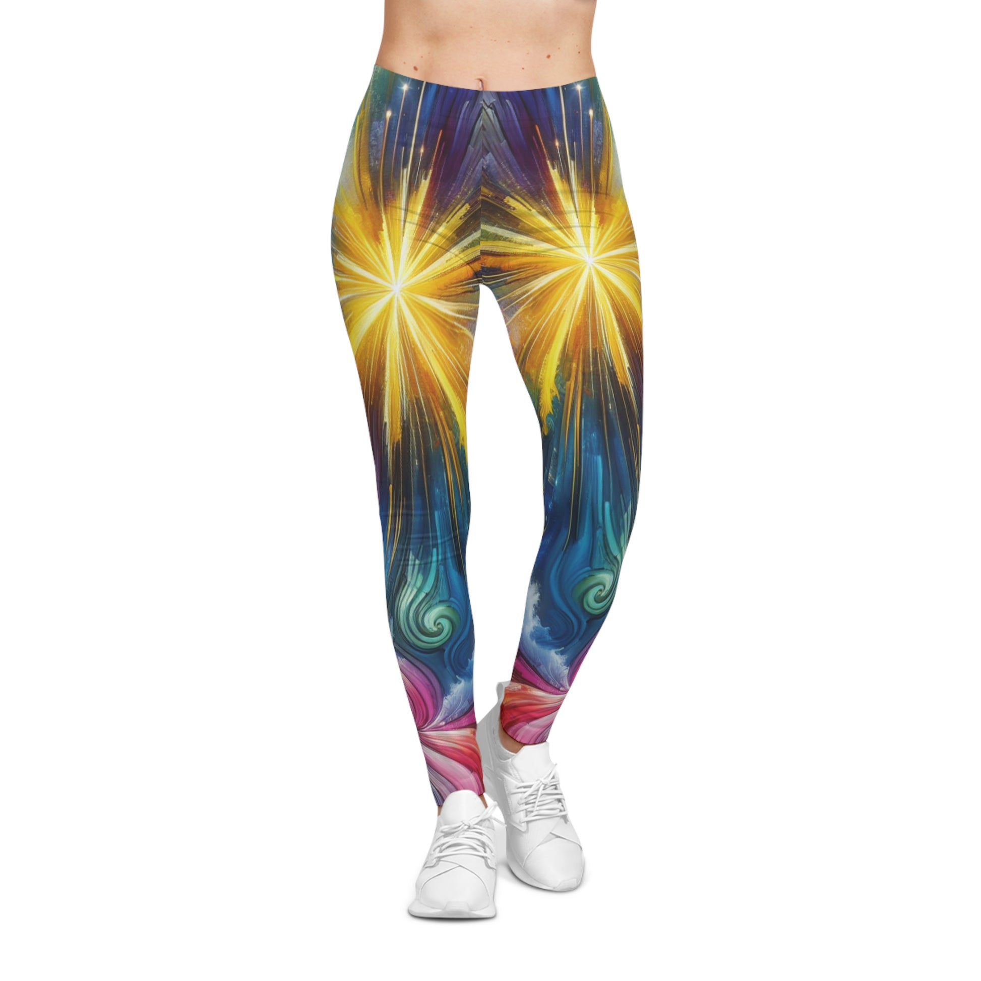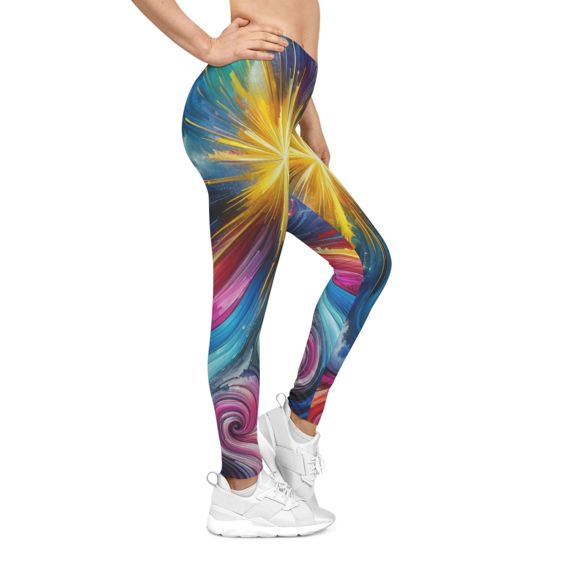 Vibrant AOP Women's Casual Leggings, Colorful Yoga Pants, Artistic Athleisure Wear, Unique Fitness Tights, Trendy Activewear