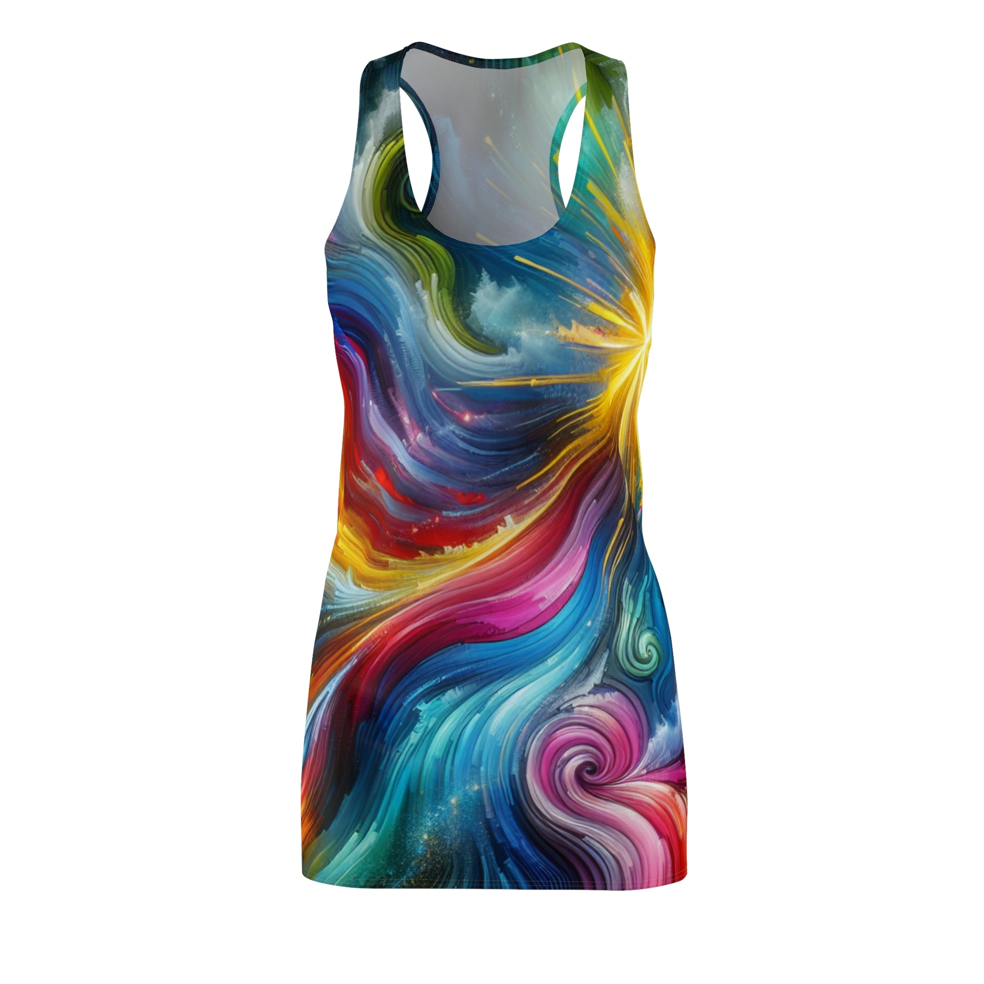 Vibrant Galaxy Racerback Dress, Summer Fashion Dress, Casual Party Outfit, Festival Wear, Colorful Beach Dress, Artistic AOP Dress